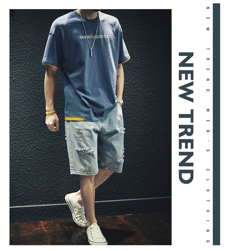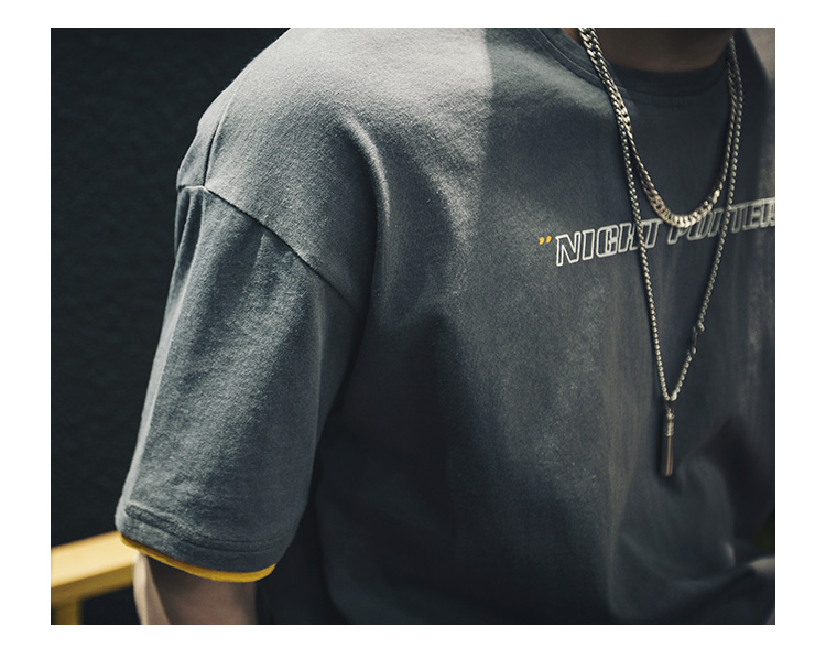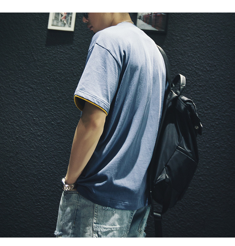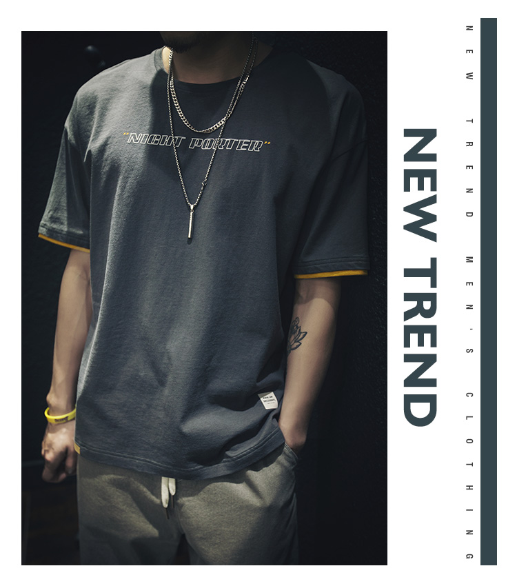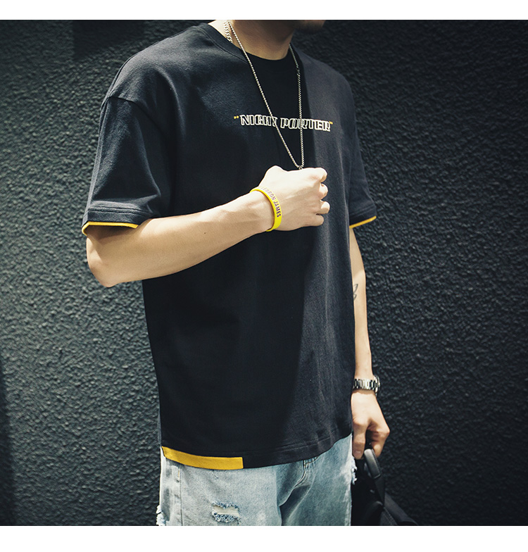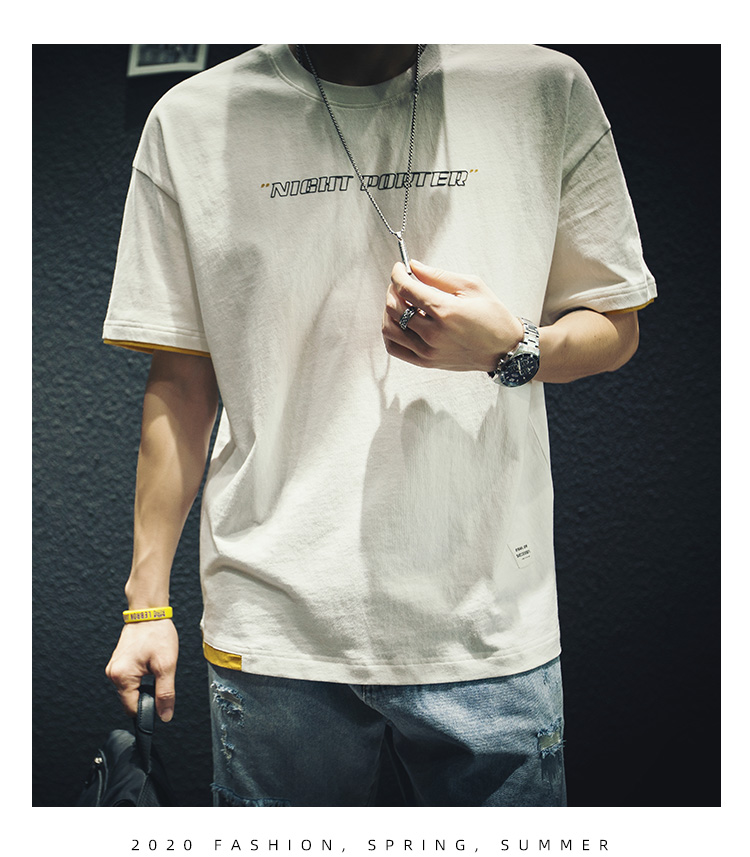 夏季纯棉短袖t恤男宽松潮牌假两件ins半袖大码胖子加肥加大体恤潮