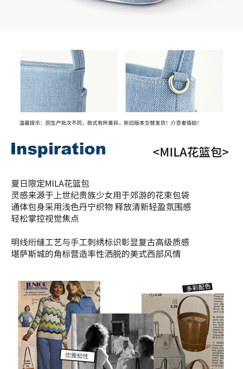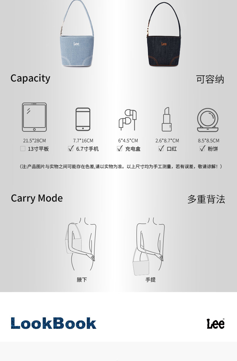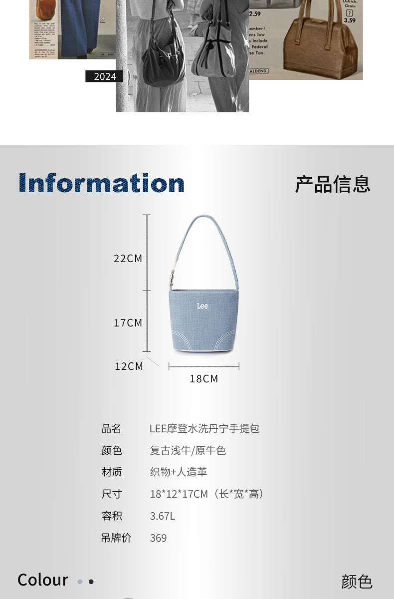 Lee花篮包摩登水洗丹宁手提包女生520送礼手拎包大容量牛仔水桶包