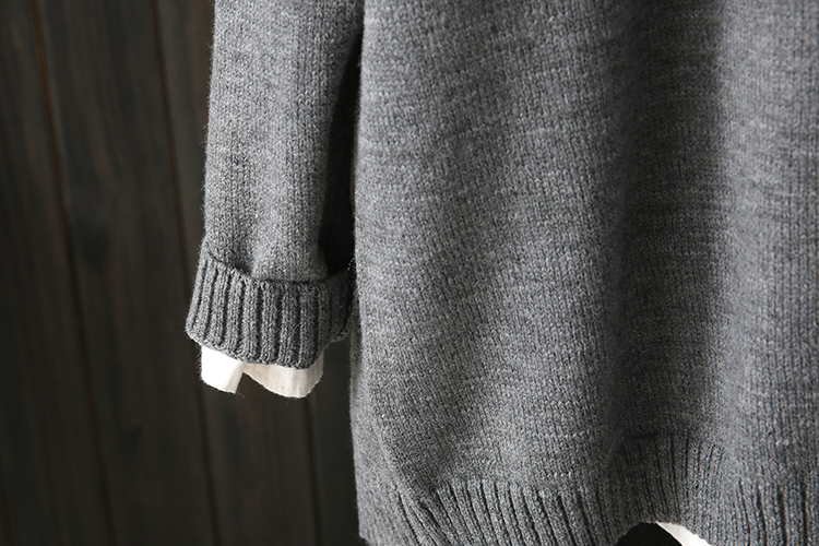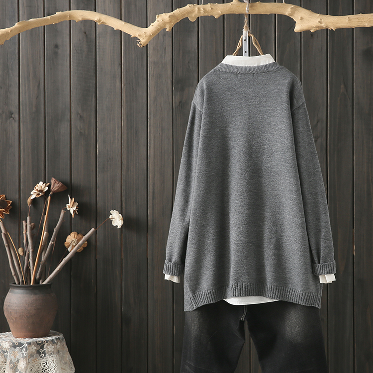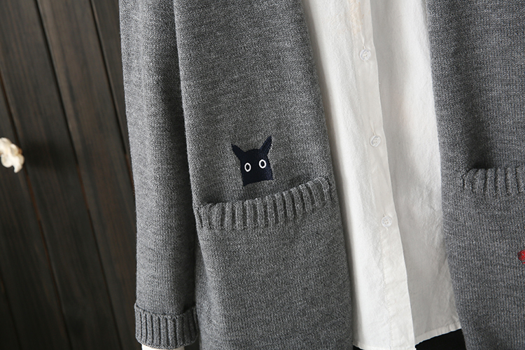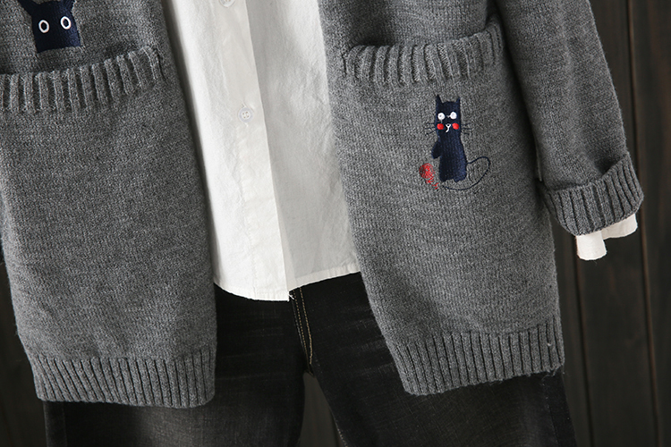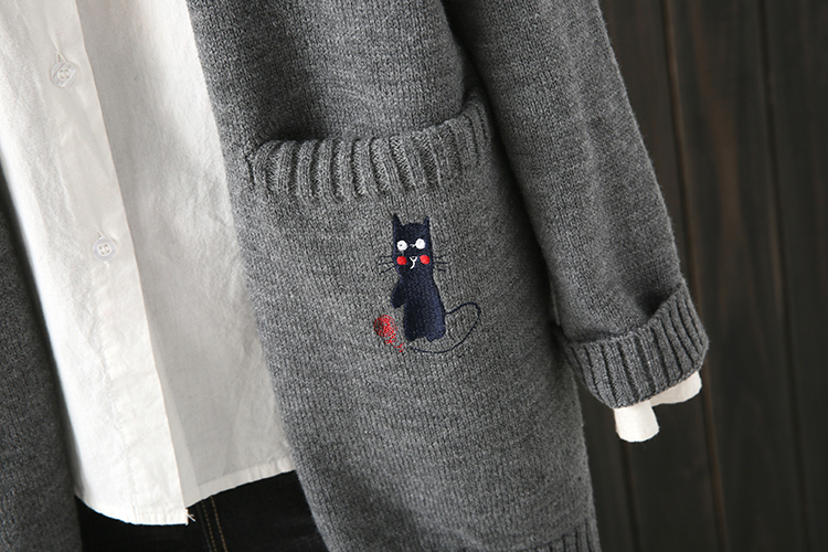 秋冬微胖MM200斤宽松纯色口袋绣花中长款毛衣开衫百搭外套女2018