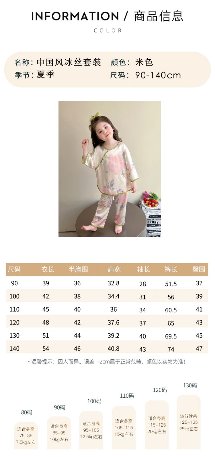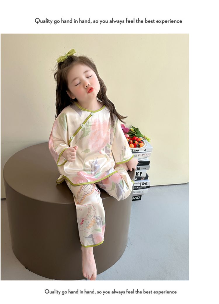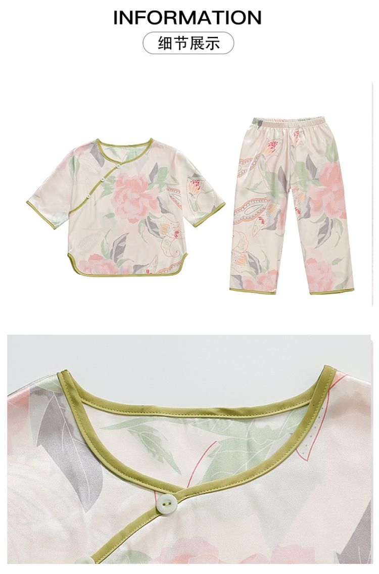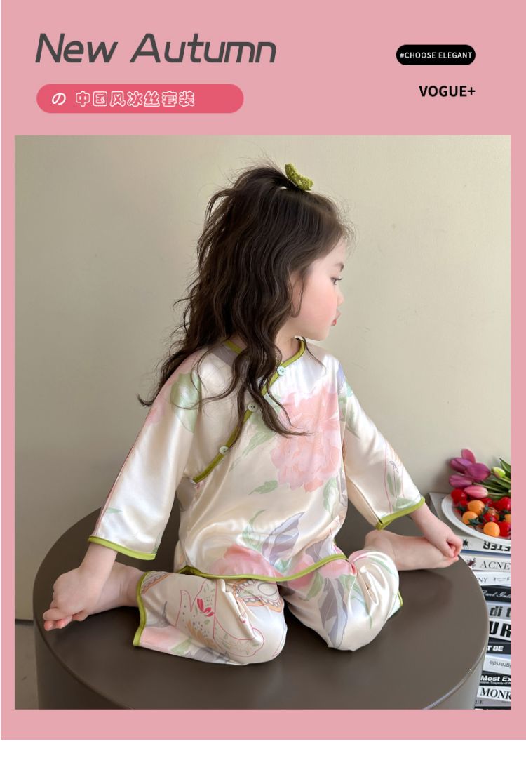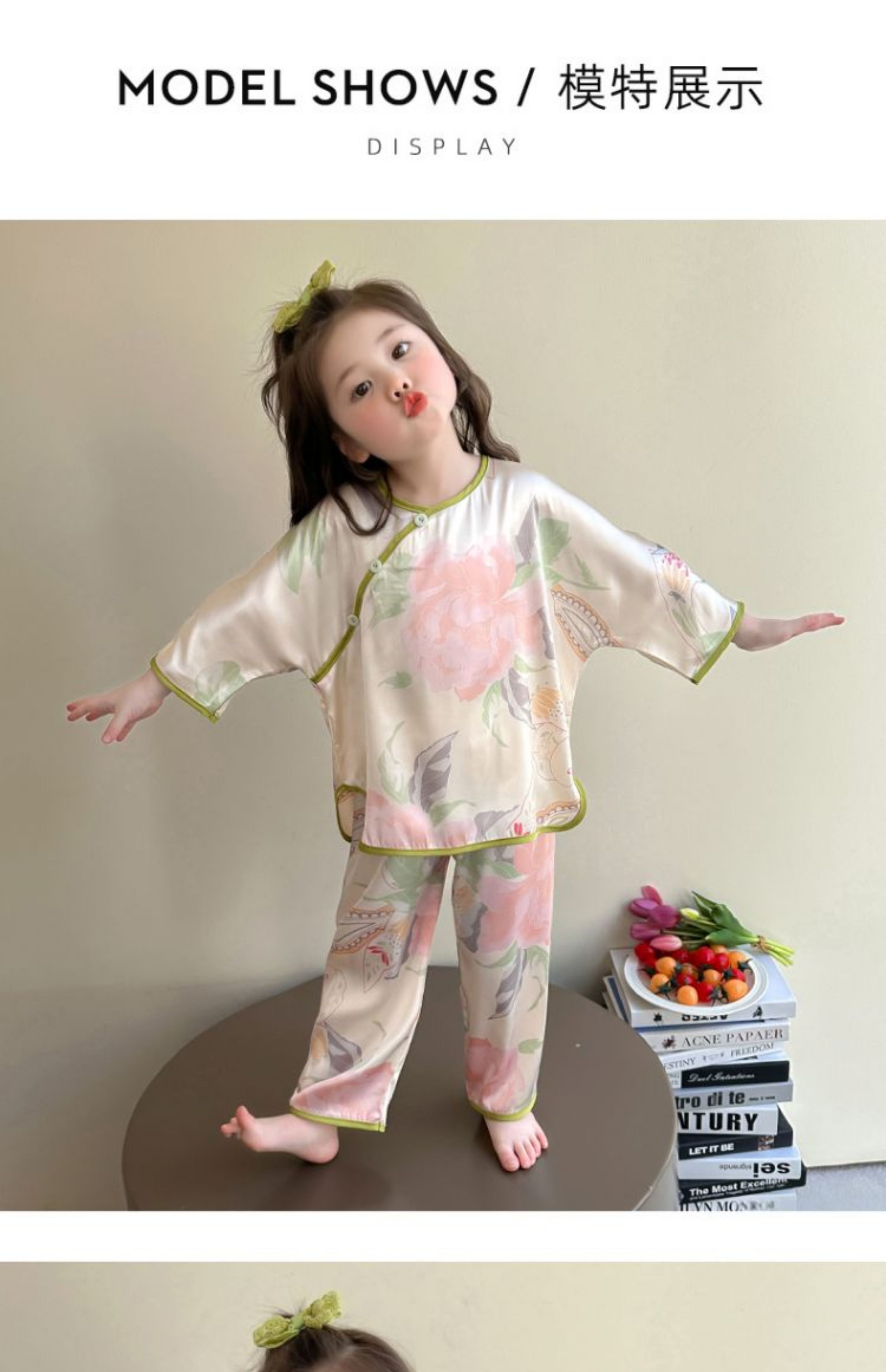 女童夏季冰丝睡衣2025新款儿童中国风家居服套装女宝宝舒适空调服