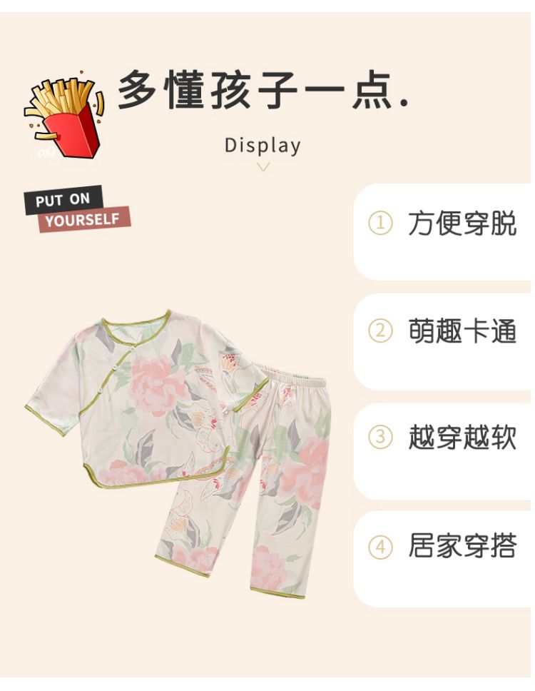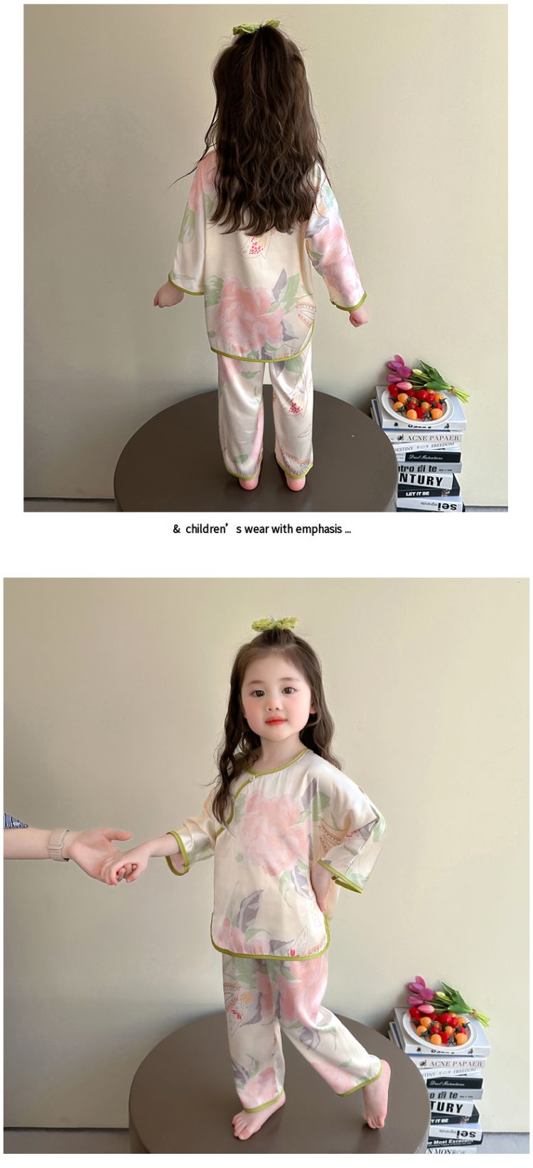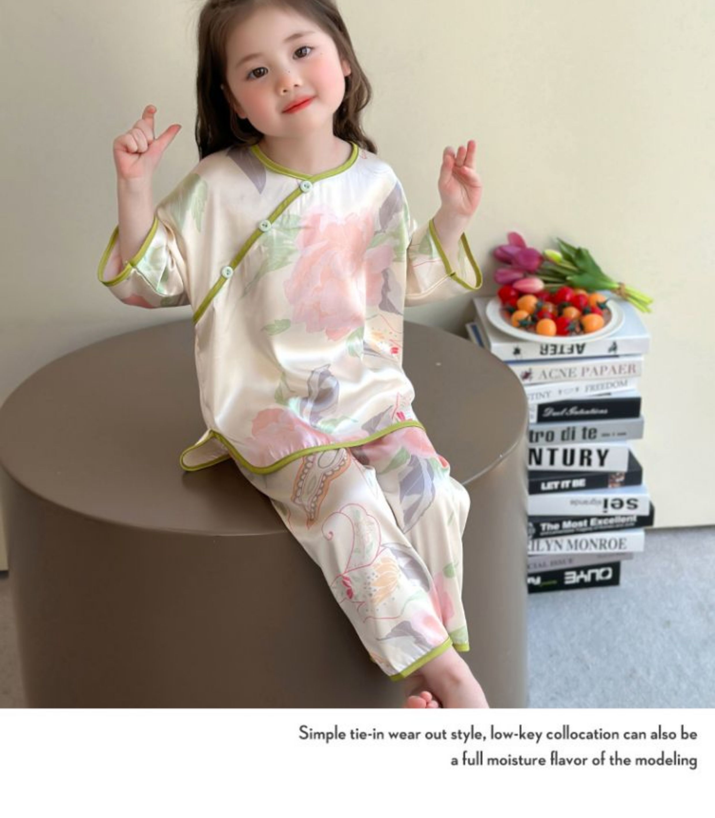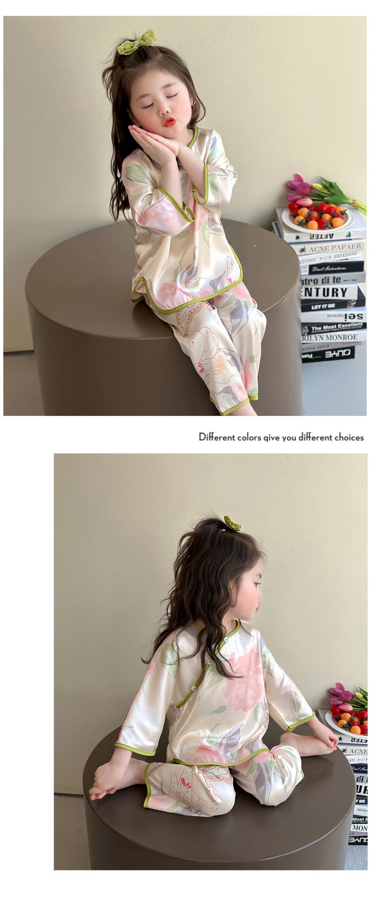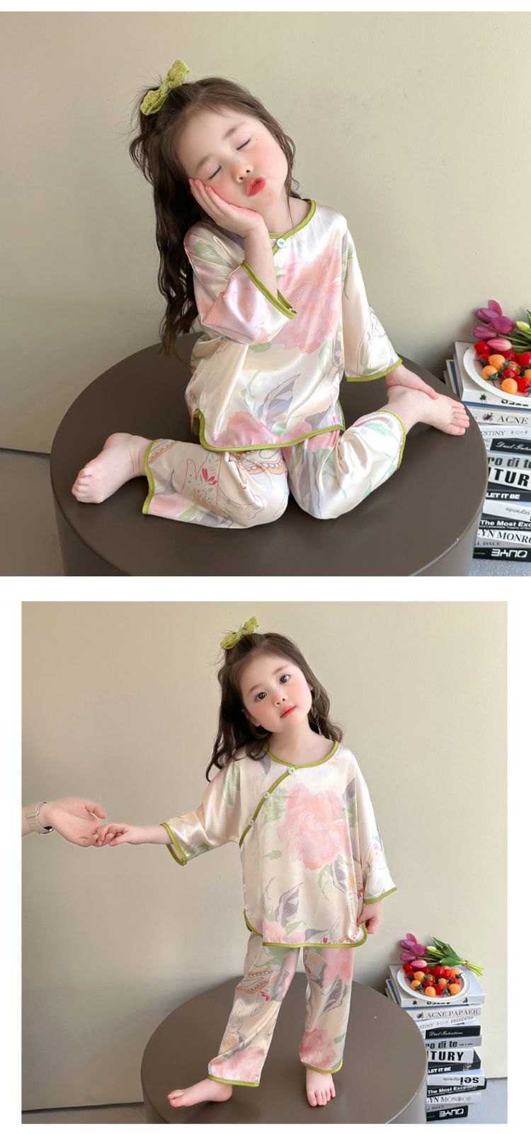 女童夏季冰丝睡衣2025新款儿童中国风家居服套装女宝宝舒适空调服