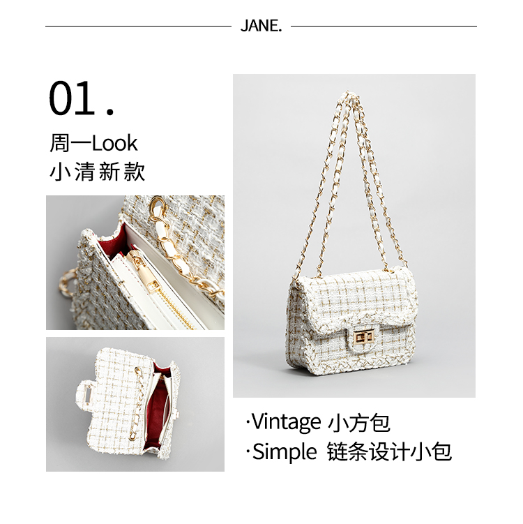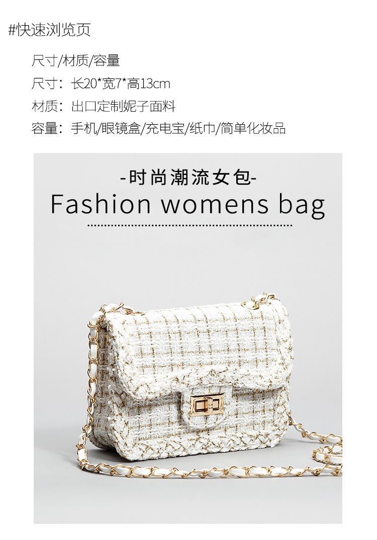 2024年秋冬新款女腋下包小香风呢子链条包高级感单肩斜挎包小方包