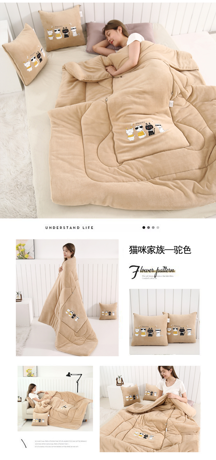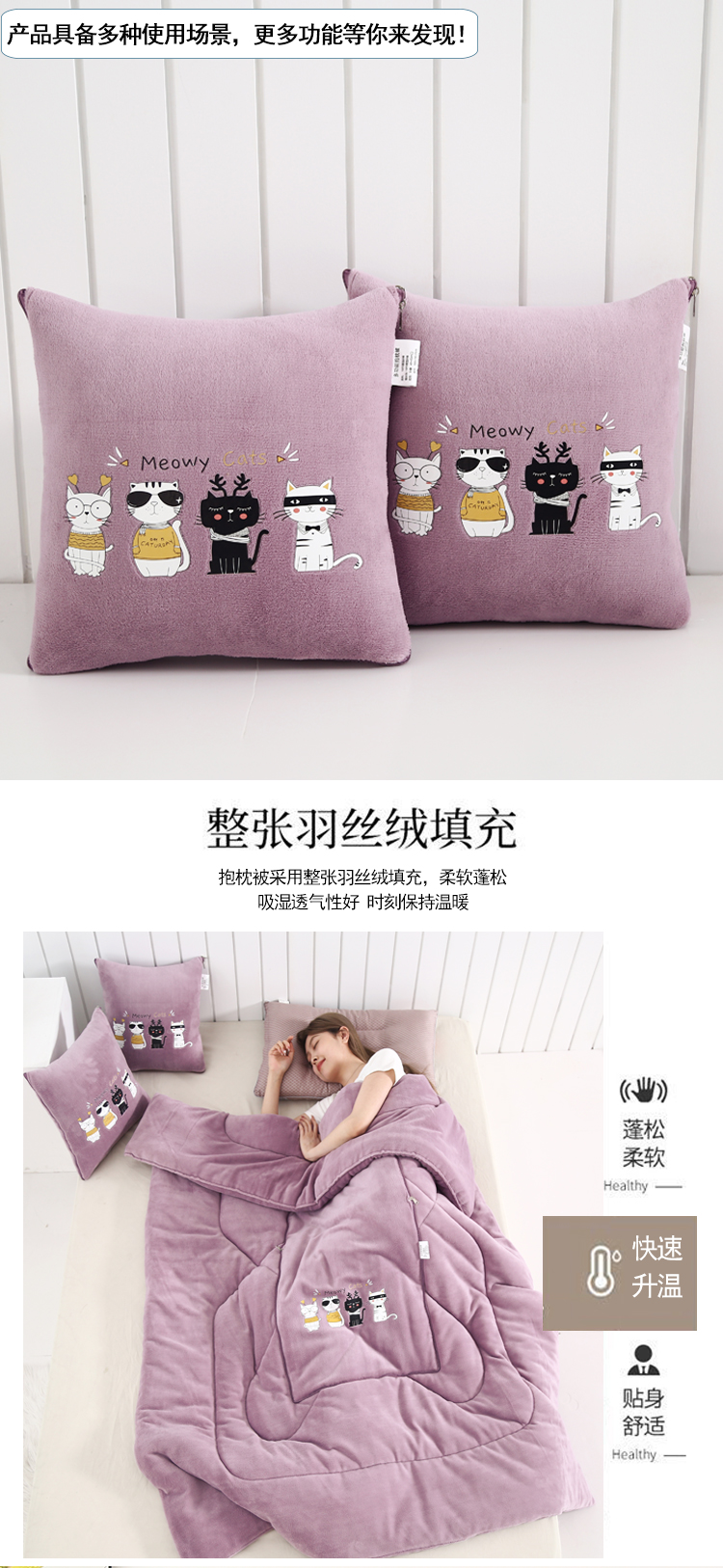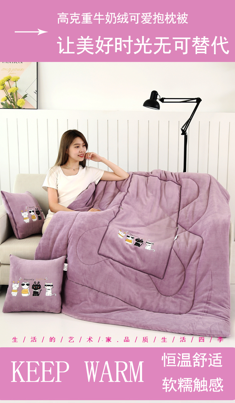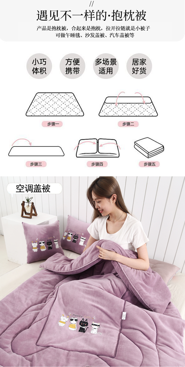 加厚抱枕被子两用牛奶绒汽车沙发靠垫枕头被办公室折叠空调被午睡