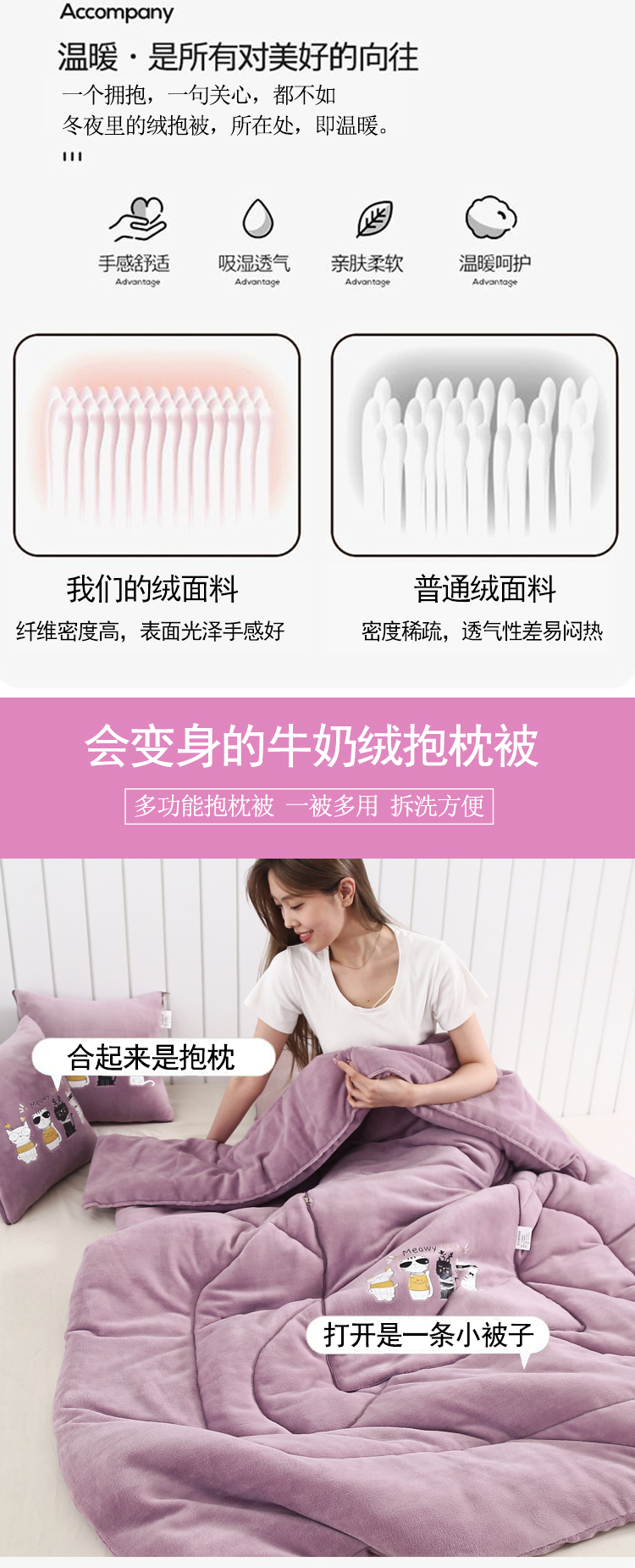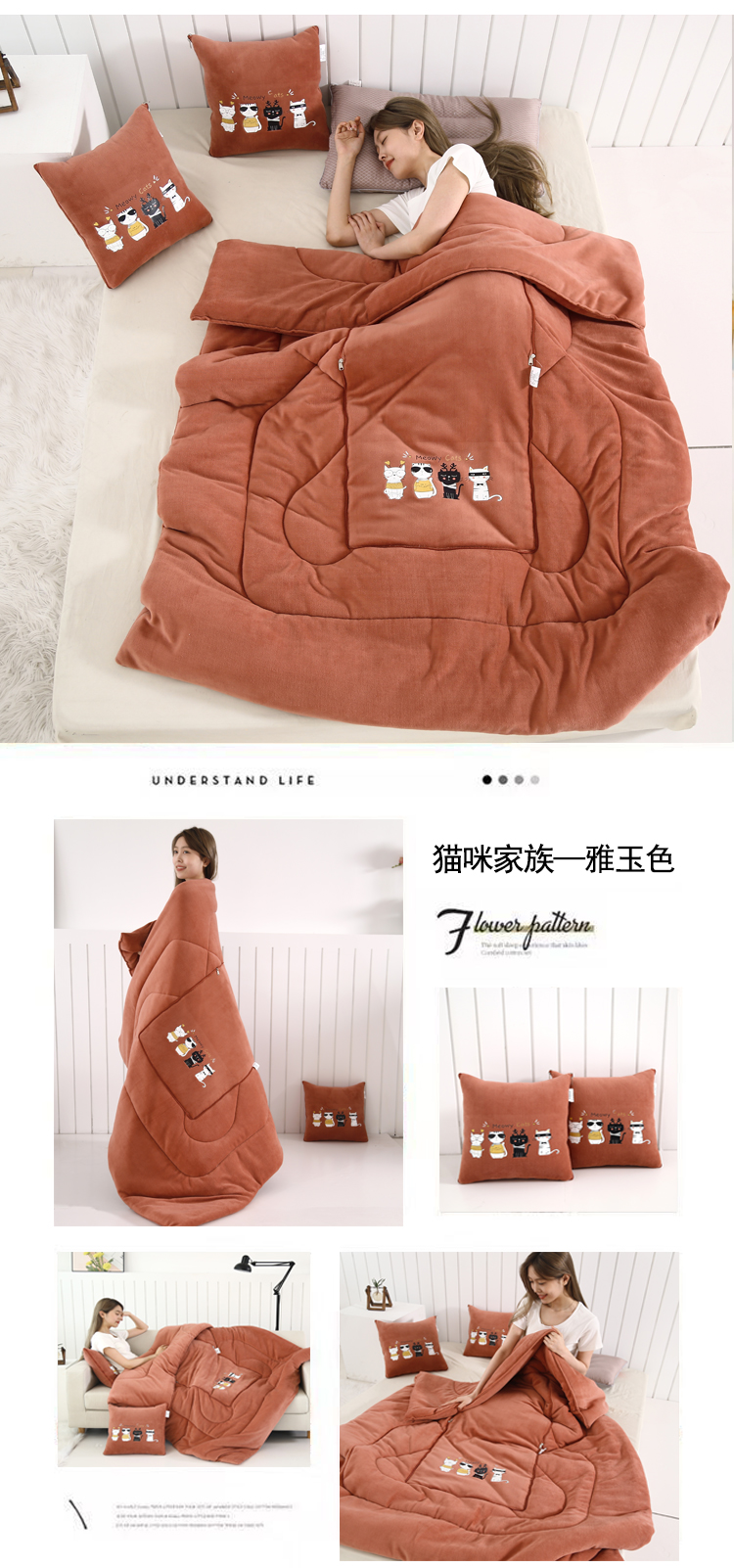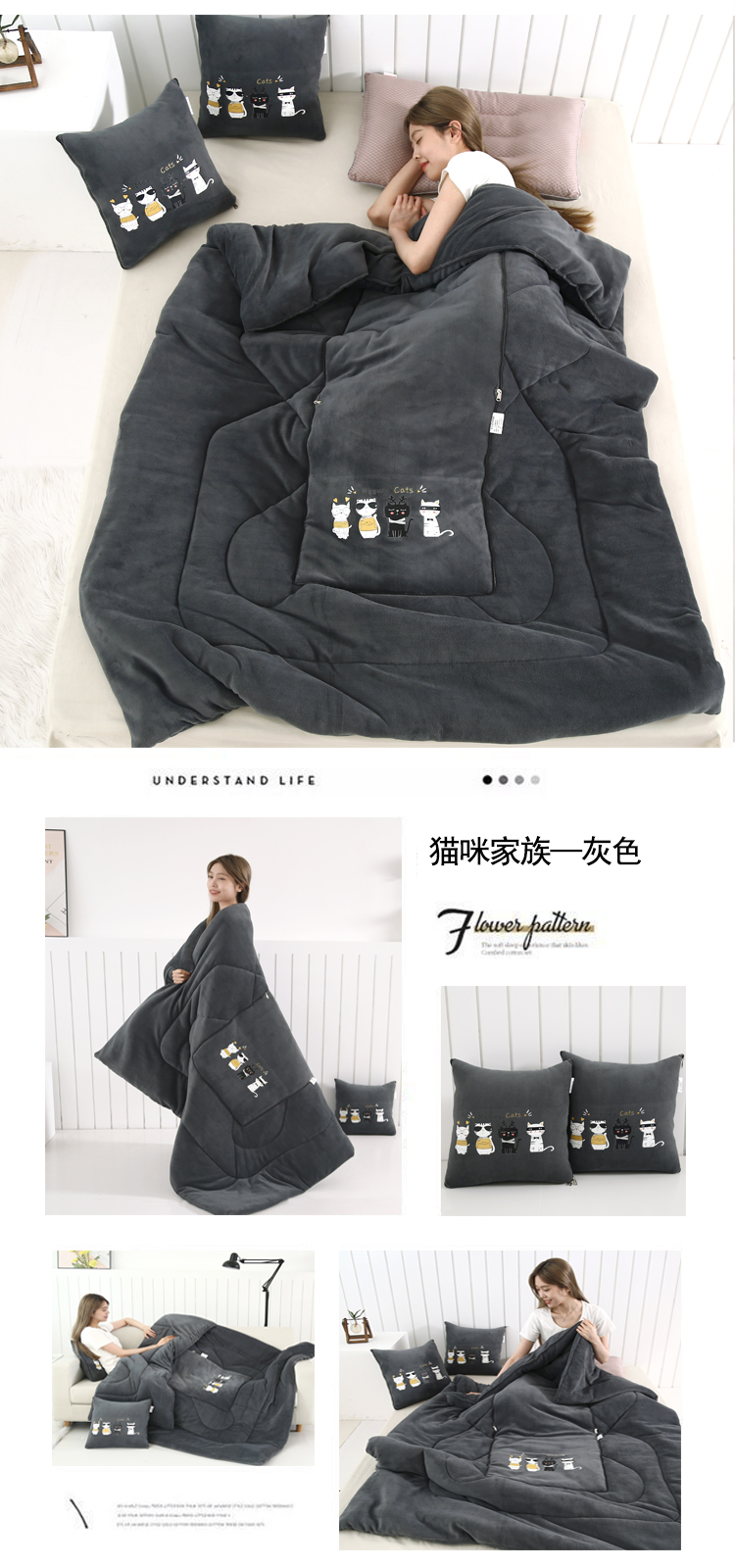 加厚抱枕被子两用牛奶绒汽车沙发靠垫枕头被办公室折叠空调被午睡