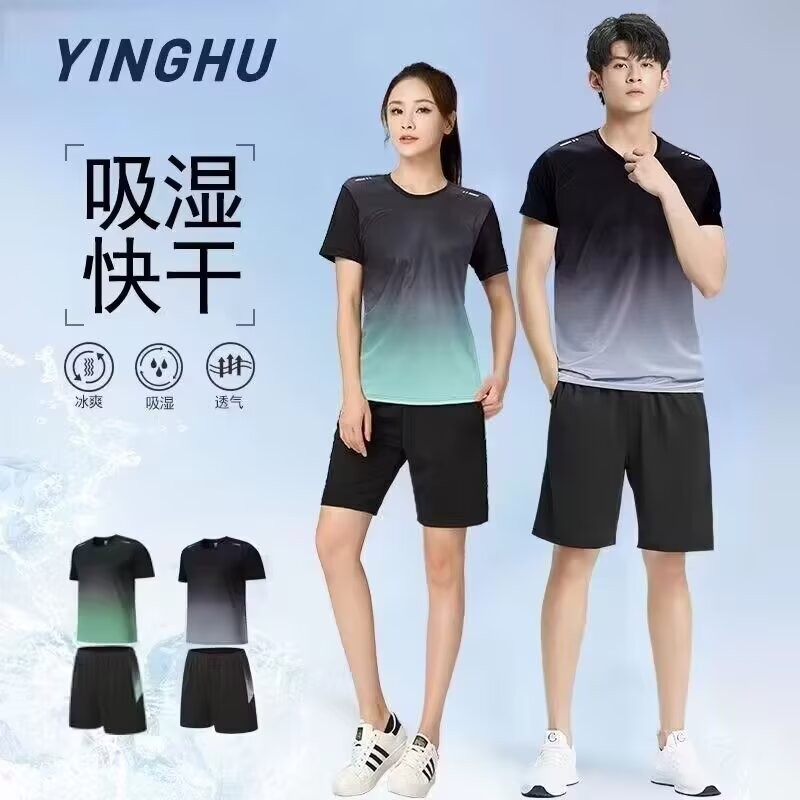运动t恤男冰丝速干衣跑步套装夏季薄款短袖健身衣服篮球羽毛球服