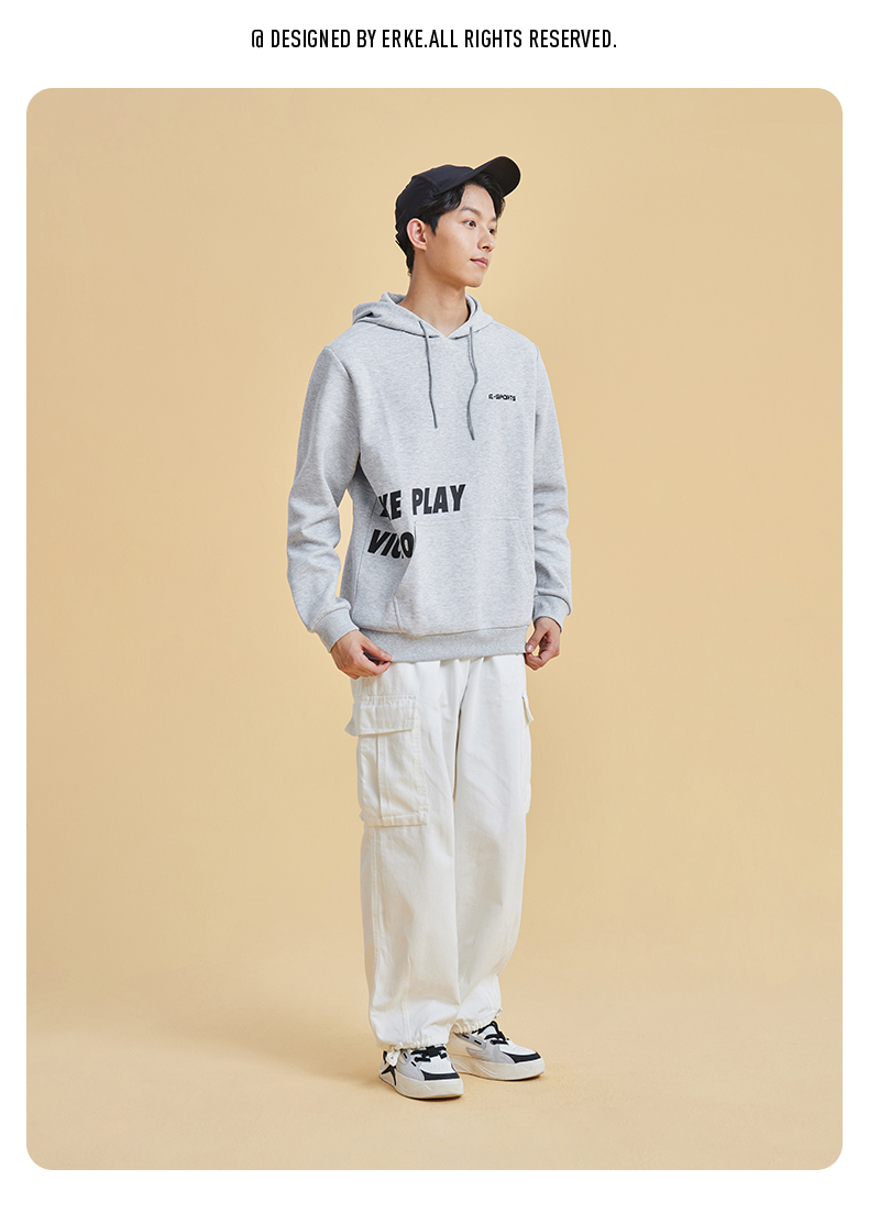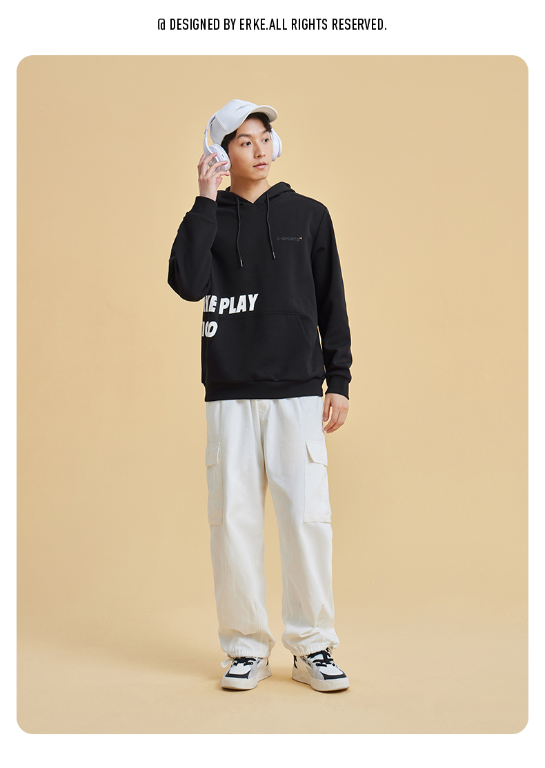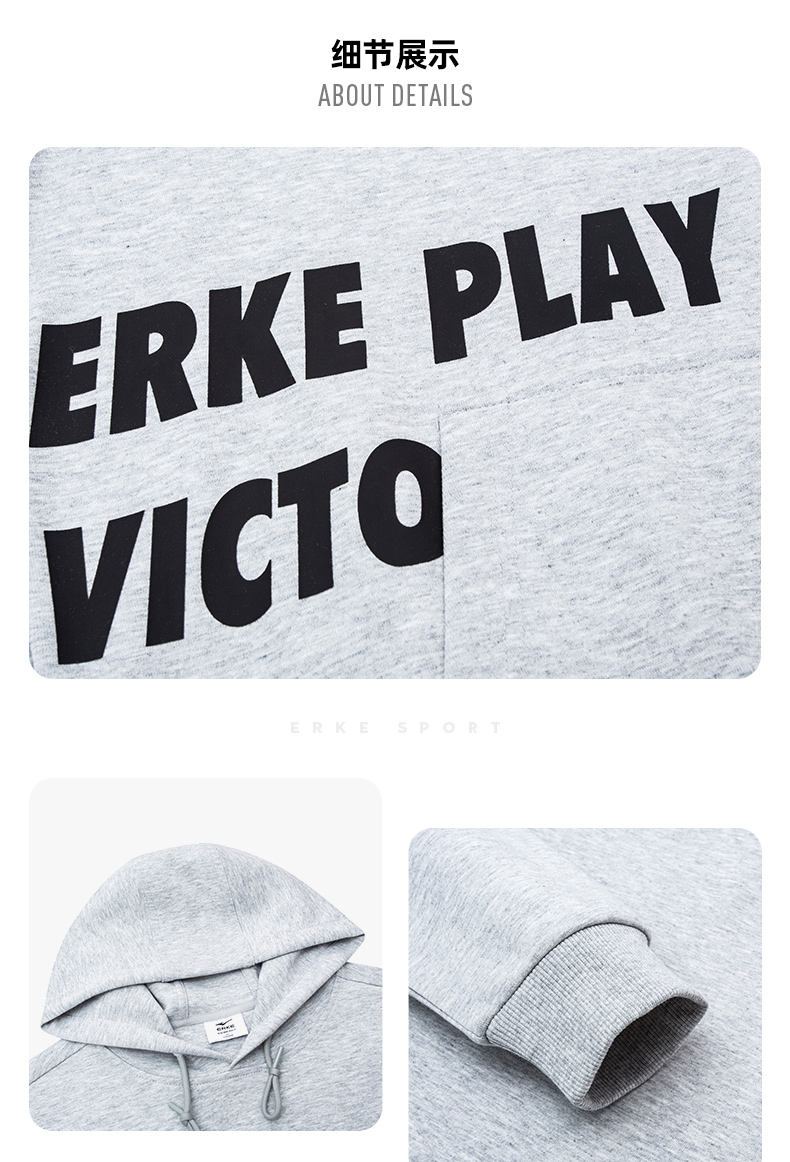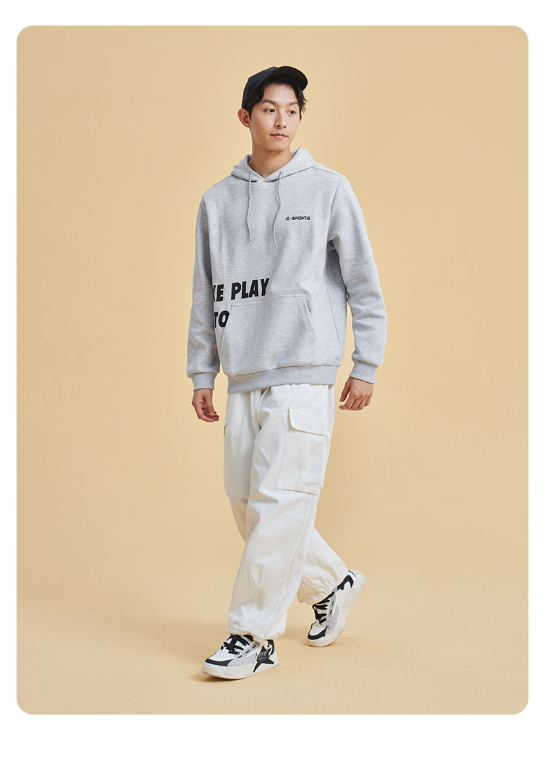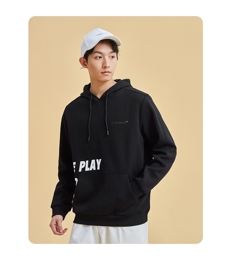 鸿星尔克卫衣男春秋男士字母简约上衣运动男款连帽卫衣帽衫男