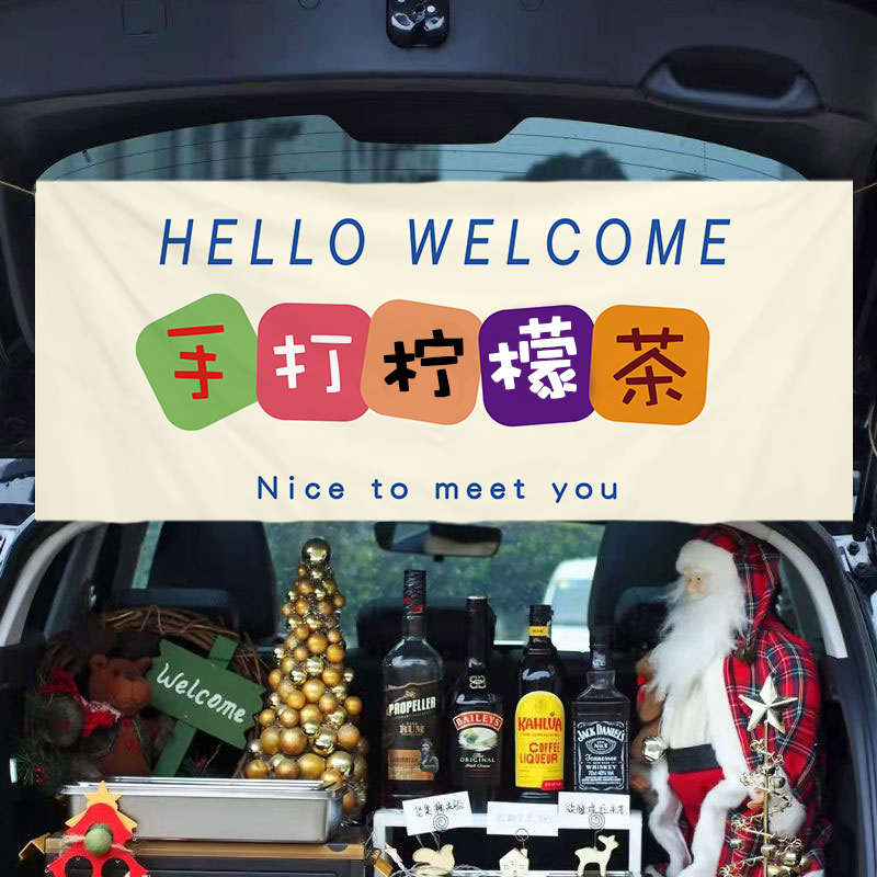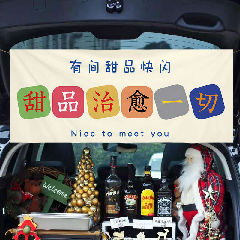 落车卖冰粉摆摊集市挂帘条幅挂布车尾箱咖啡定制后备箱帘子装饰布