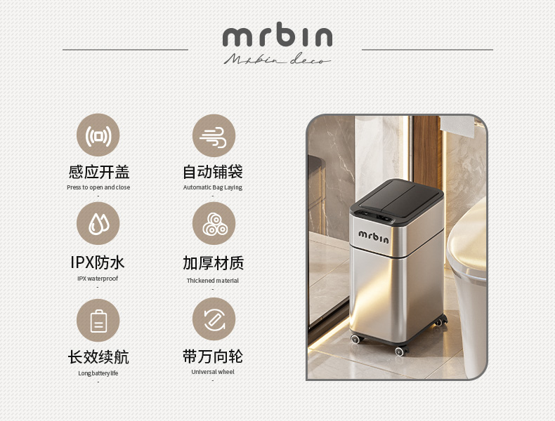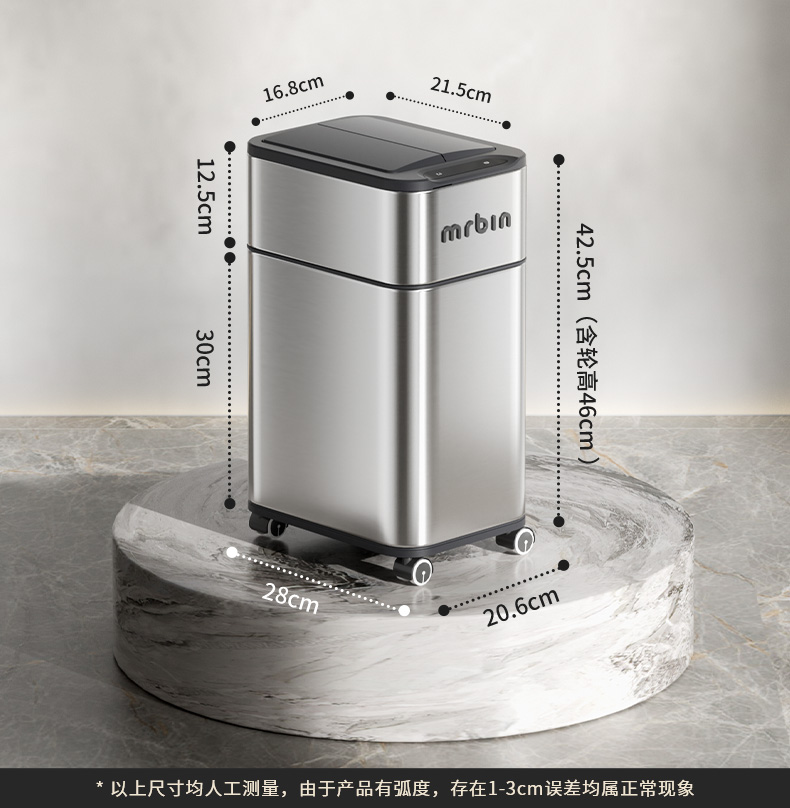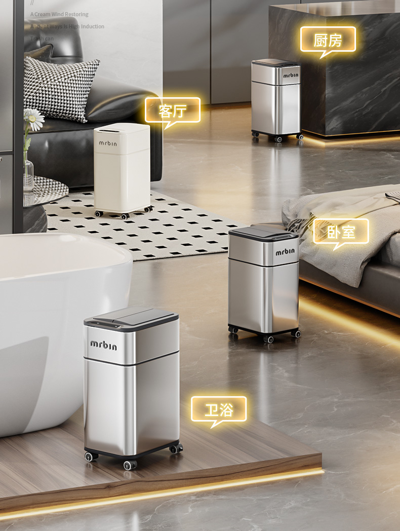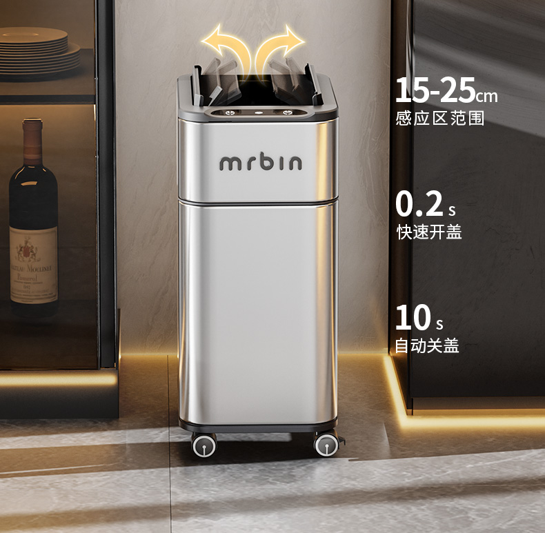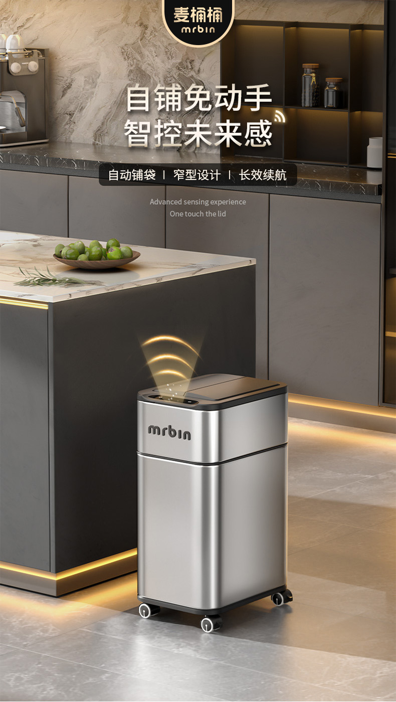 麦桶桶智能感应垃圾桶家用自动铺袋客厅厨房新款不锈钢轮子可移动