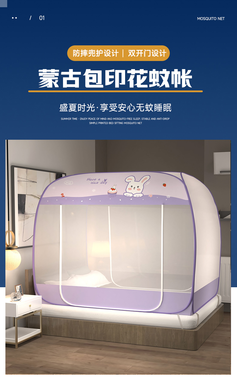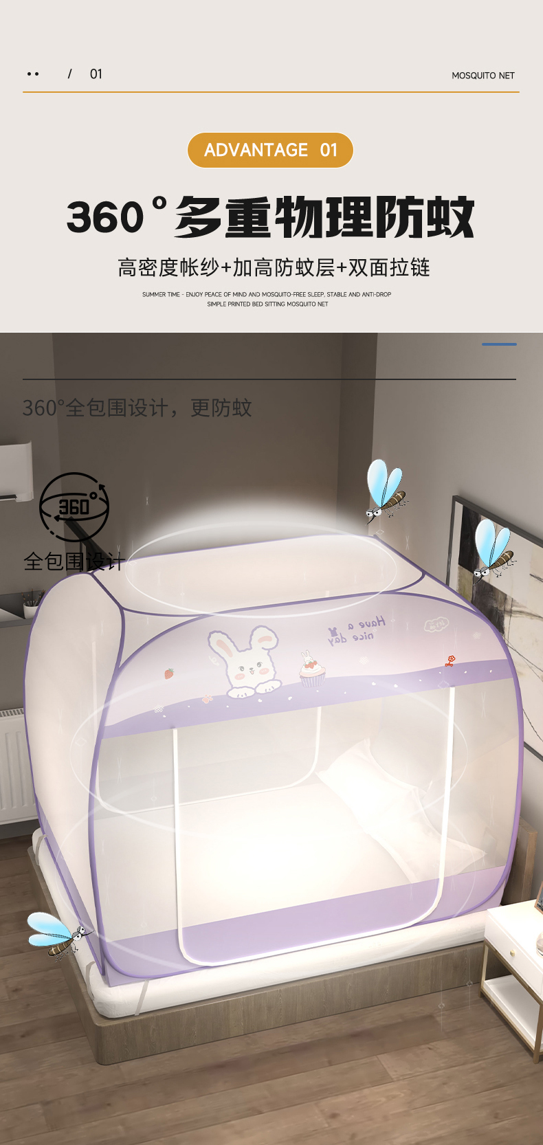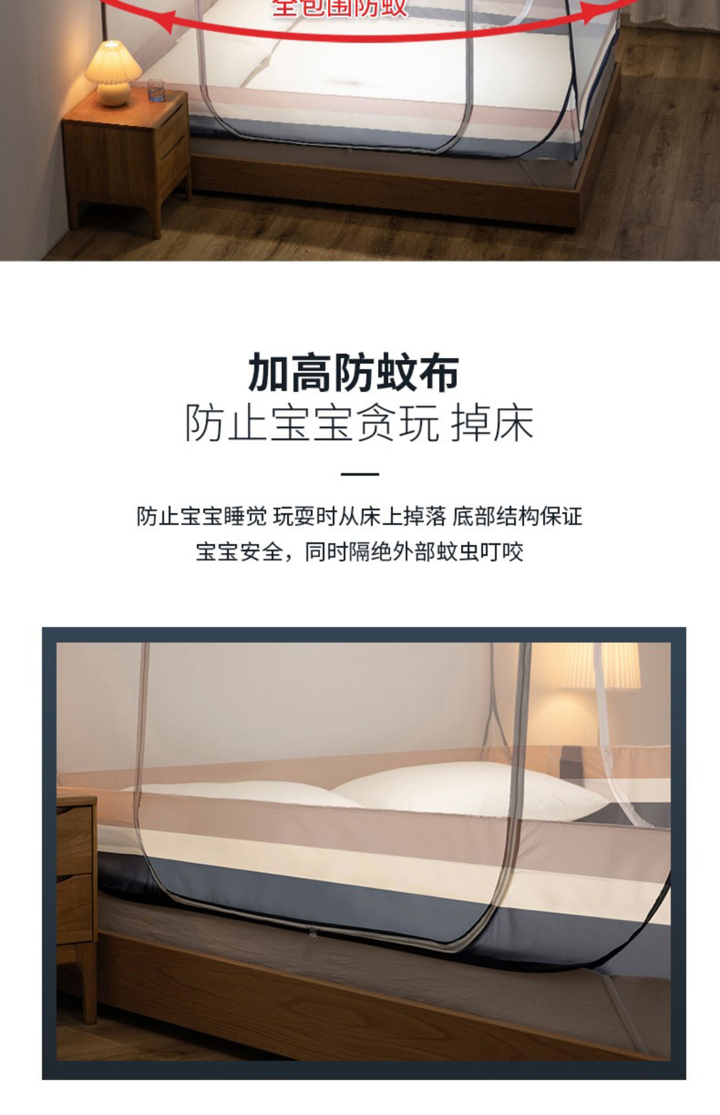 蒙古包蚊帐免安装帐篷蚊帐1.8m床家用1.5m折叠式学生宿舍1.2米床