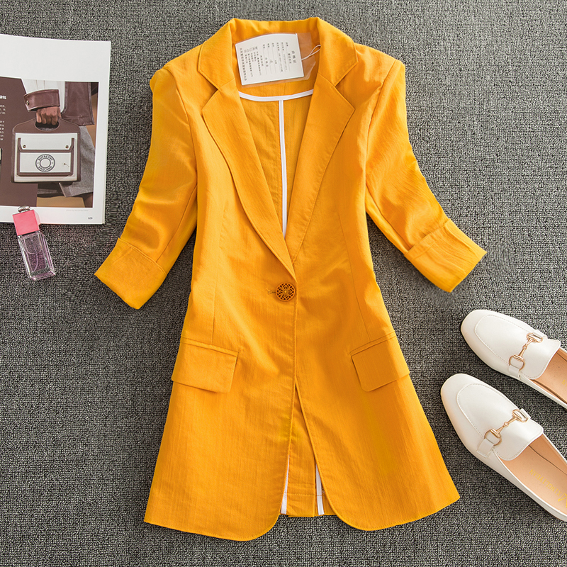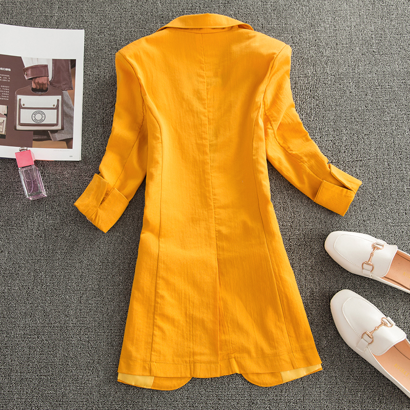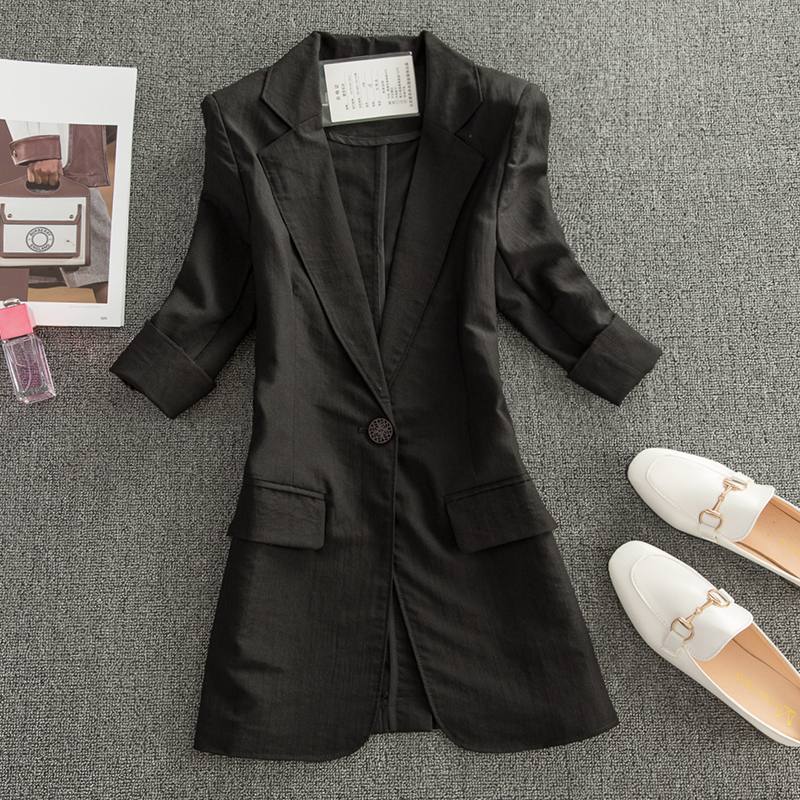 七分袖棉麻小西装女外套中长款2025春夏新款薄款亚麻休闲西服上衣