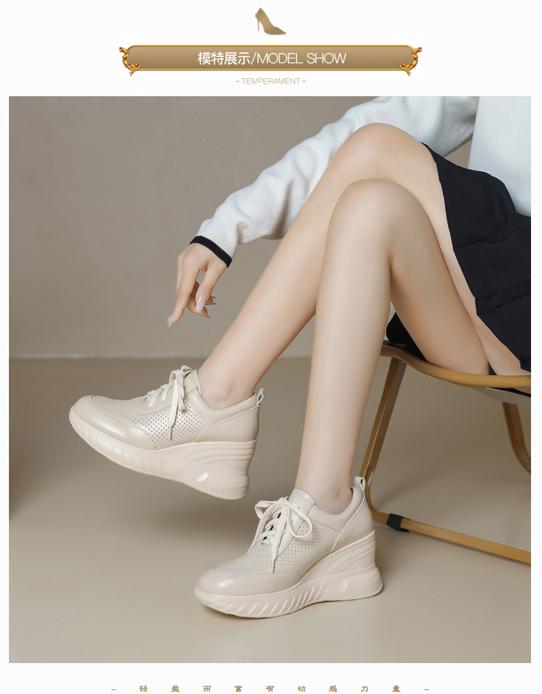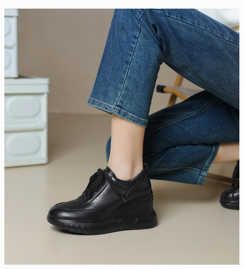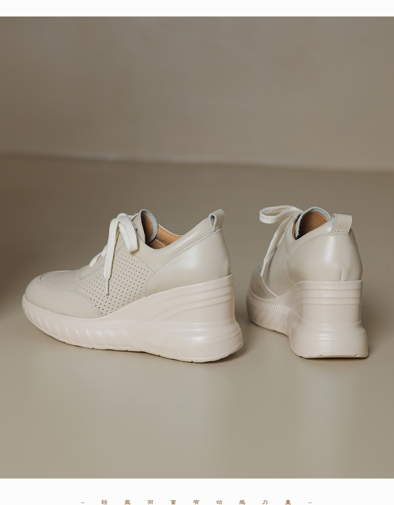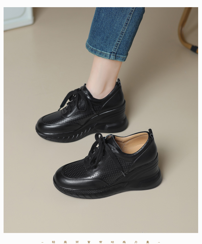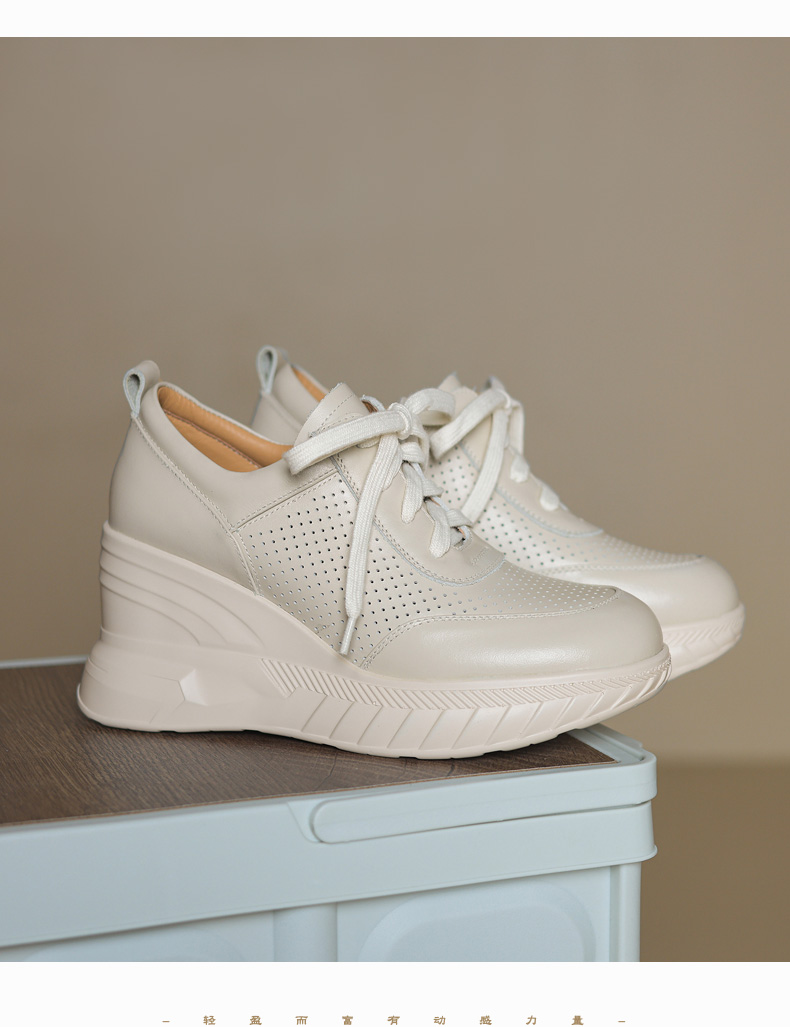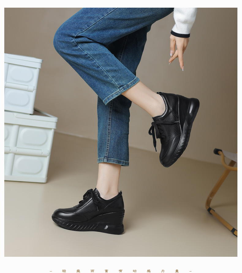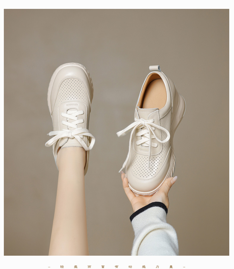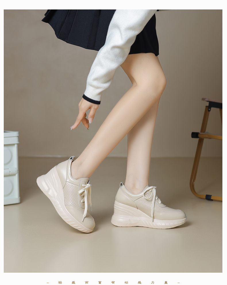 女士休闲鞋2025春季新款透气软底不累脚真皮厚底坡跟单鞋小白鞋