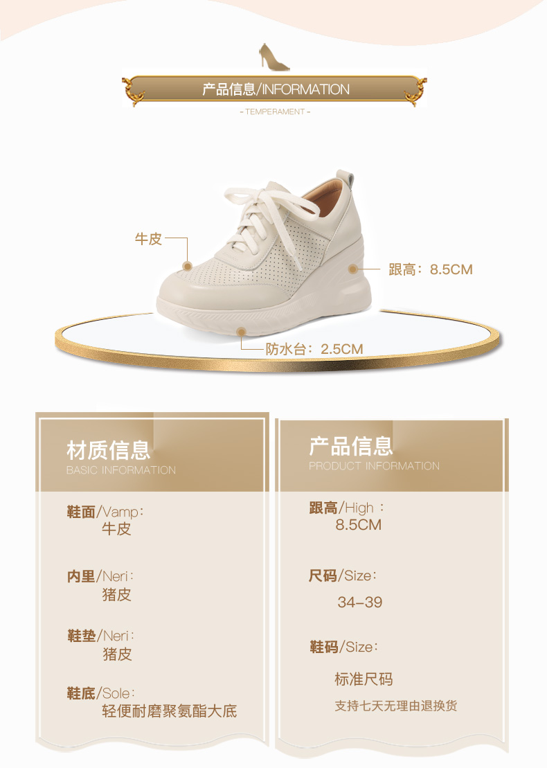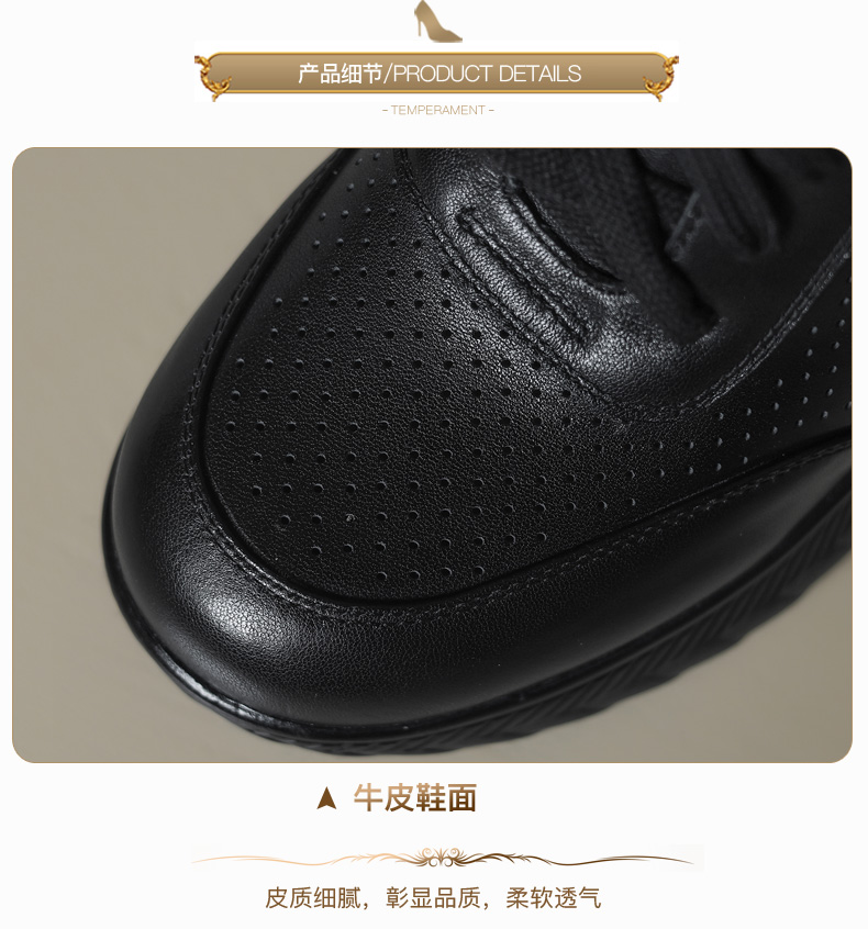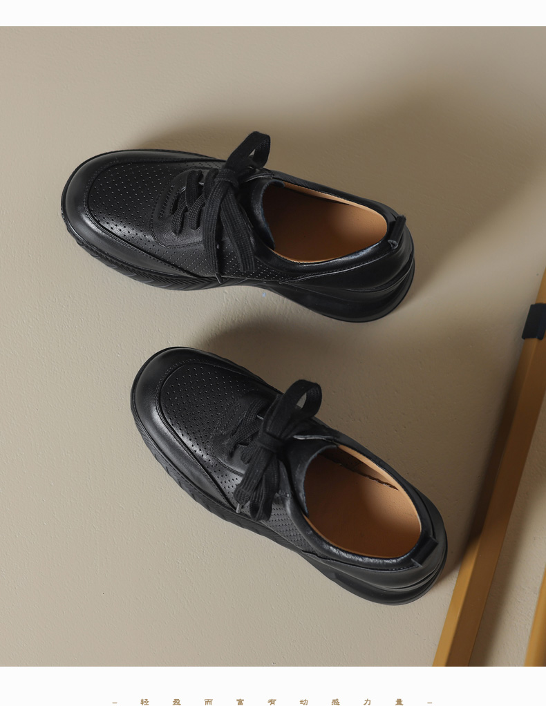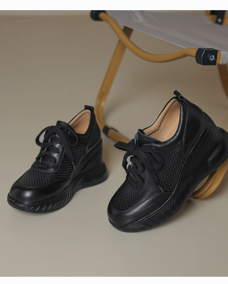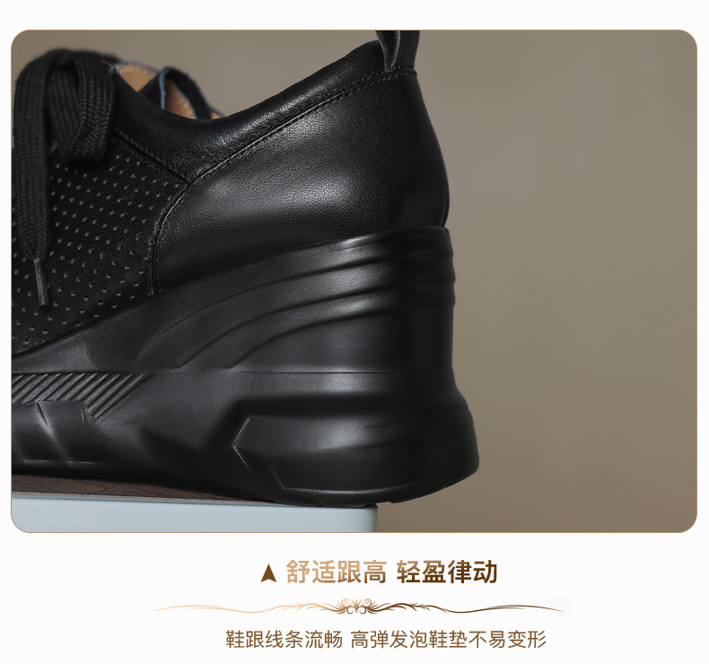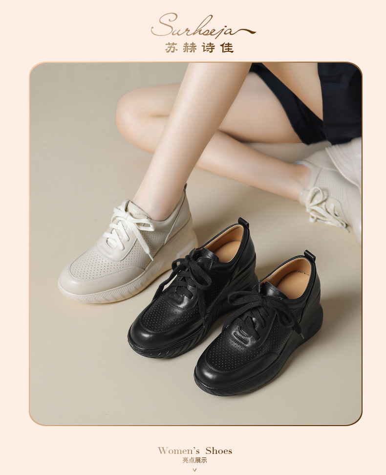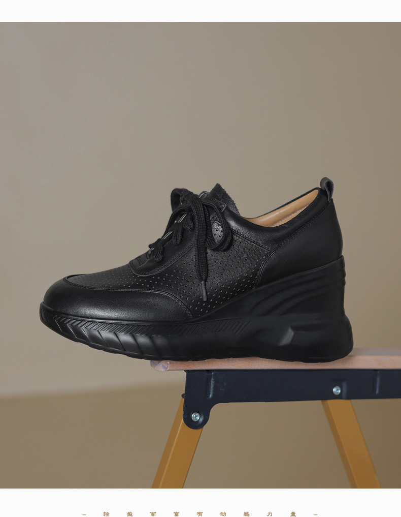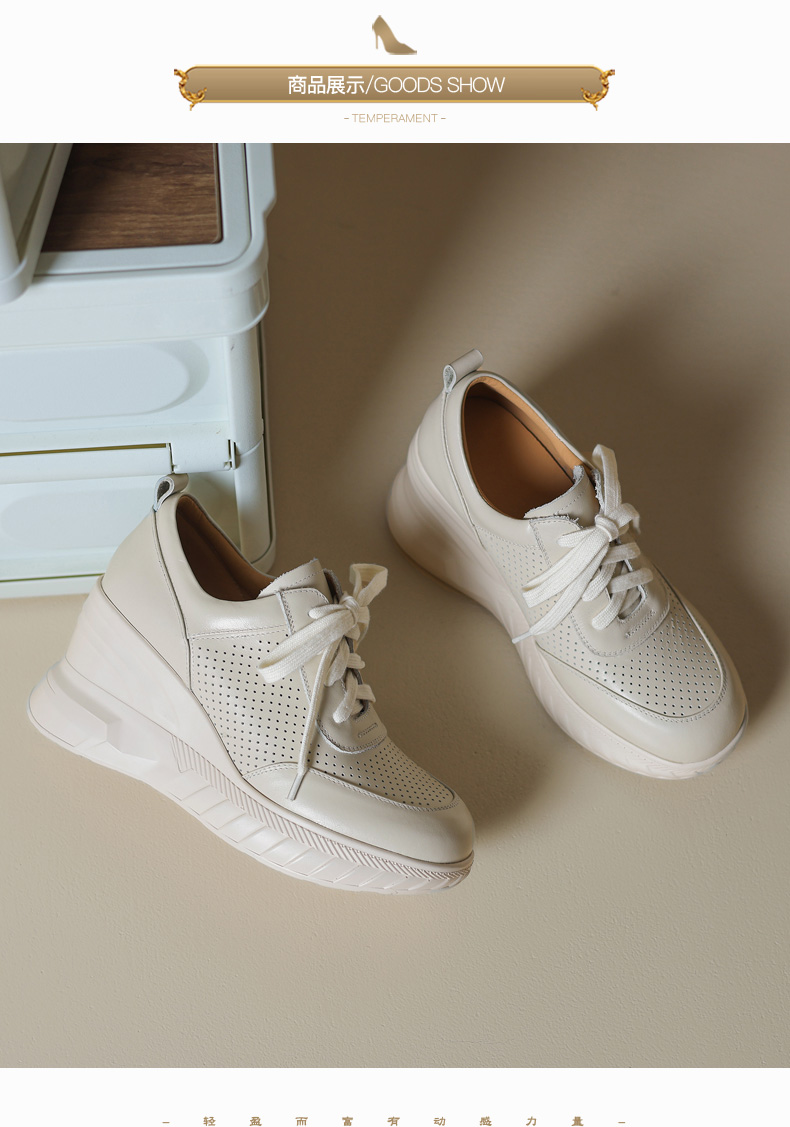 女士休闲鞋2025春季新款透气软底不累脚真皮厚底坡跟单鞋小白鞋