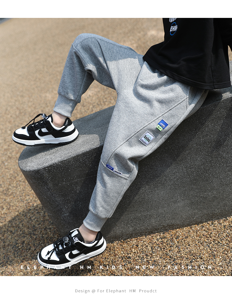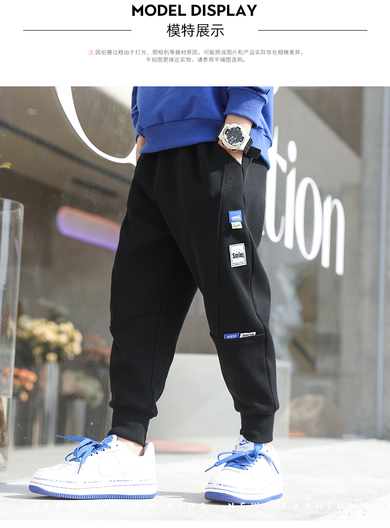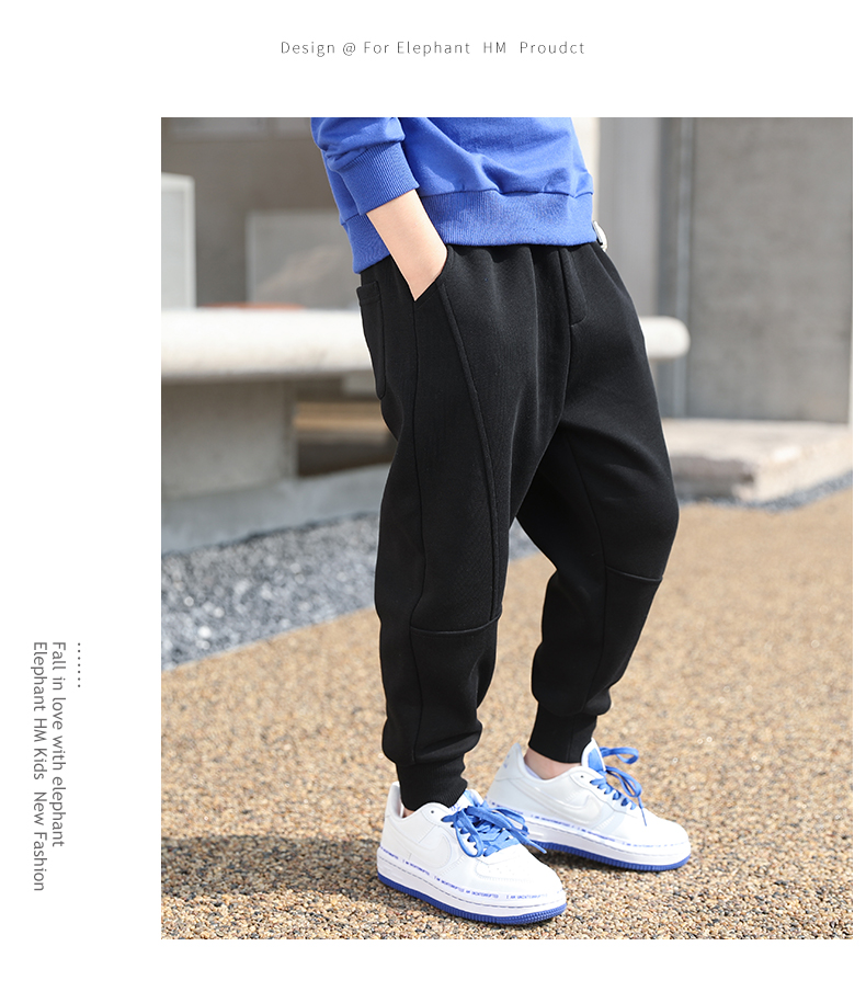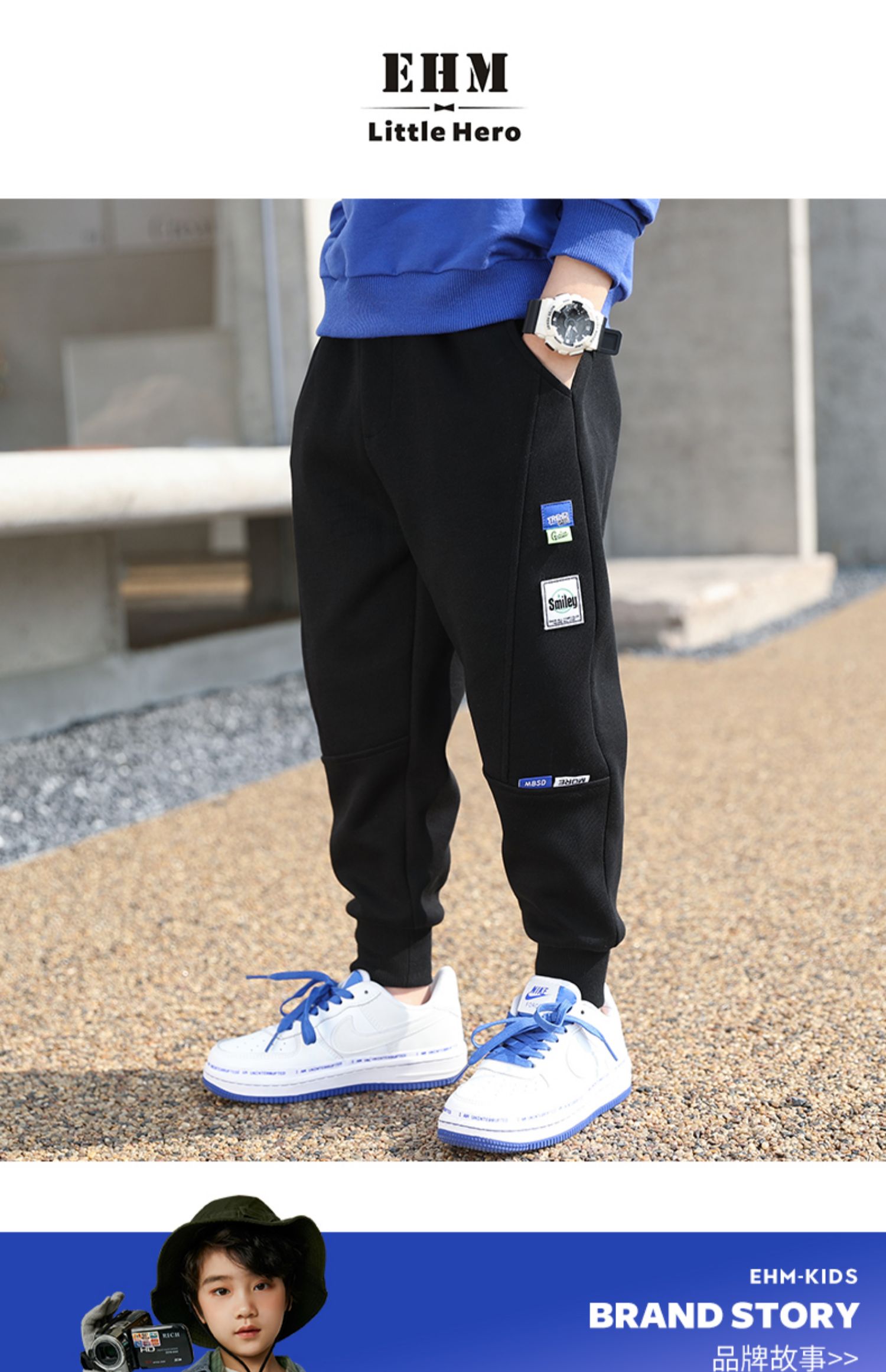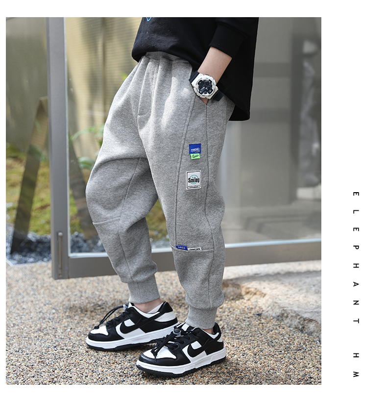 小象汉姆童装儿童加绒裤子秋冬装男童加厚运动裤2024新款保暖长裤