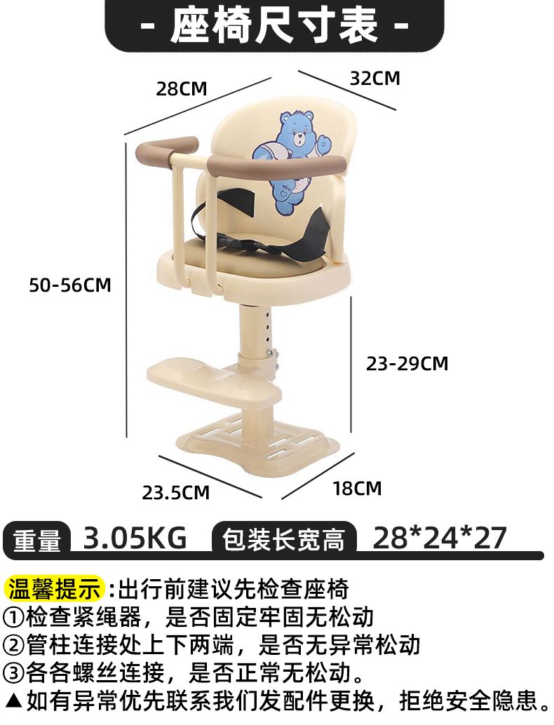电动车儿童座椅电瓶车宝宝坐椅前置宝宝座椅小孩安全通用小凳子