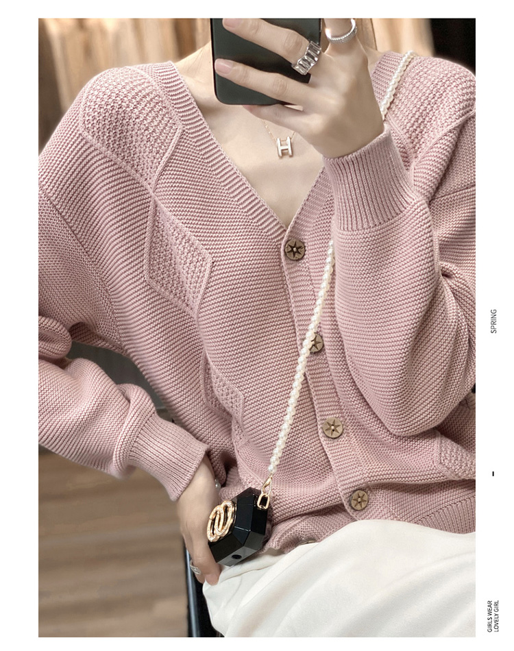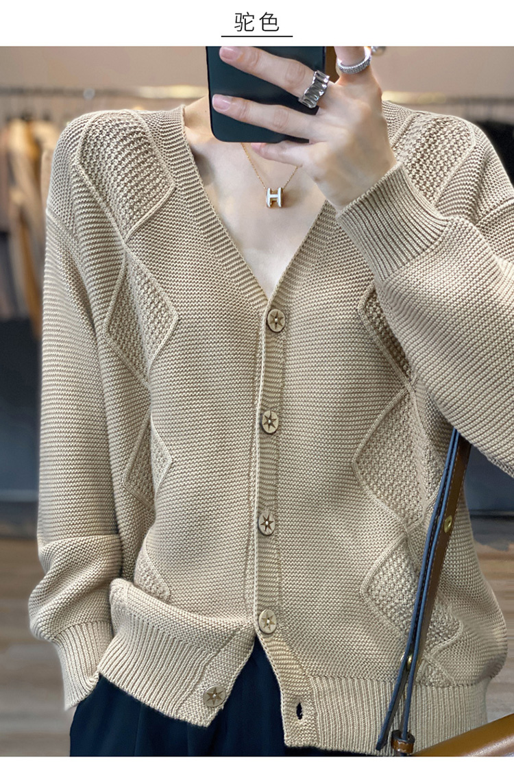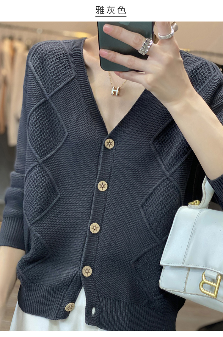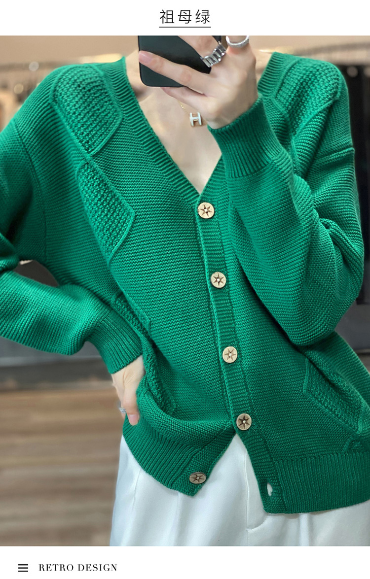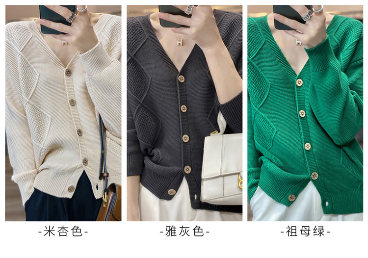 纯棉七针加厚开衫外套女宽松休闲针织毛衣秋冬短款单排扣外搭上衣