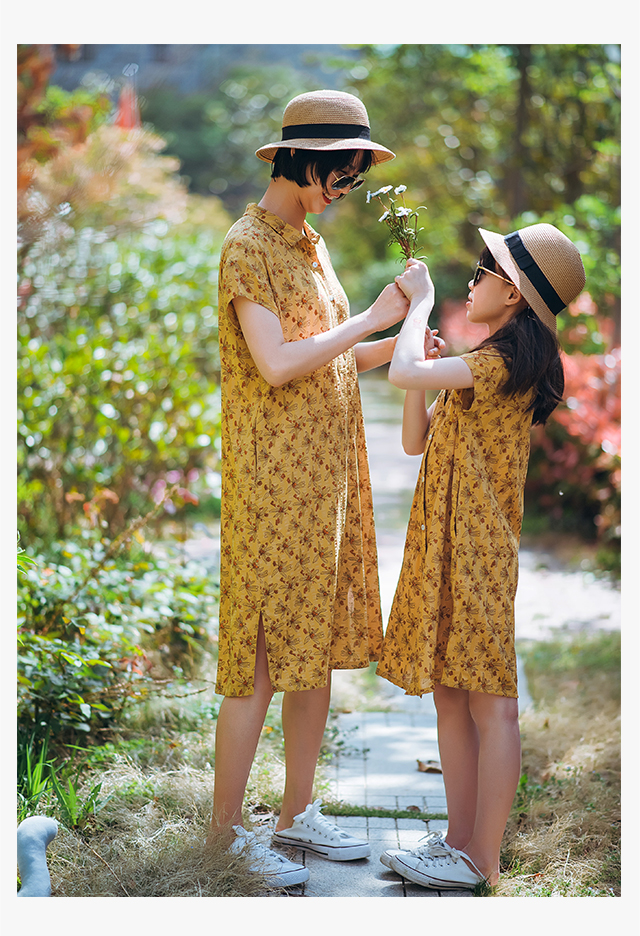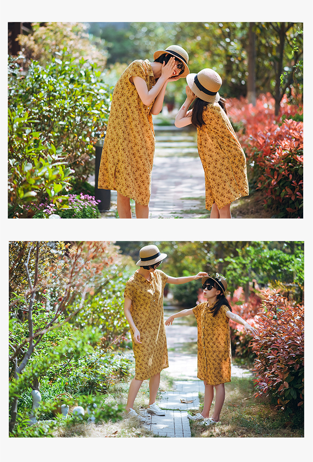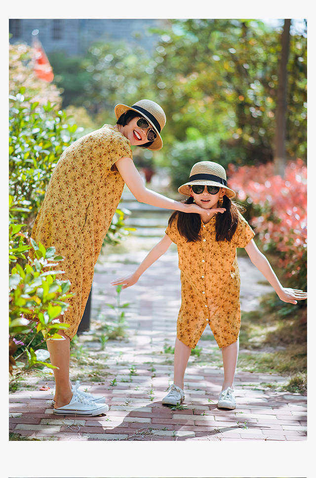 小乐往原创亲子装26课 夏季印花柔软凉快显瘦度假宽松母女连衣裙