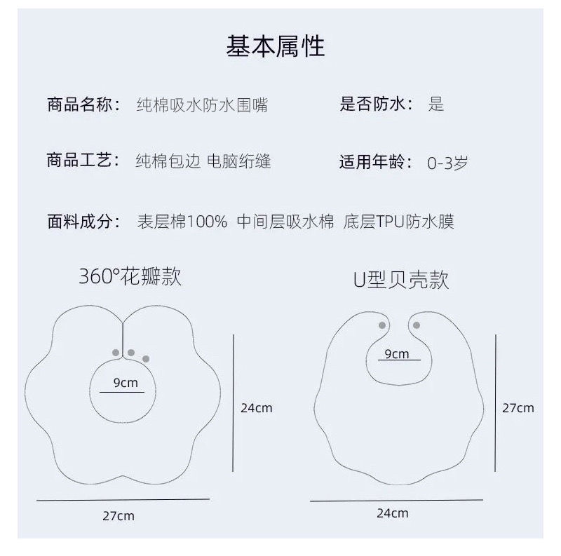 a类口水巾婴儿纯棉防水0-3岁男女宝宝围嘴新生儿防吐奶口水兜围脖