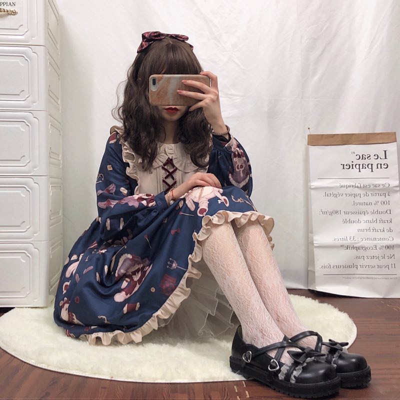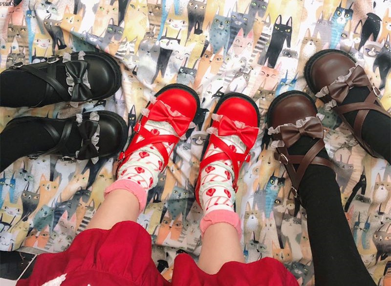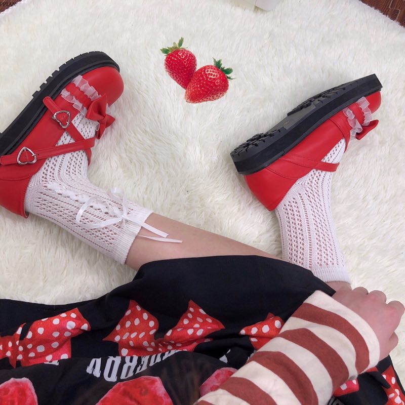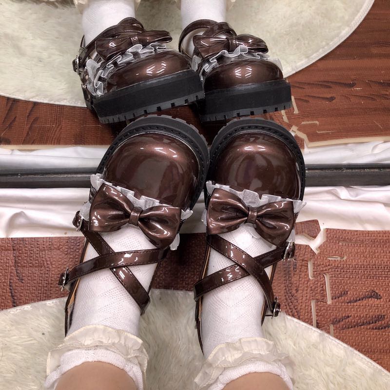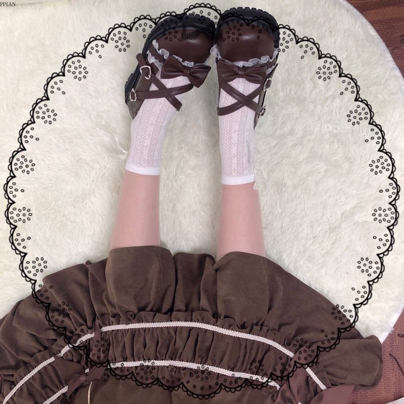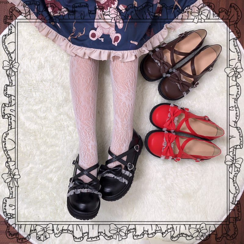 原创lolita日系百搭蕾丝小花边圆头学生鞋