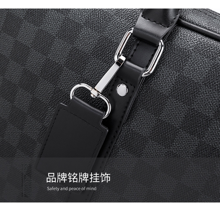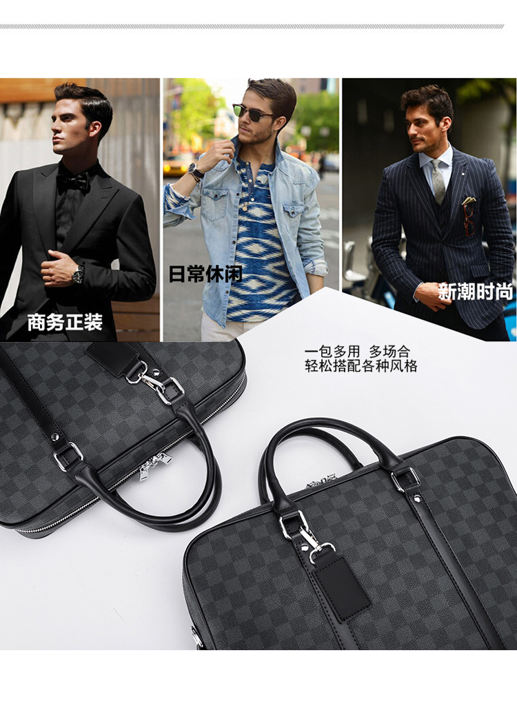 Cavid Kevin欧美时尚男士包黑格纹商务电脑包手提包公文包商务包