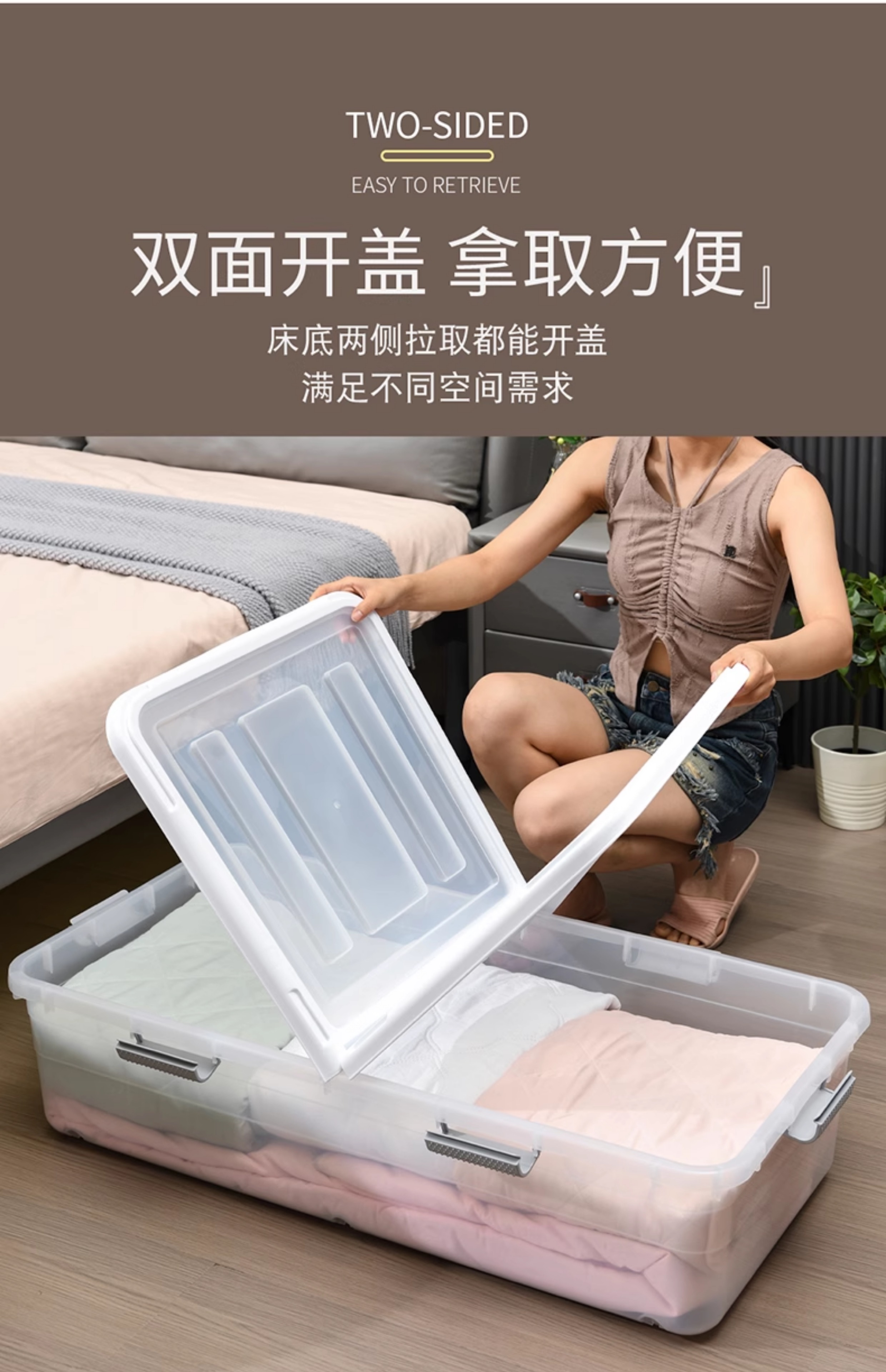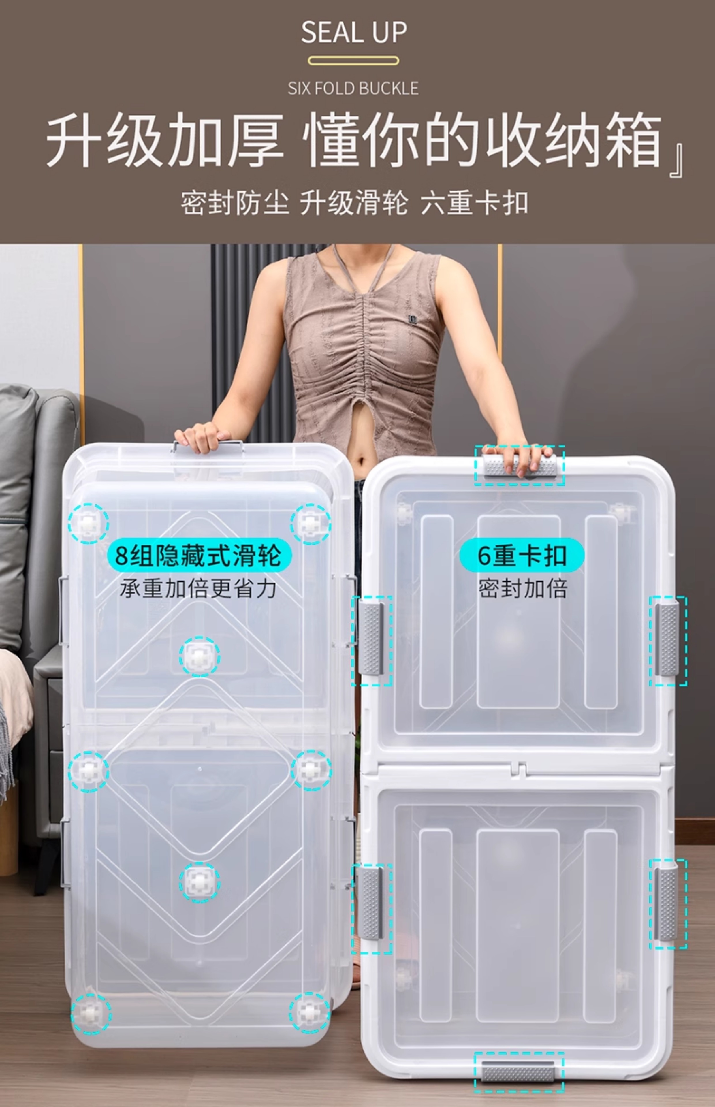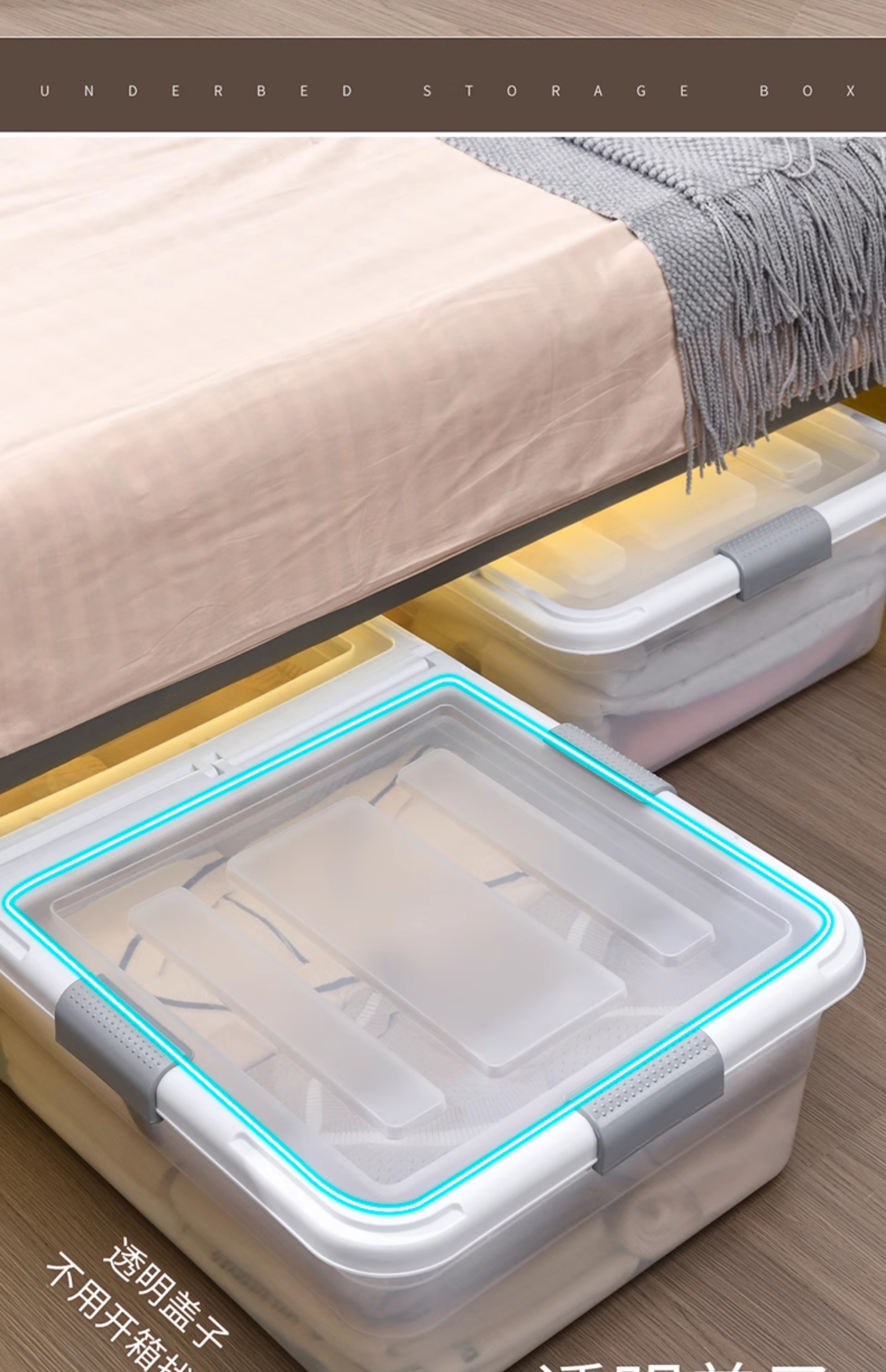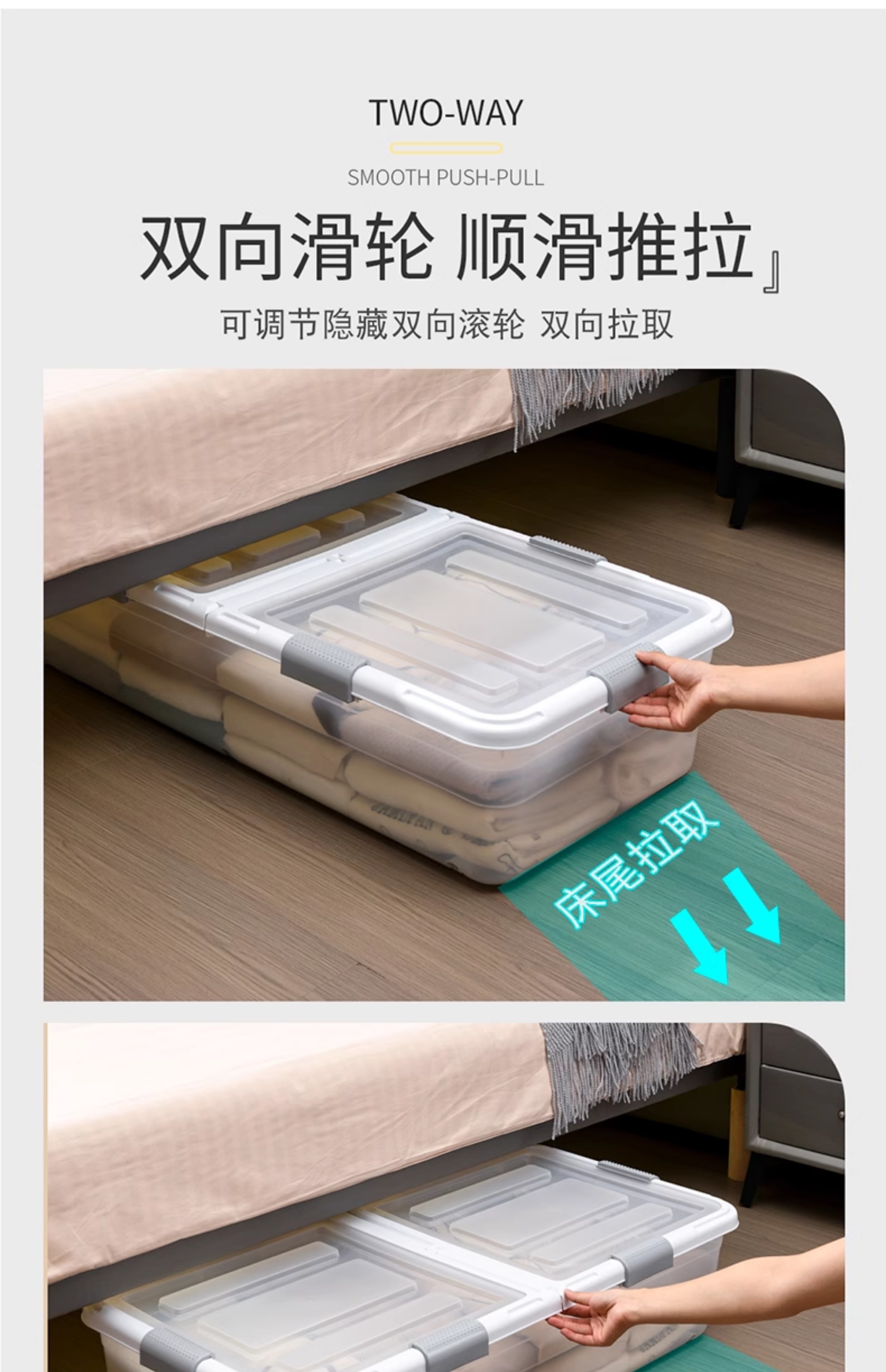 床底收纳箱抽屉式塑料滑轮扁平床下收纳神器家用大容量透明整理箱