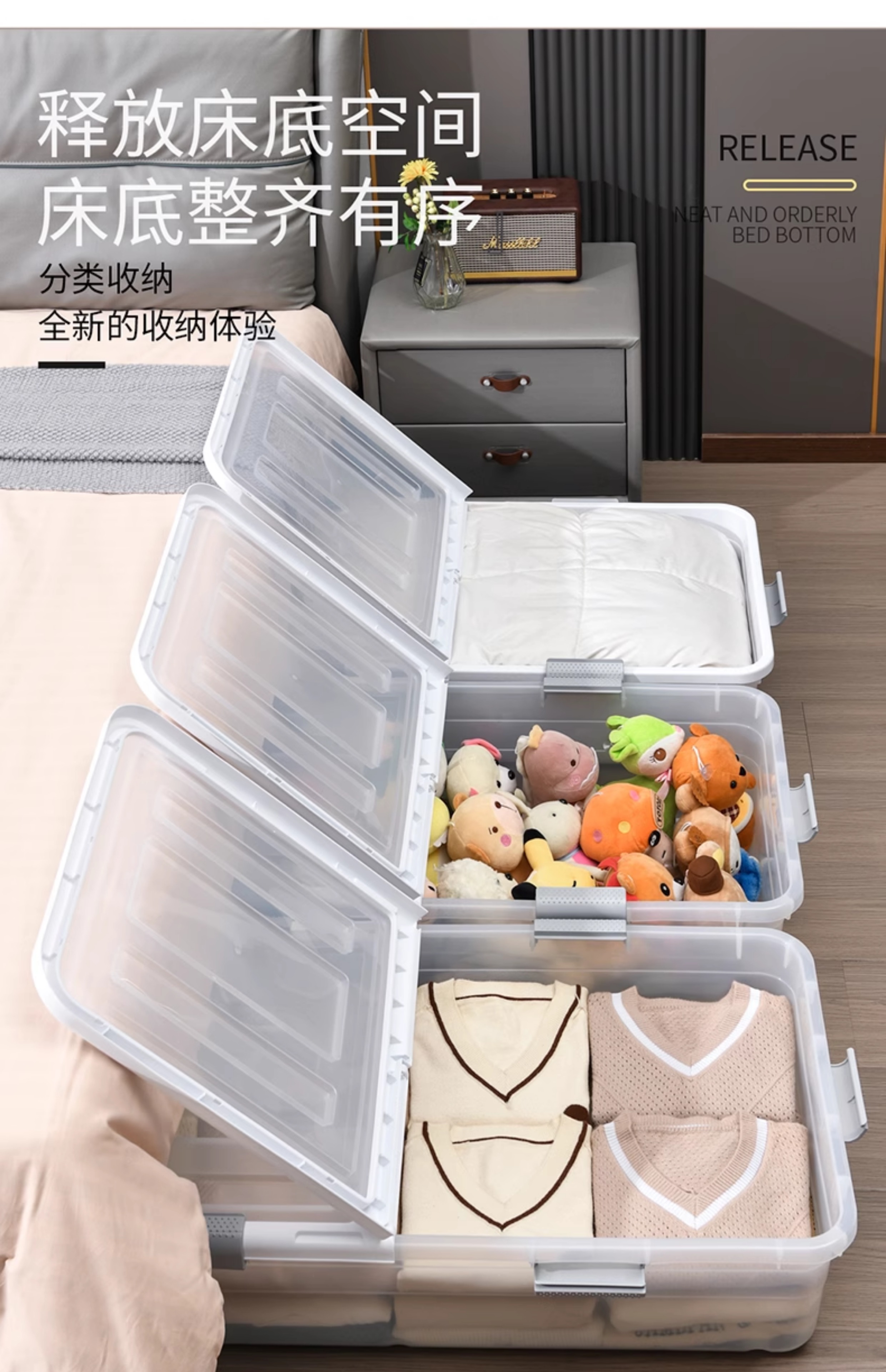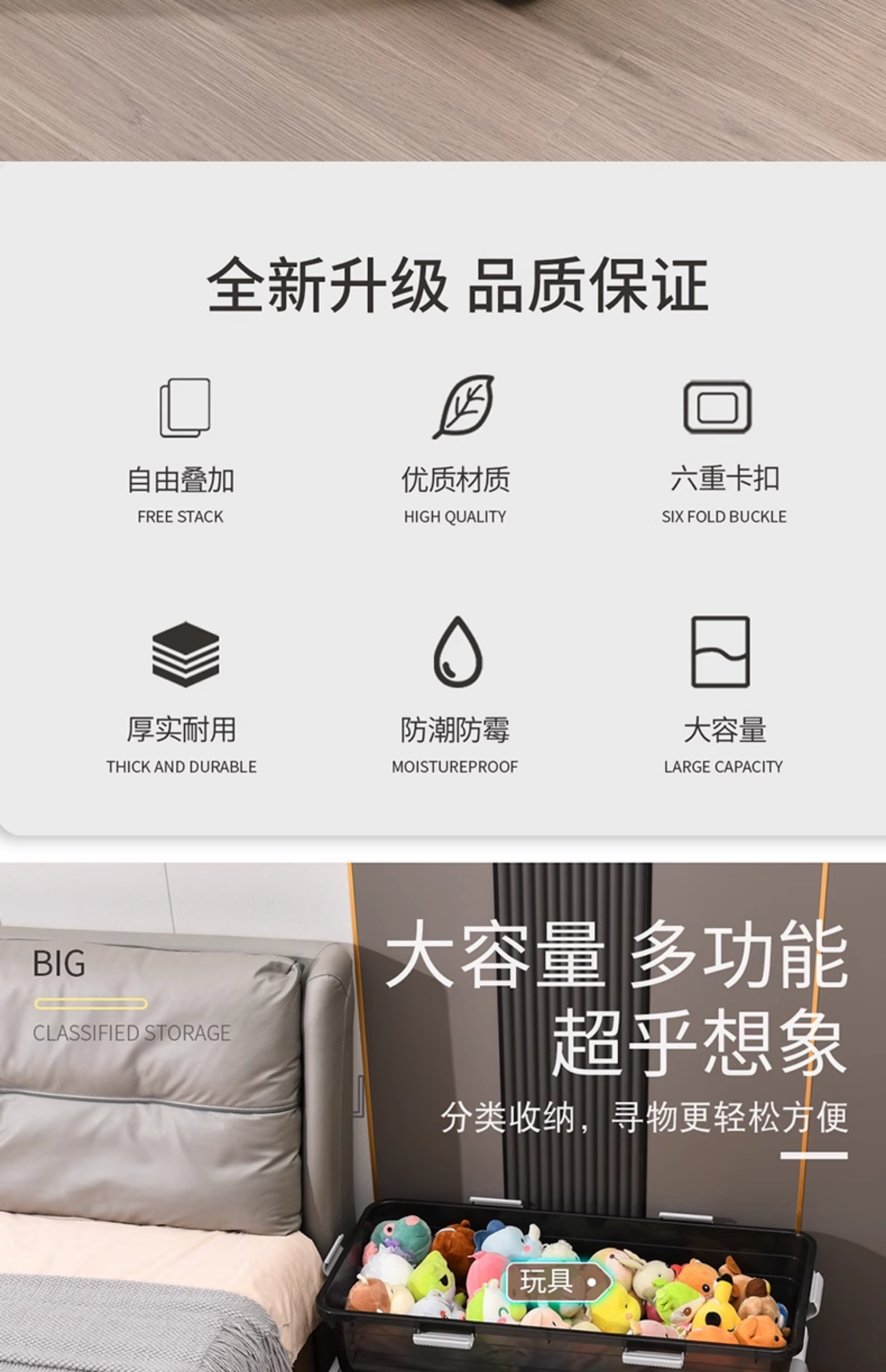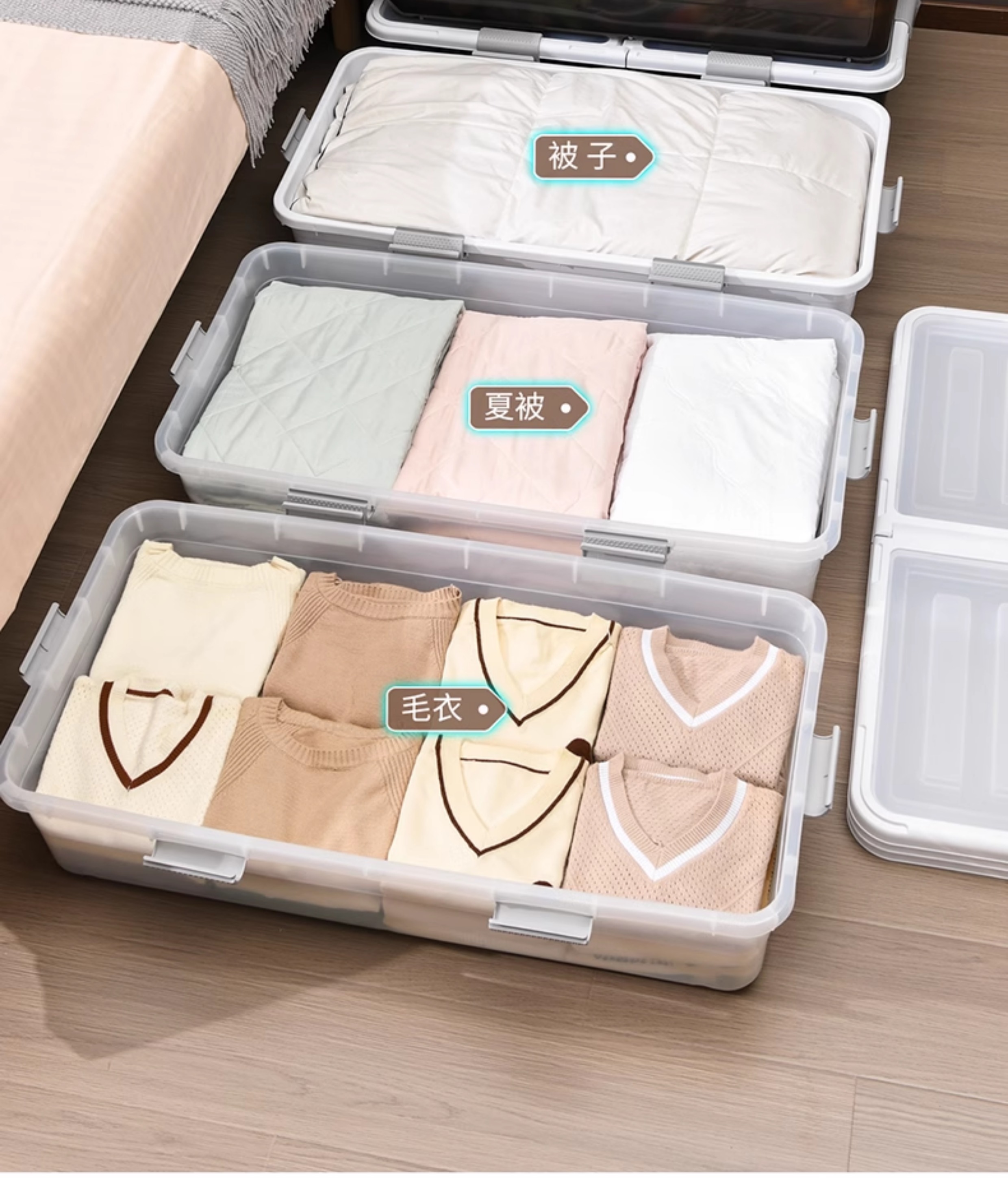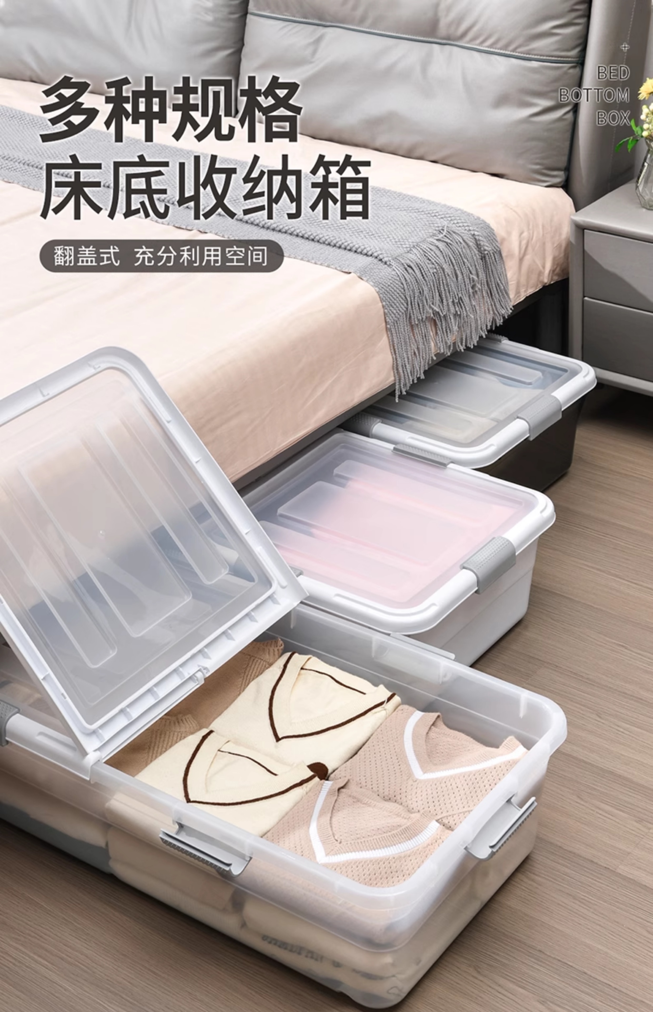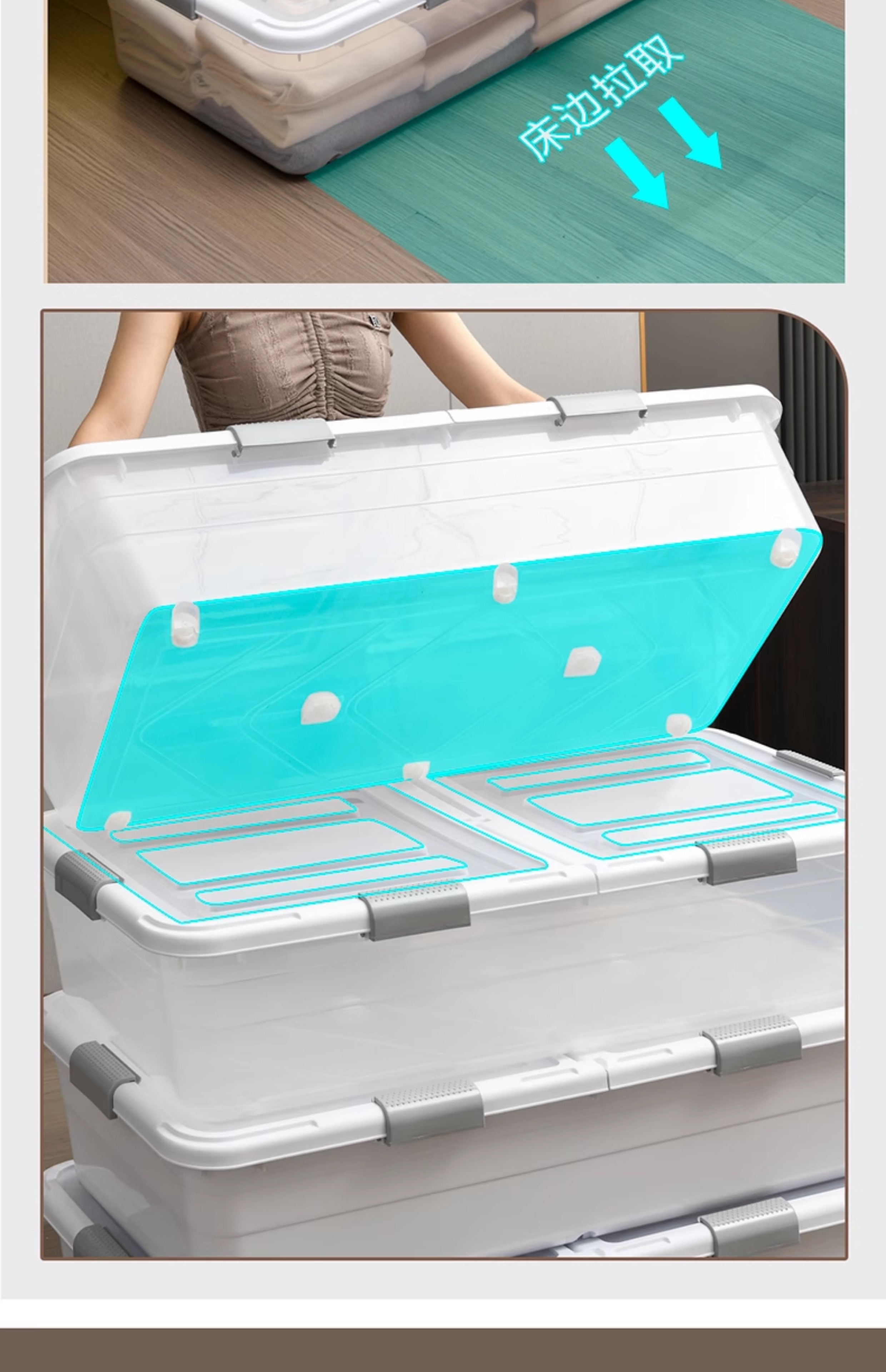 床底收纳箱抽屉式塑料滑轮扁平床下收纳神器家用大容量透明整理箱
