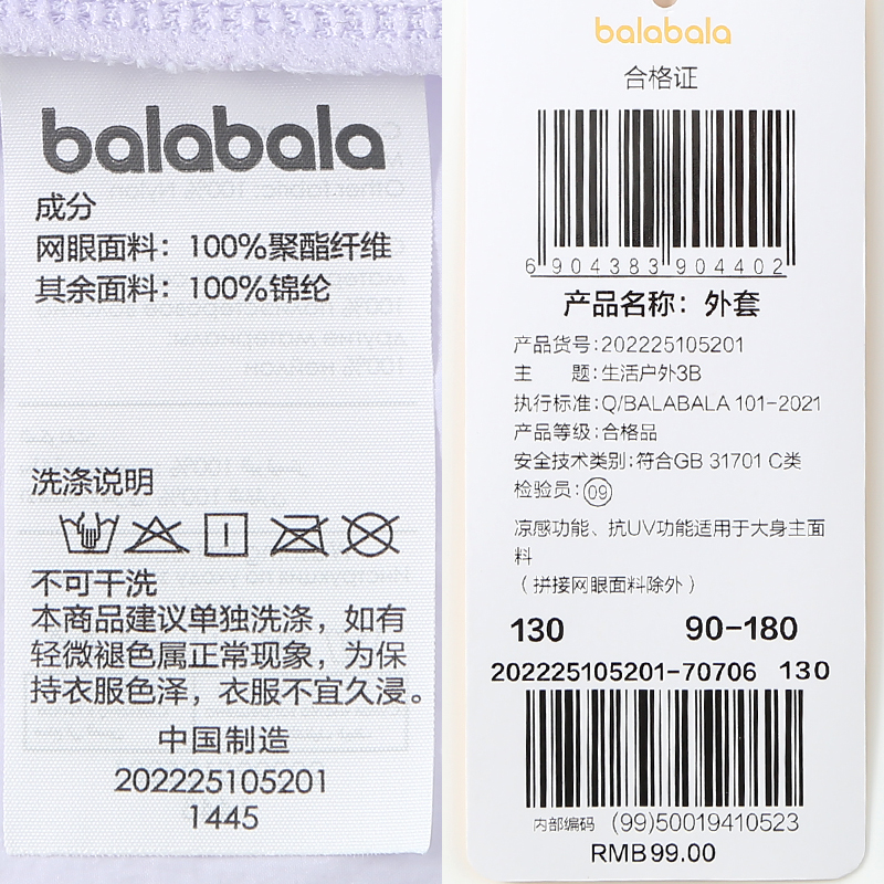 巴拉巴拉男女童防晒衣儿童凉感外套小中大童2025夏装202225105201