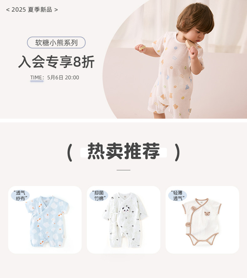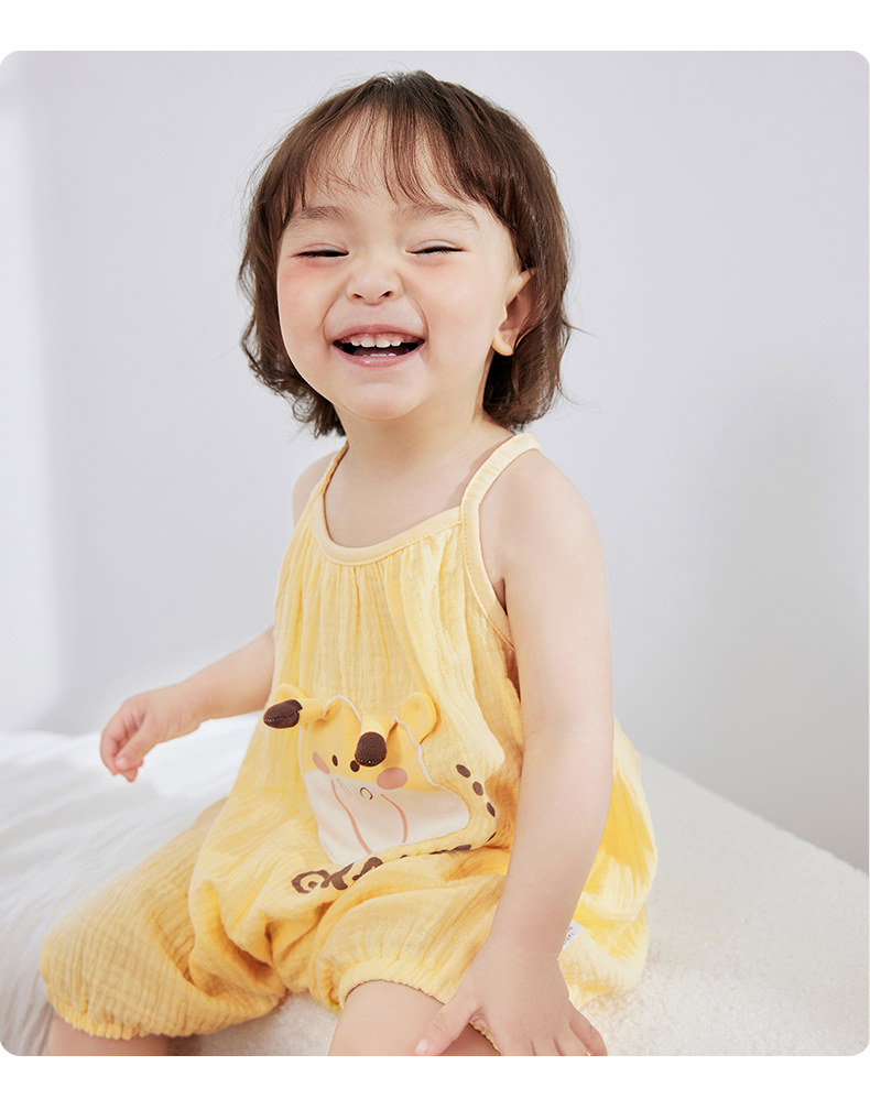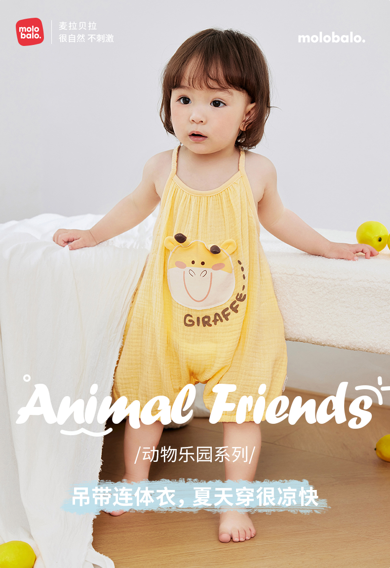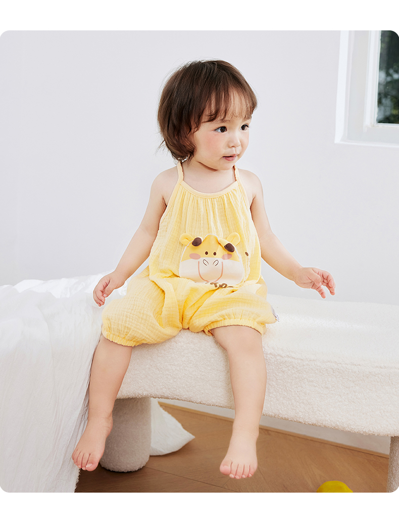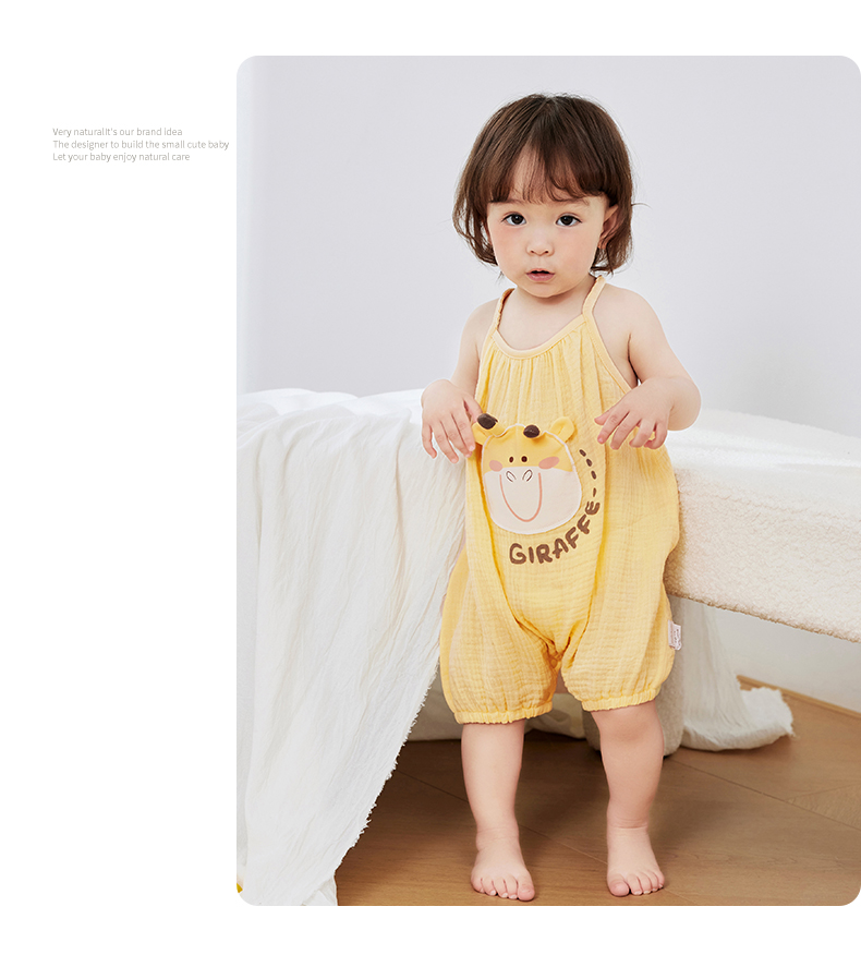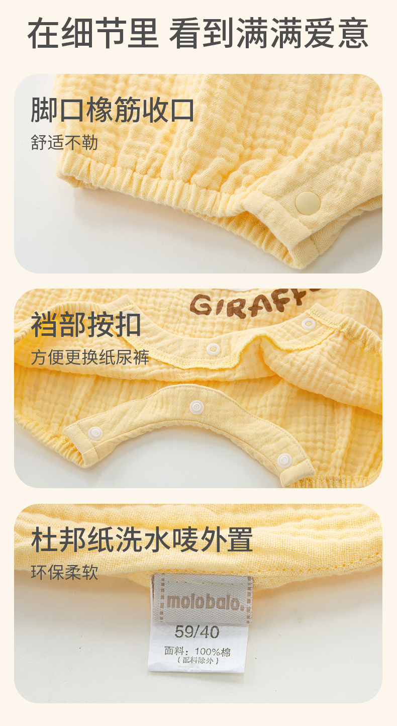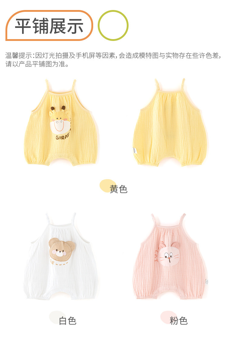 麦拉贝拉婴儿吊带连体衣纱布纯棉薄款透气夏季男女宝宝哈衣爬服装