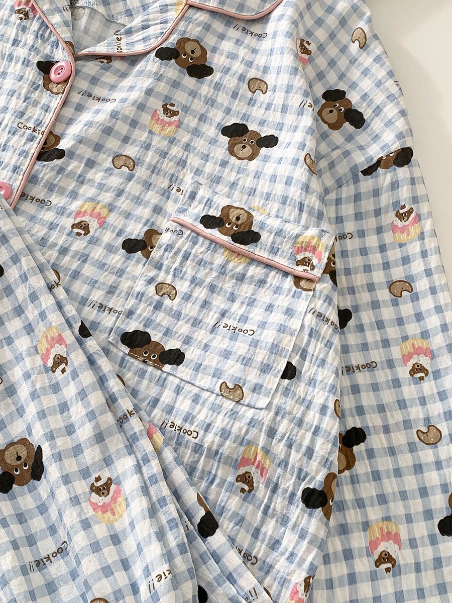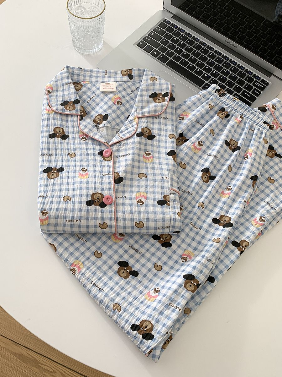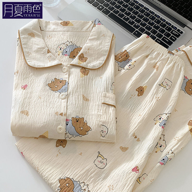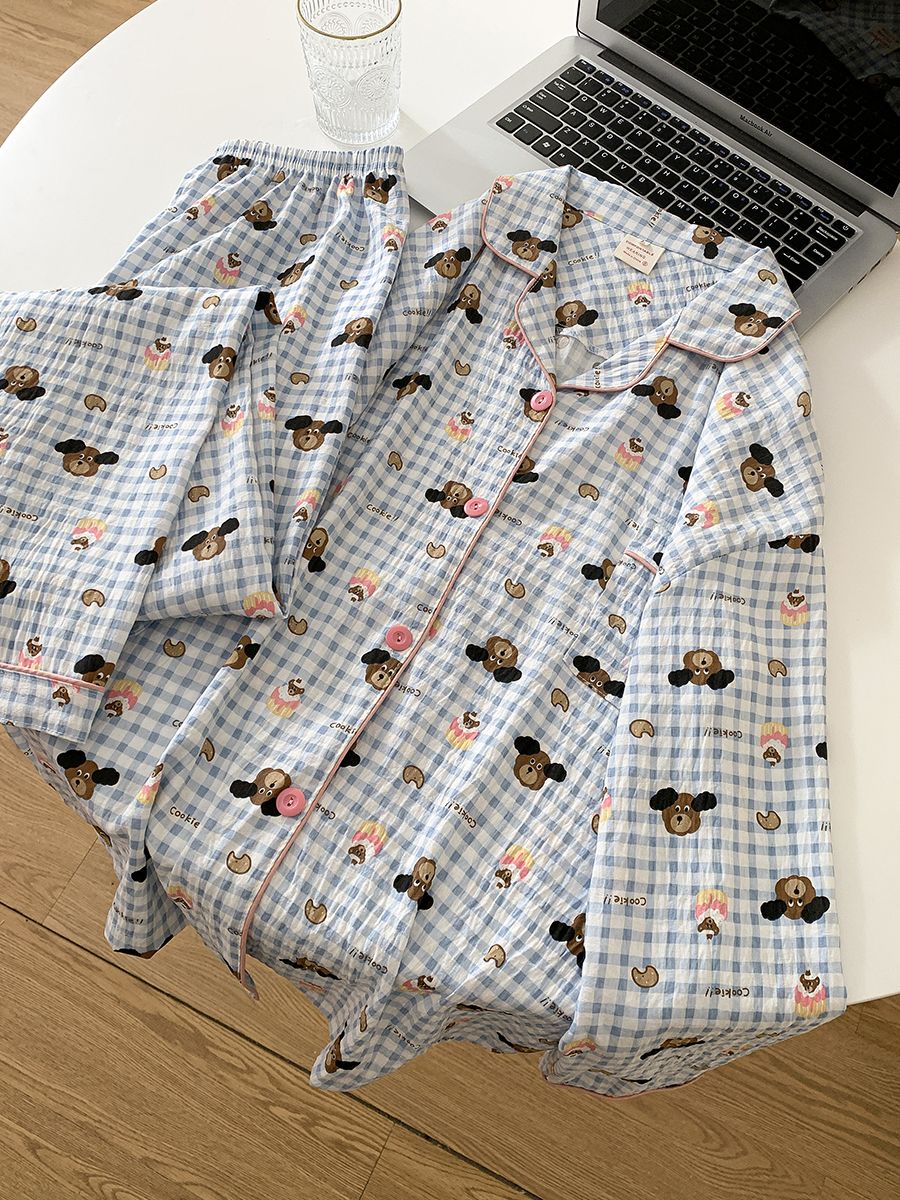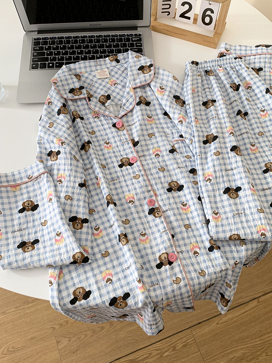 云朵棉睡衣女款春秋夏季长袖长裤甜美可爱少女棕色小狗家居服套装