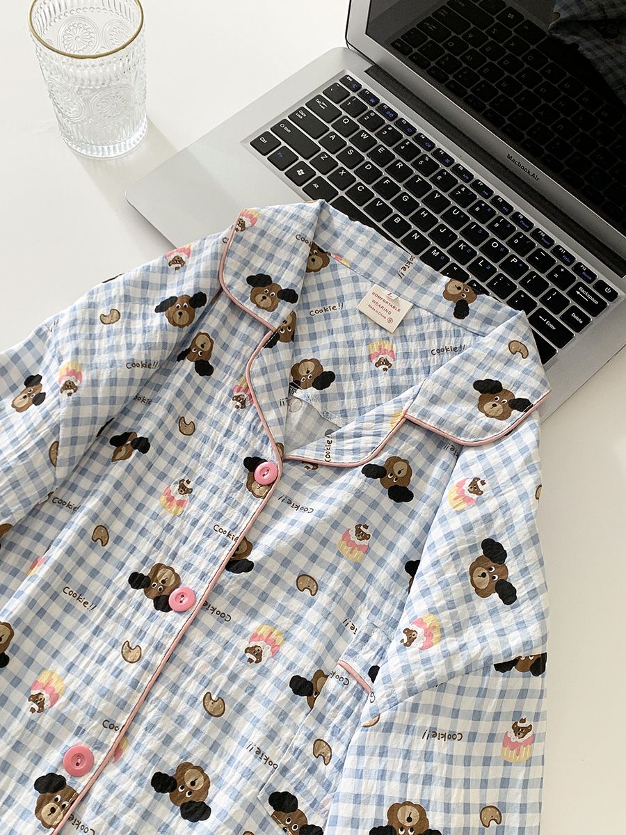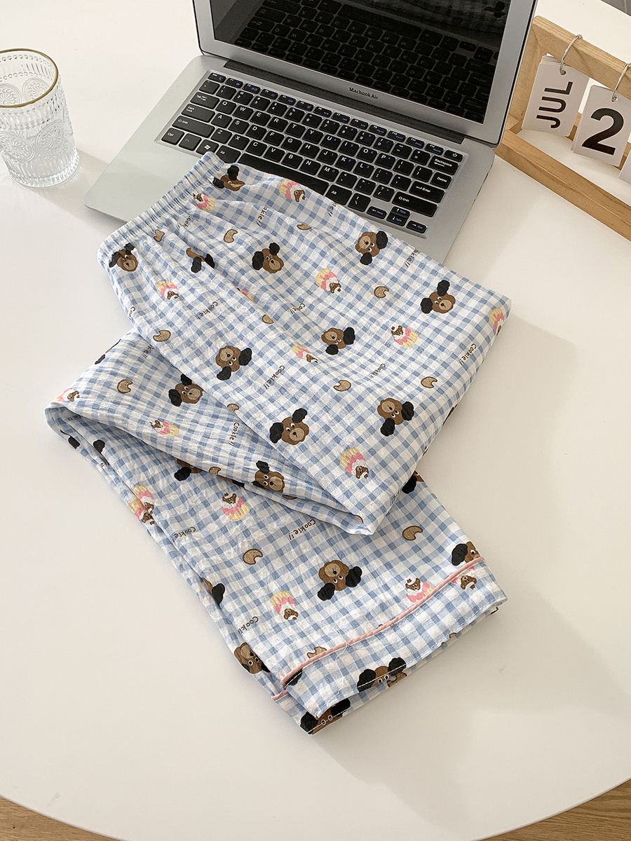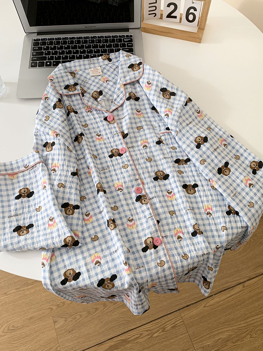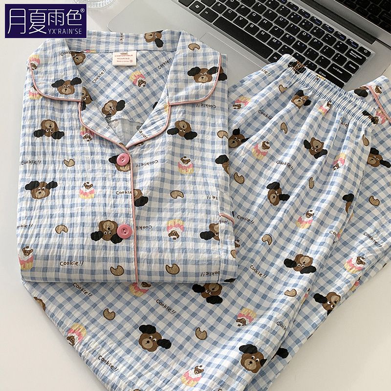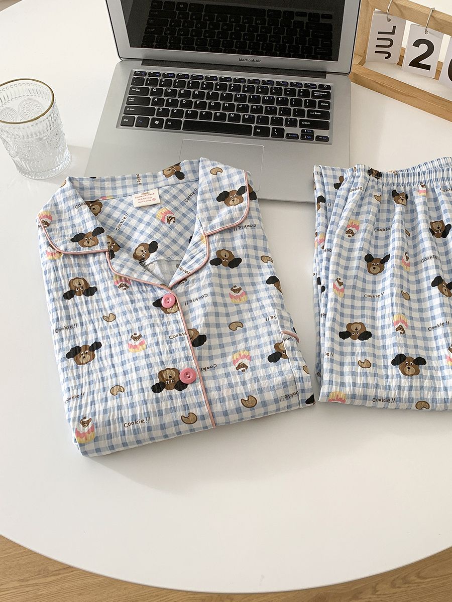 云朵棉睡衣女款春秋夏季长袖长裤甜美可爱少女棕色小狗家居服套装
