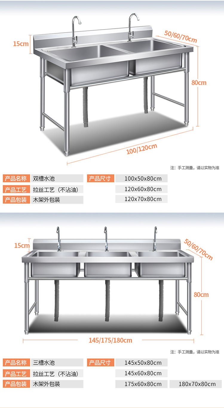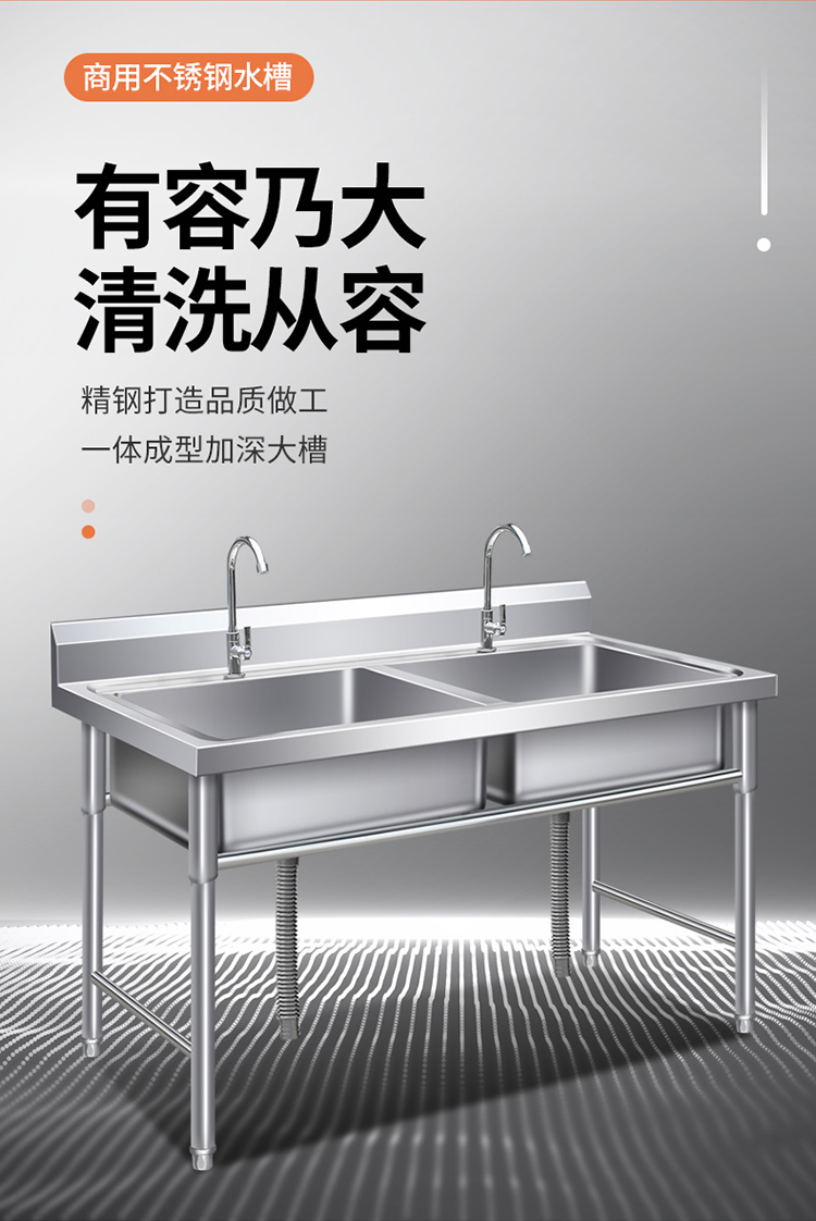 商用不锈钢水槽双槽单槽三槽洗菜盆厨房洗碗池饭店水池消毒洗手池