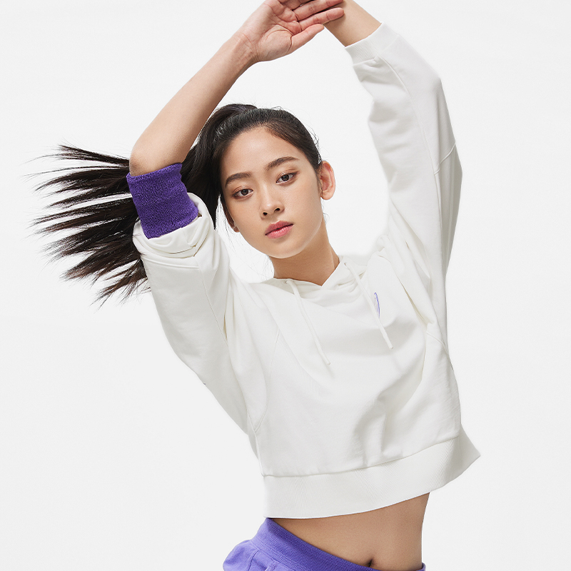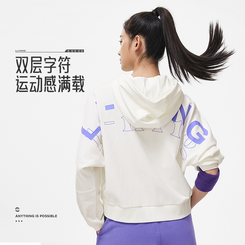 李宁女士春季健身系列柔软亲肤舒适透气套头长袖连帽卫衣AWDT628