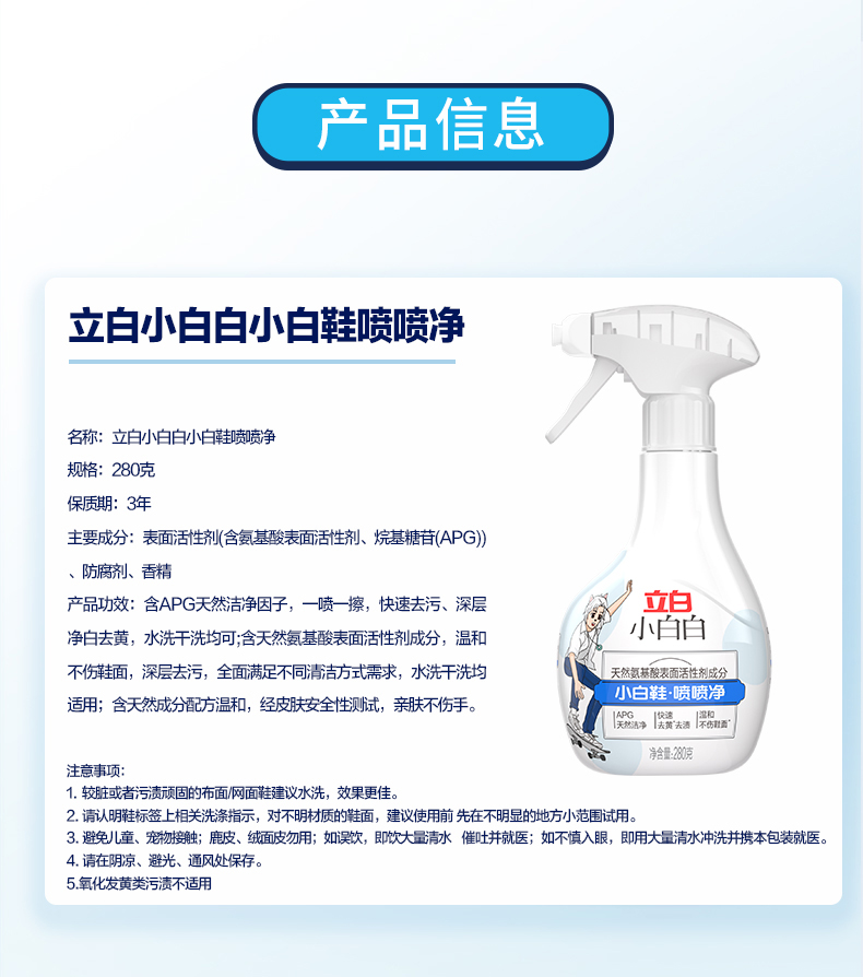 立白小白白小白鞋球鞋网面快速去污去黄免洗喷喷净刷鞋清洁干洗剂