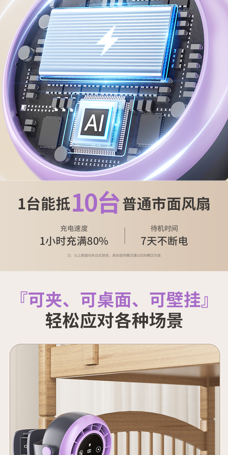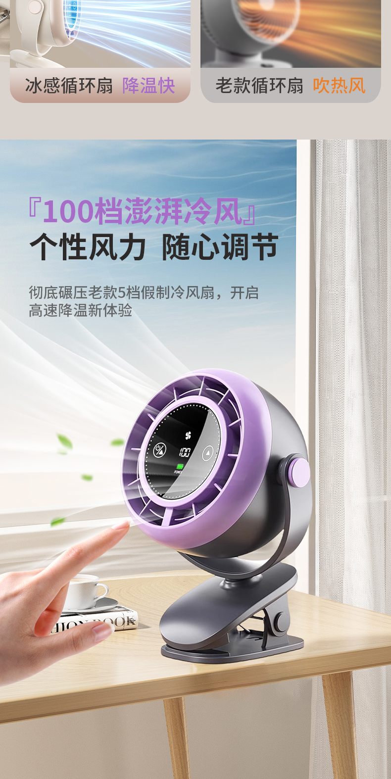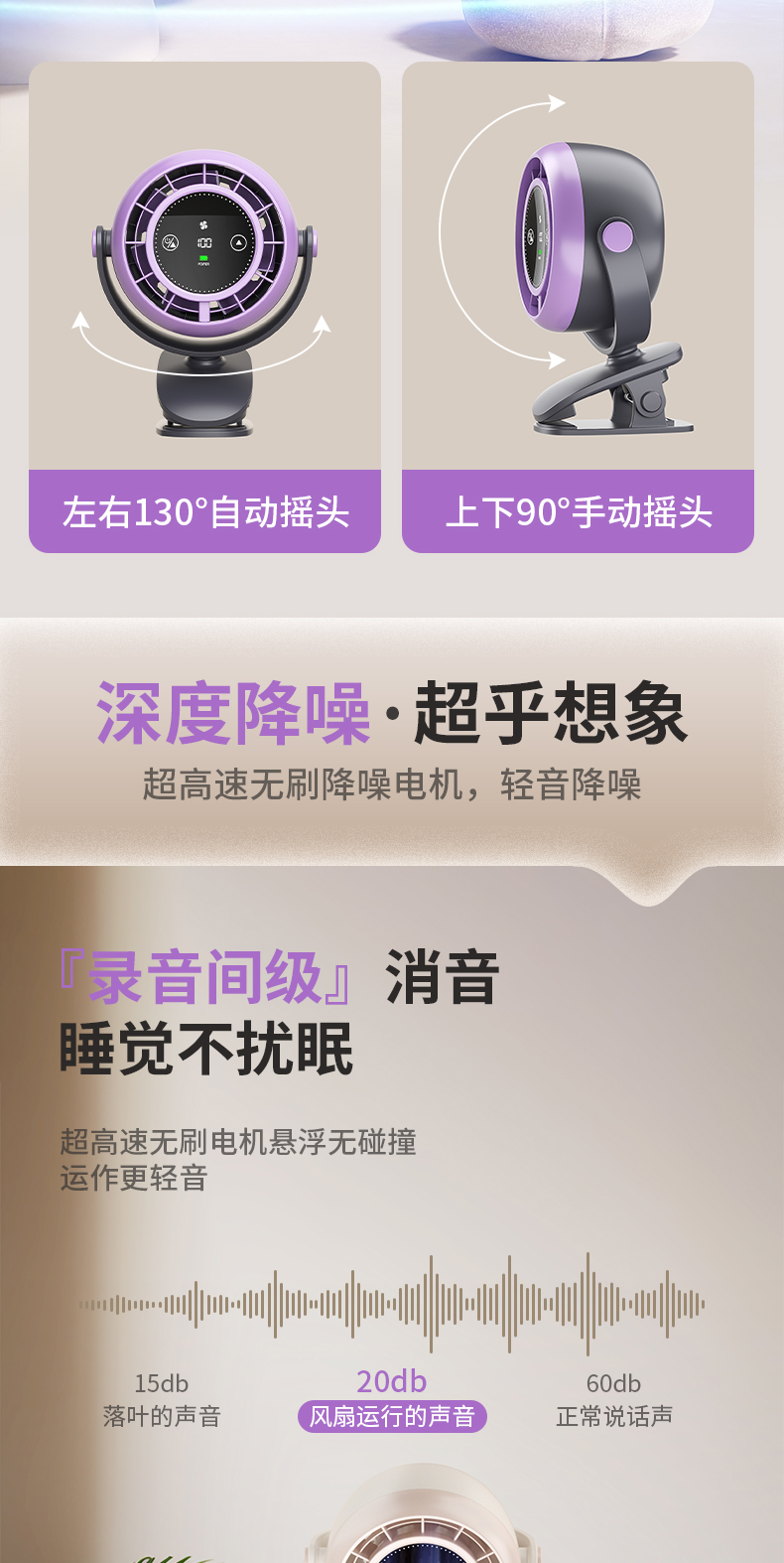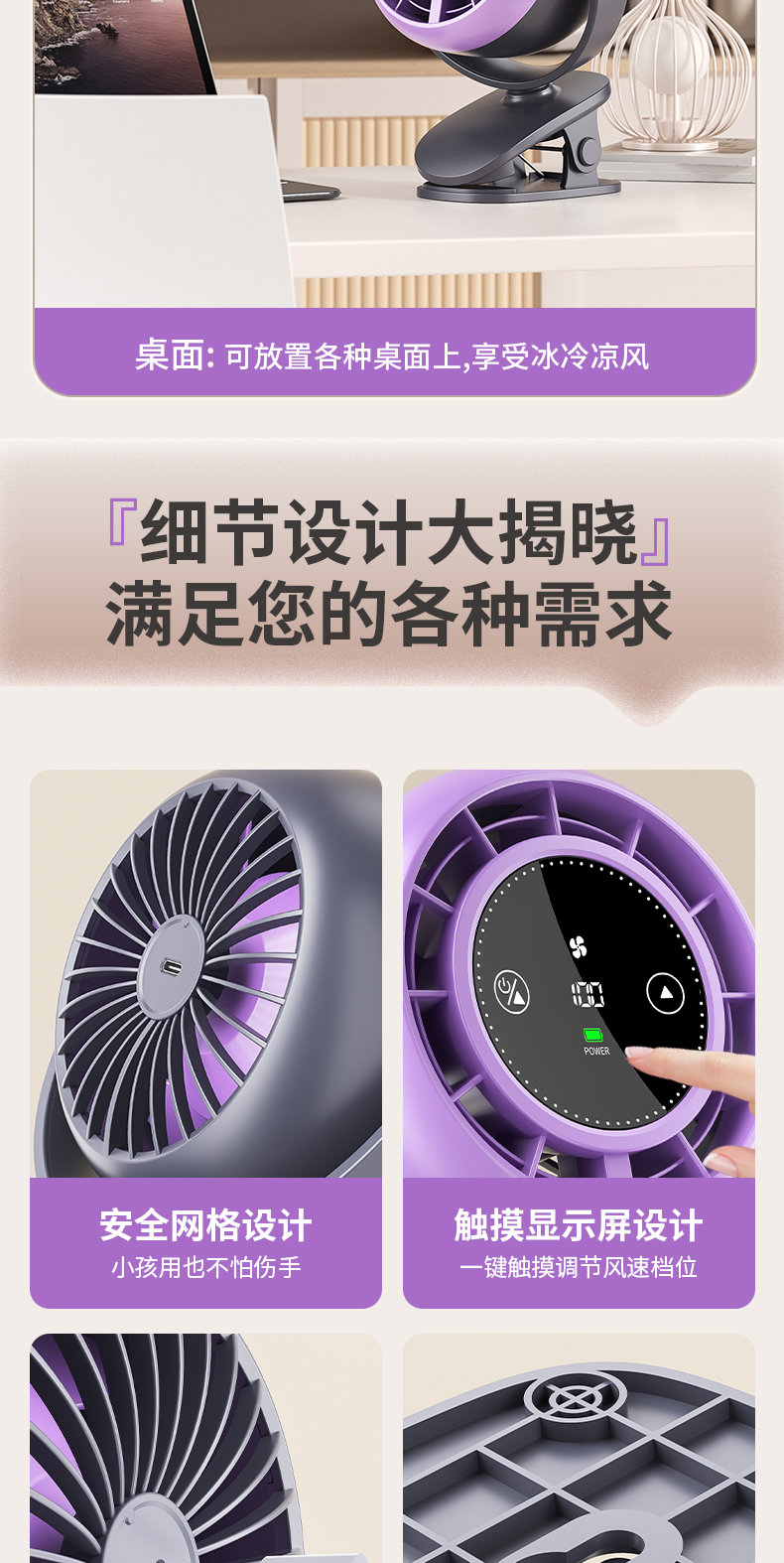 7叶夹式小风扇小型桌面电风扇宿舍静音办公室桌上2025年新款可夹子降温神器充电制冷床上usb迷你学生上课强力