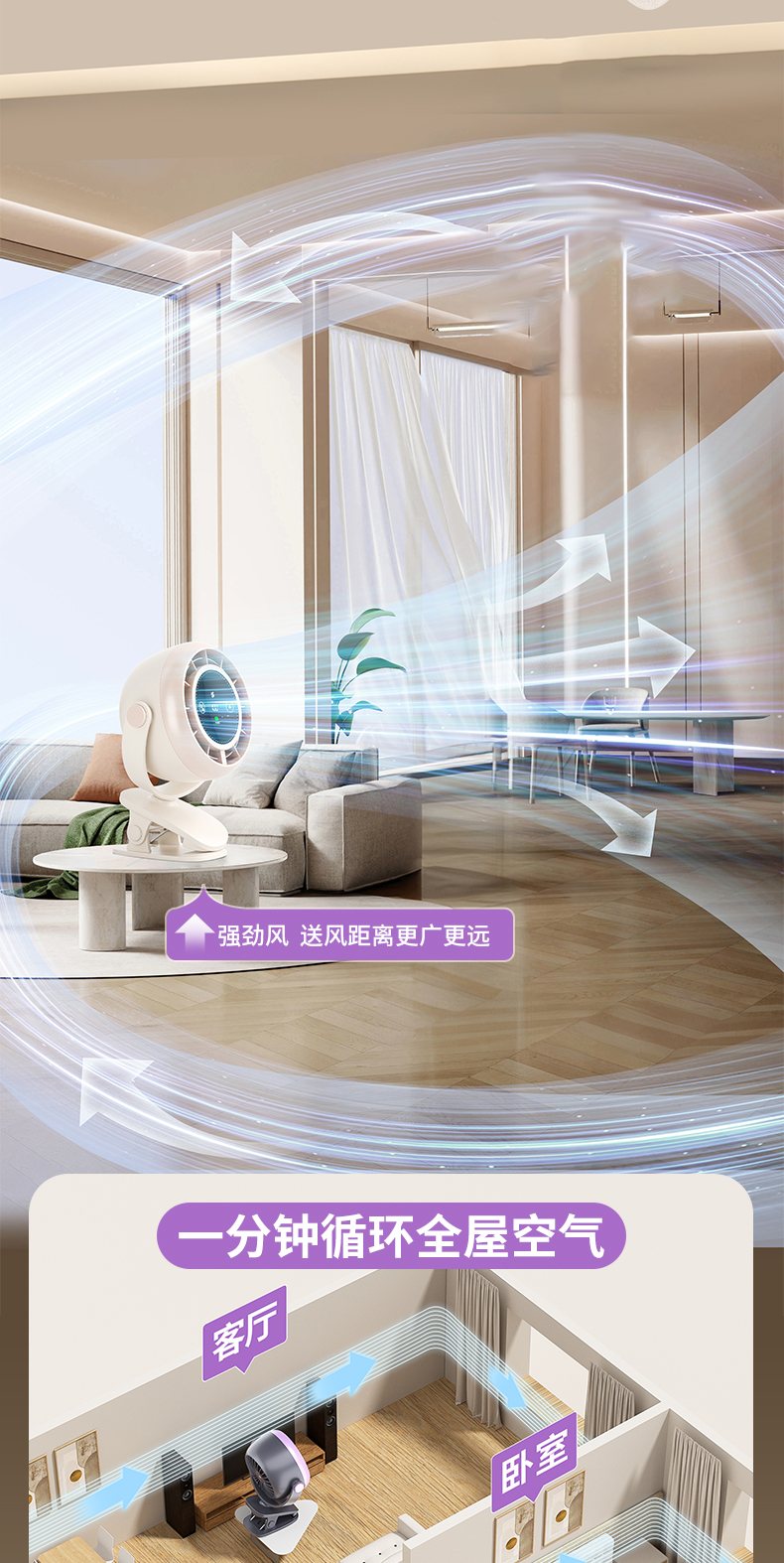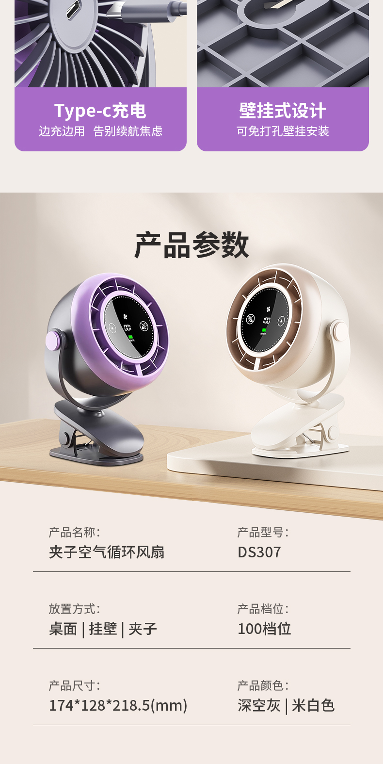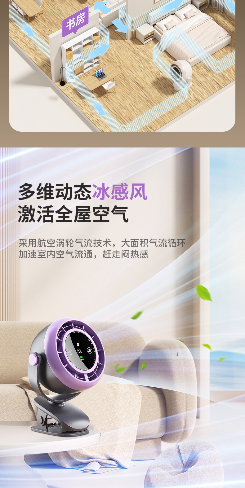 7叶夹式小风扇小型桌面电风扇宿舍静音办公室桌上2025年新款可夹子降温神器充电制冷床上usb迷你学生上课强力