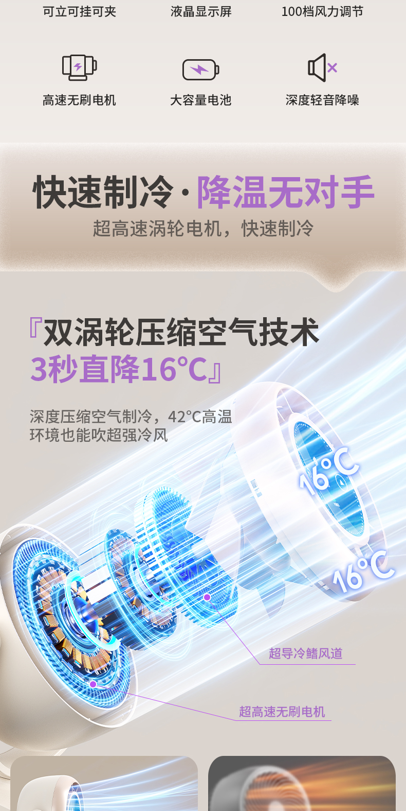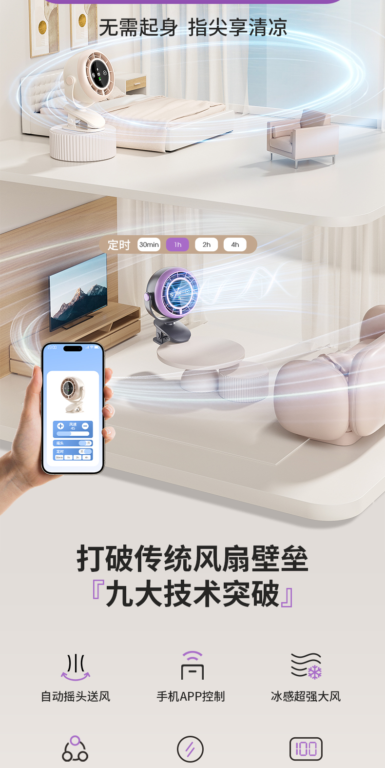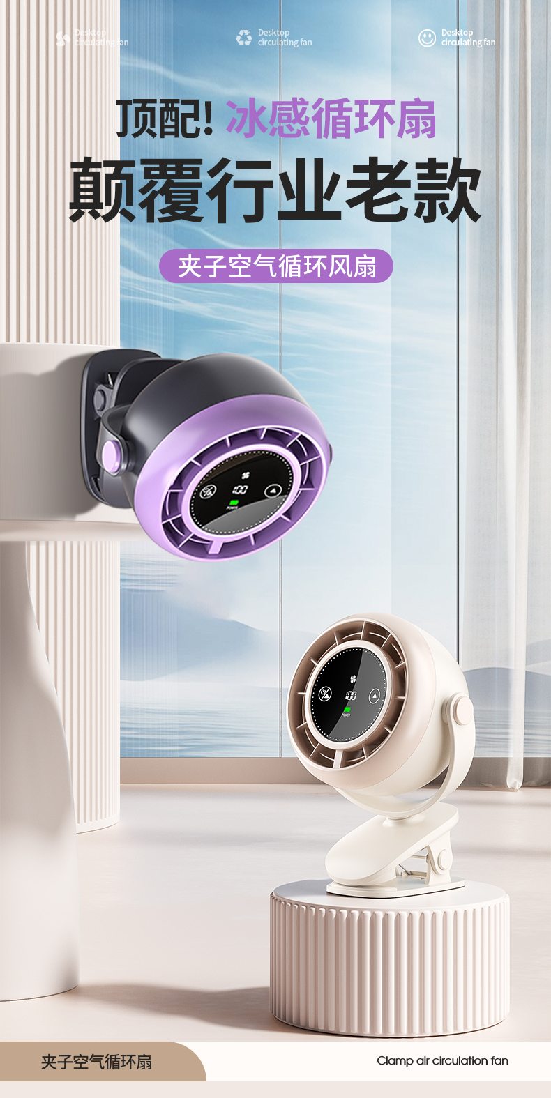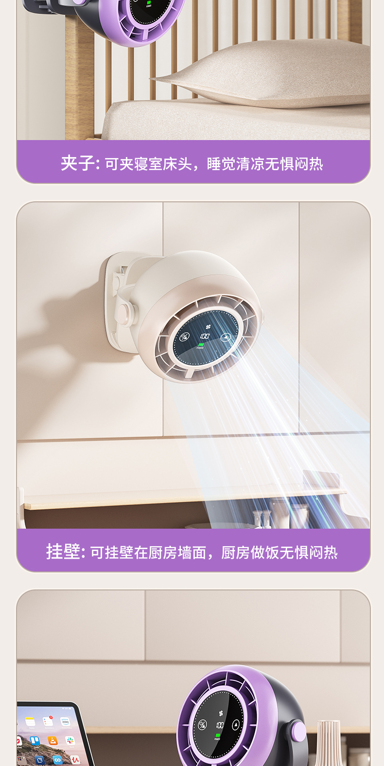 7叶夹式小风扇小型桌面电风扇宿舍静音办公室桌上2025年新款可夹子降温神器充电制冷床上usb迷你学生上课强力