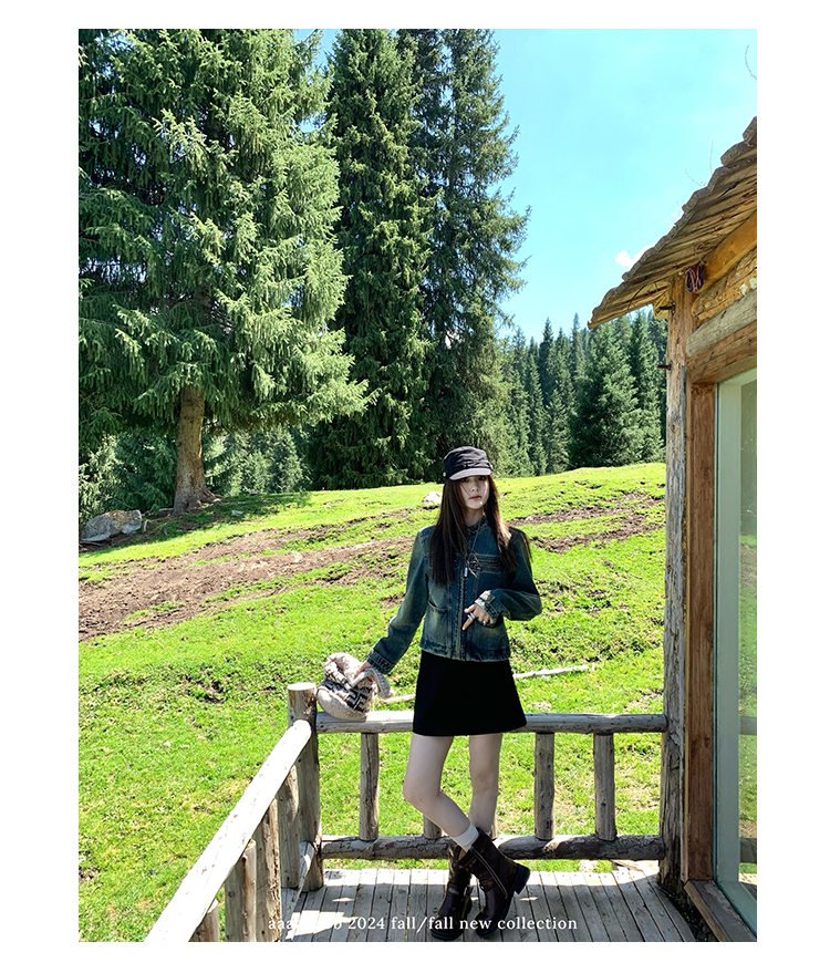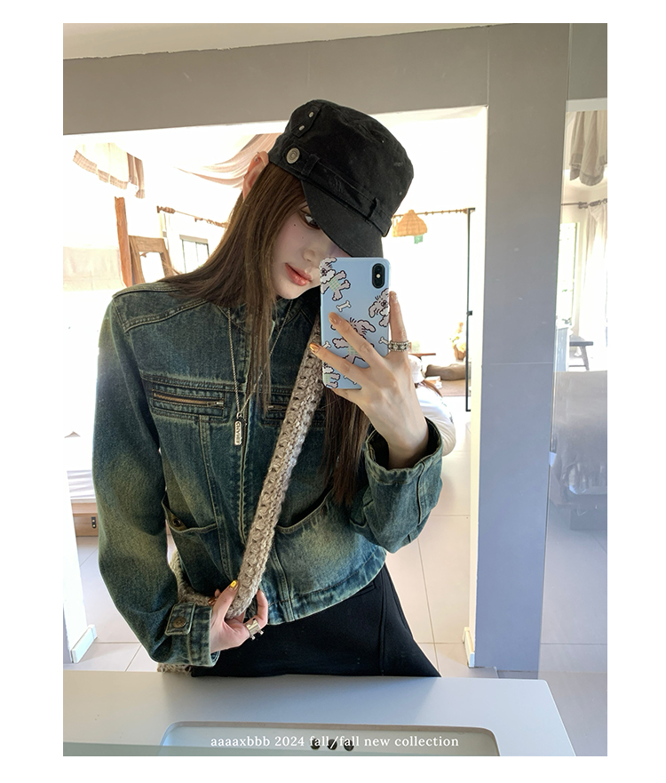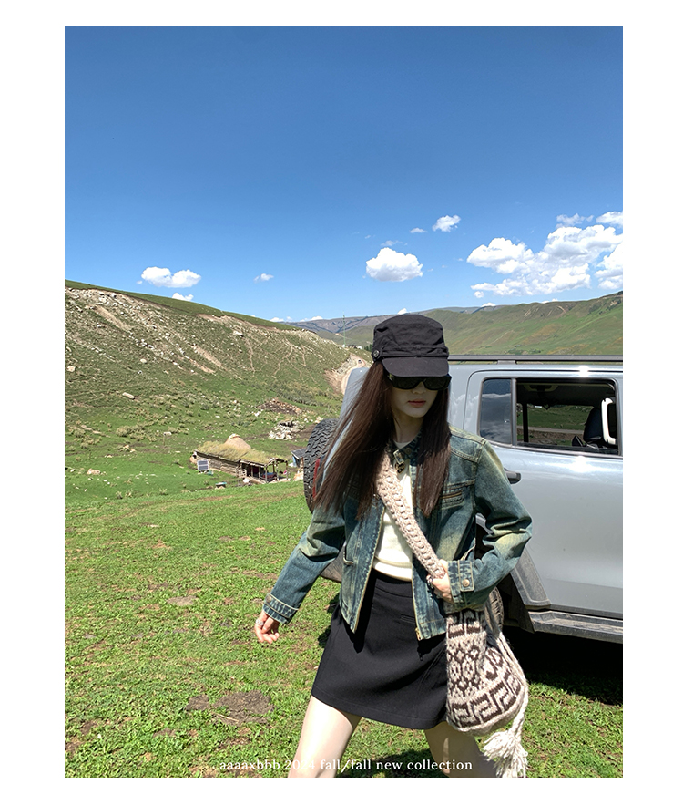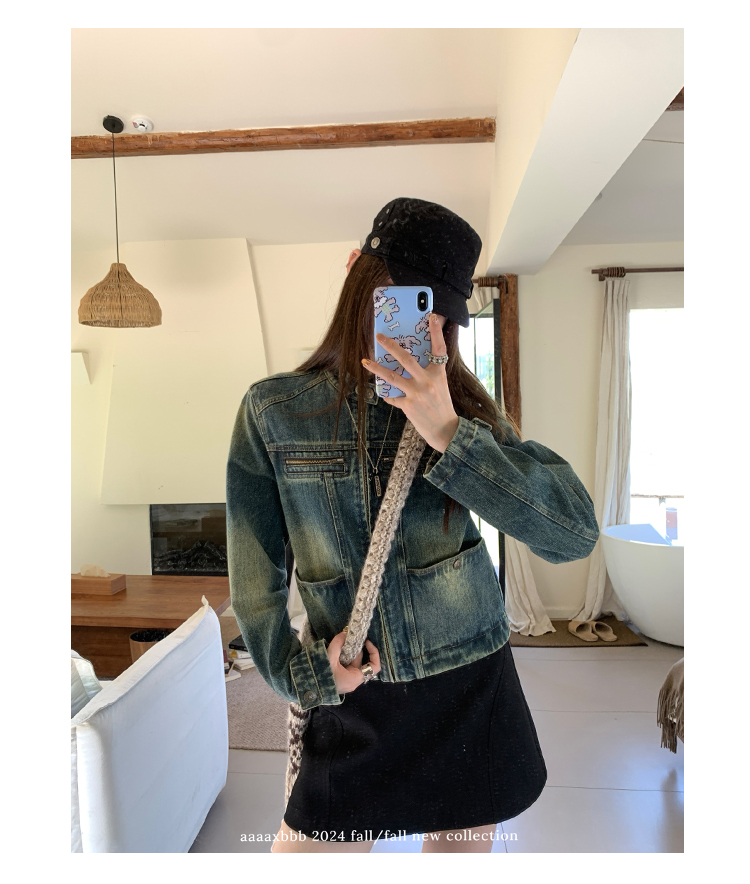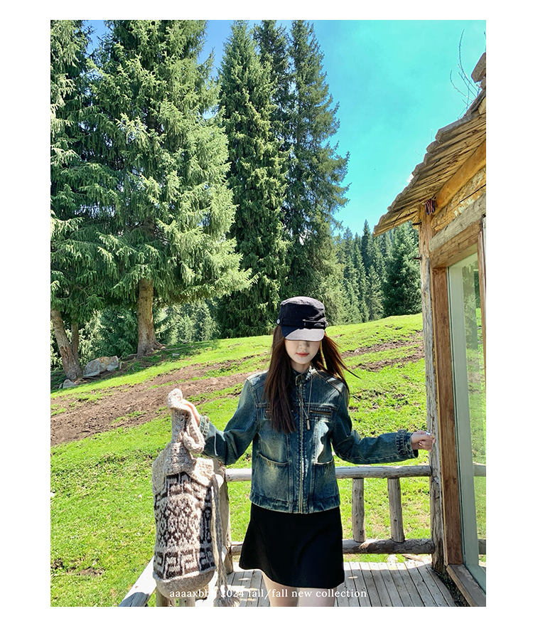 aaaaxbbb 阿尔维克 拉链牛仔外套水洗复古分割设计时髦短上衣春秋
