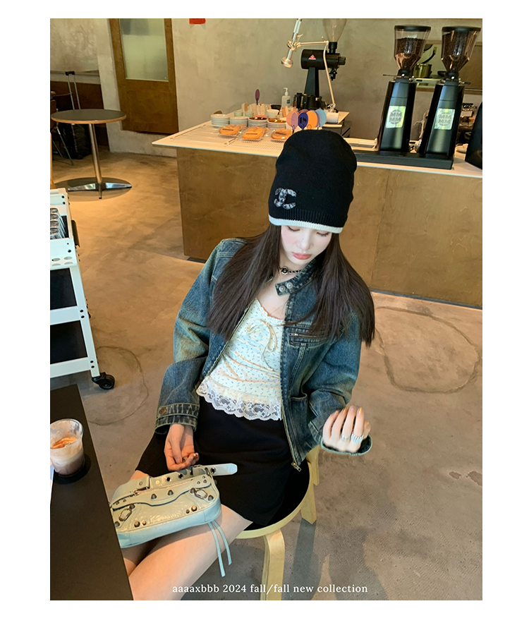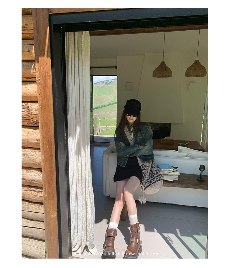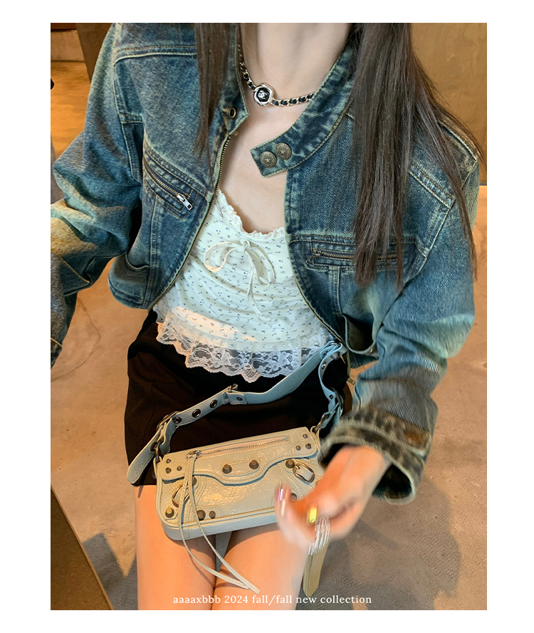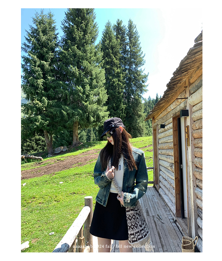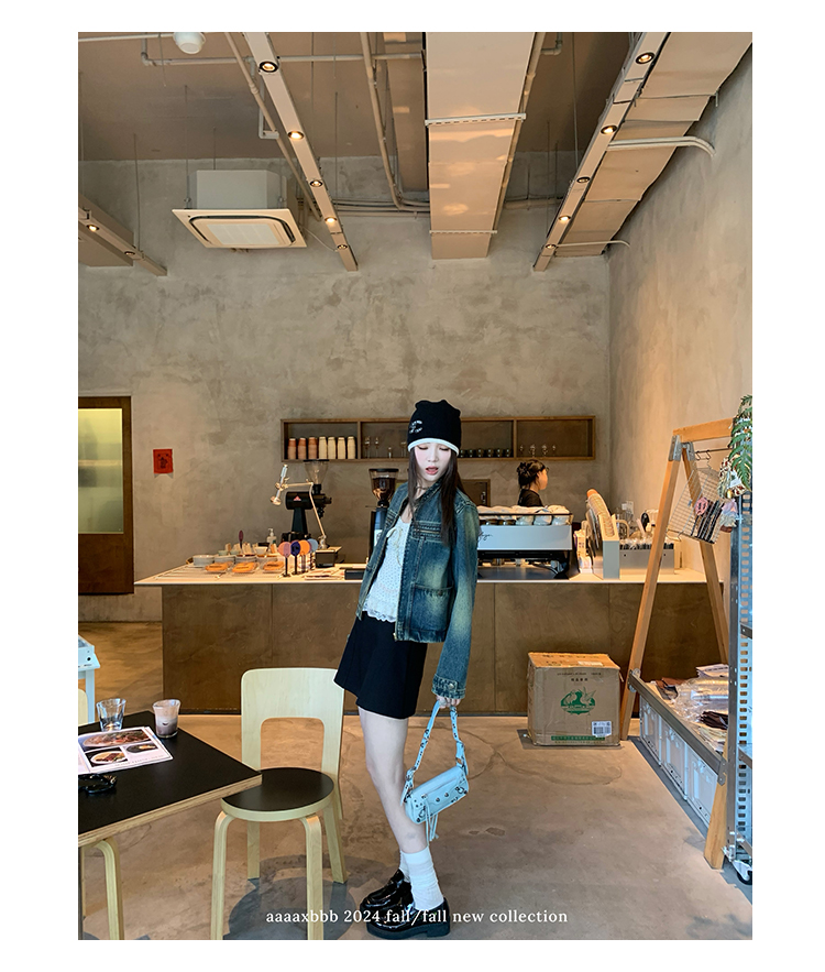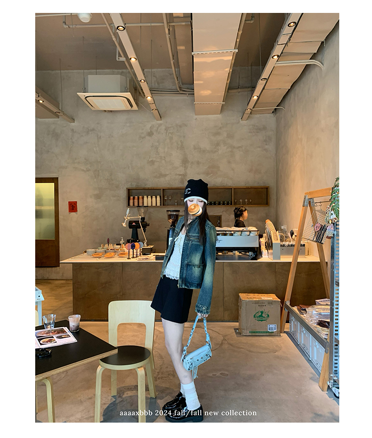 aaaaxbbb 阿尔维克 拉链牛仔外套水洗复古分割设计时髦短上衣春秋