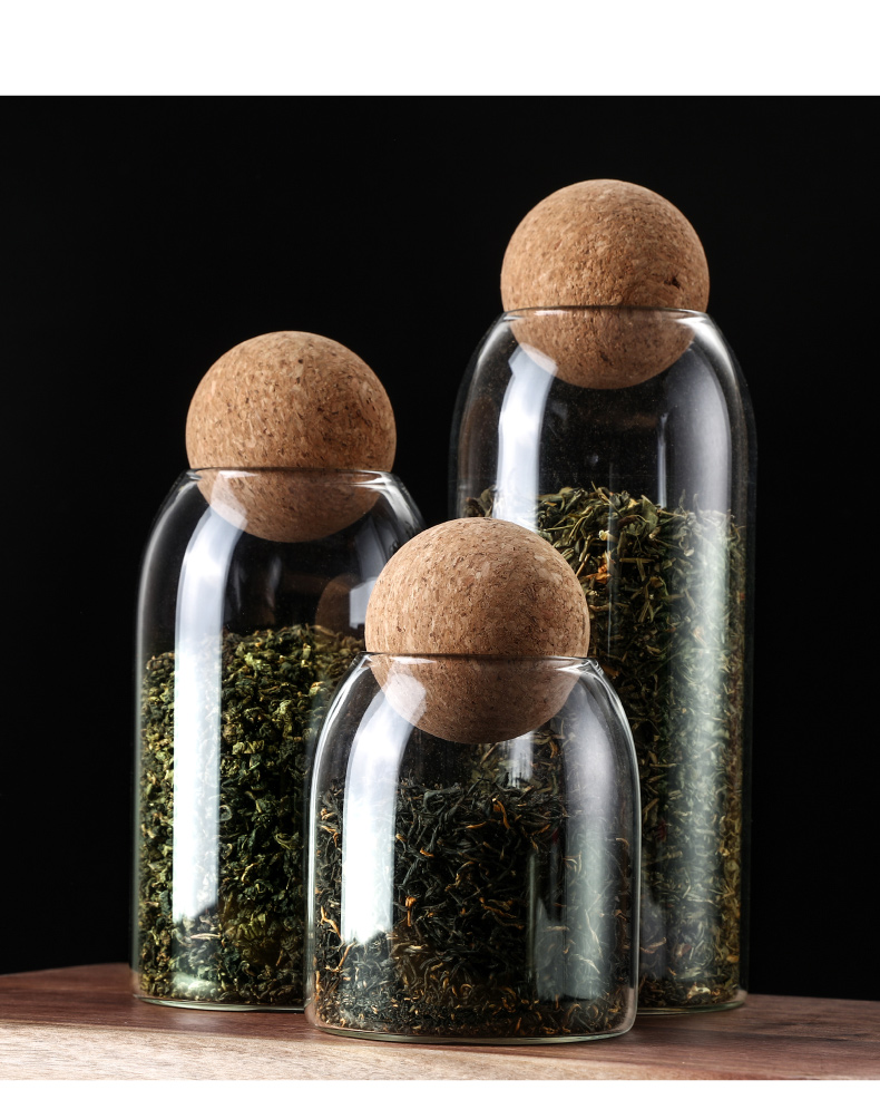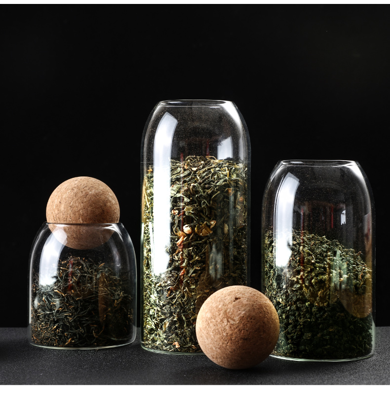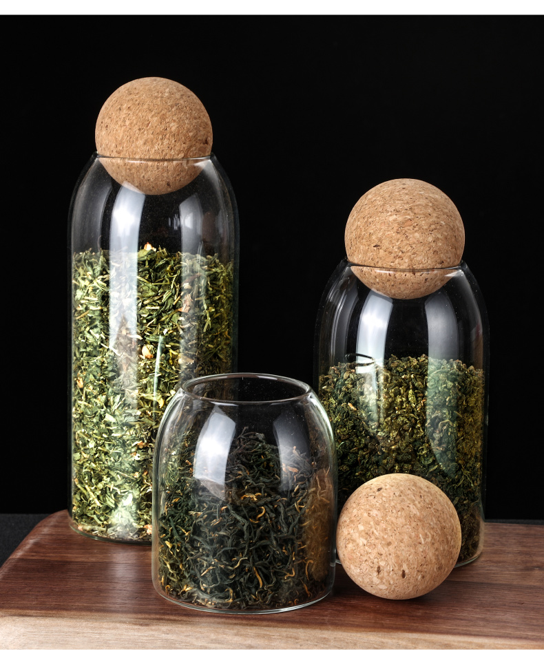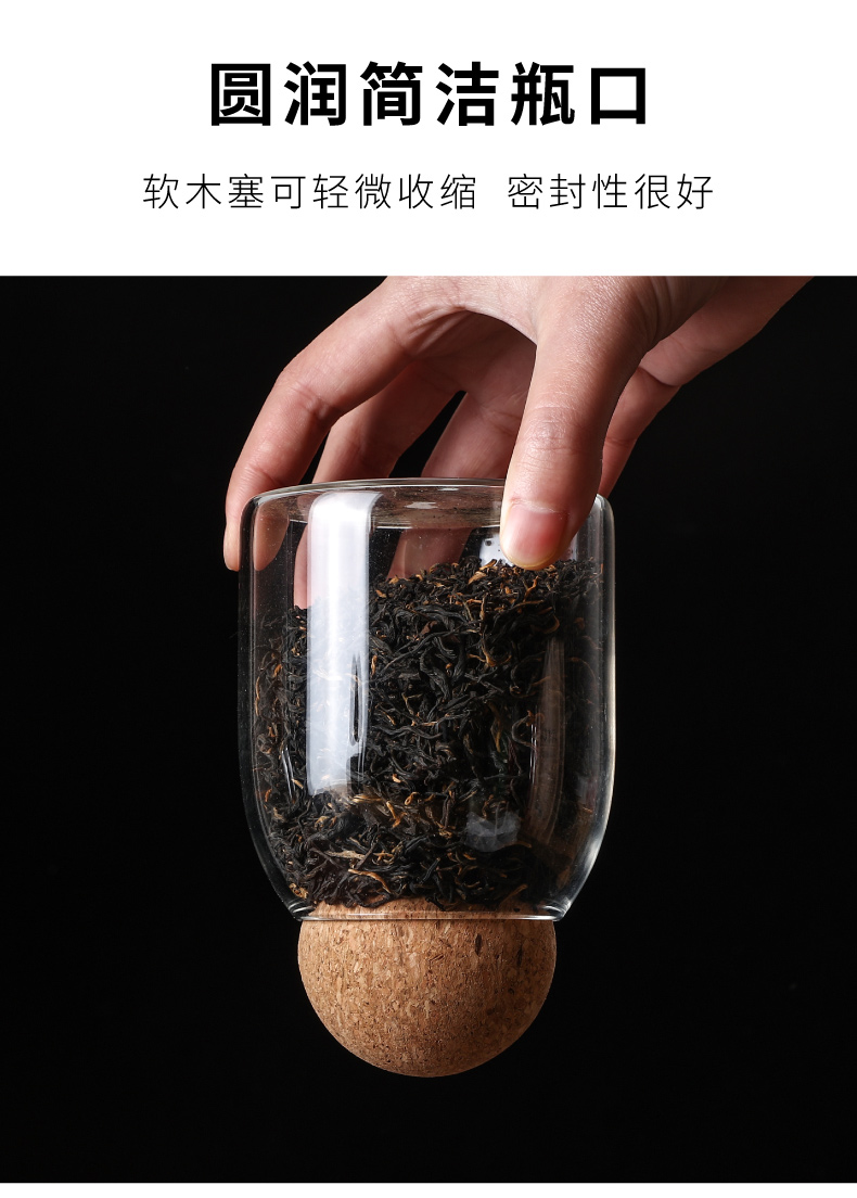 茶叶罐家用密封小茶罐收纳球塞瓶玻璃瓶空储茶罐圆形软木塞茶叶桶
