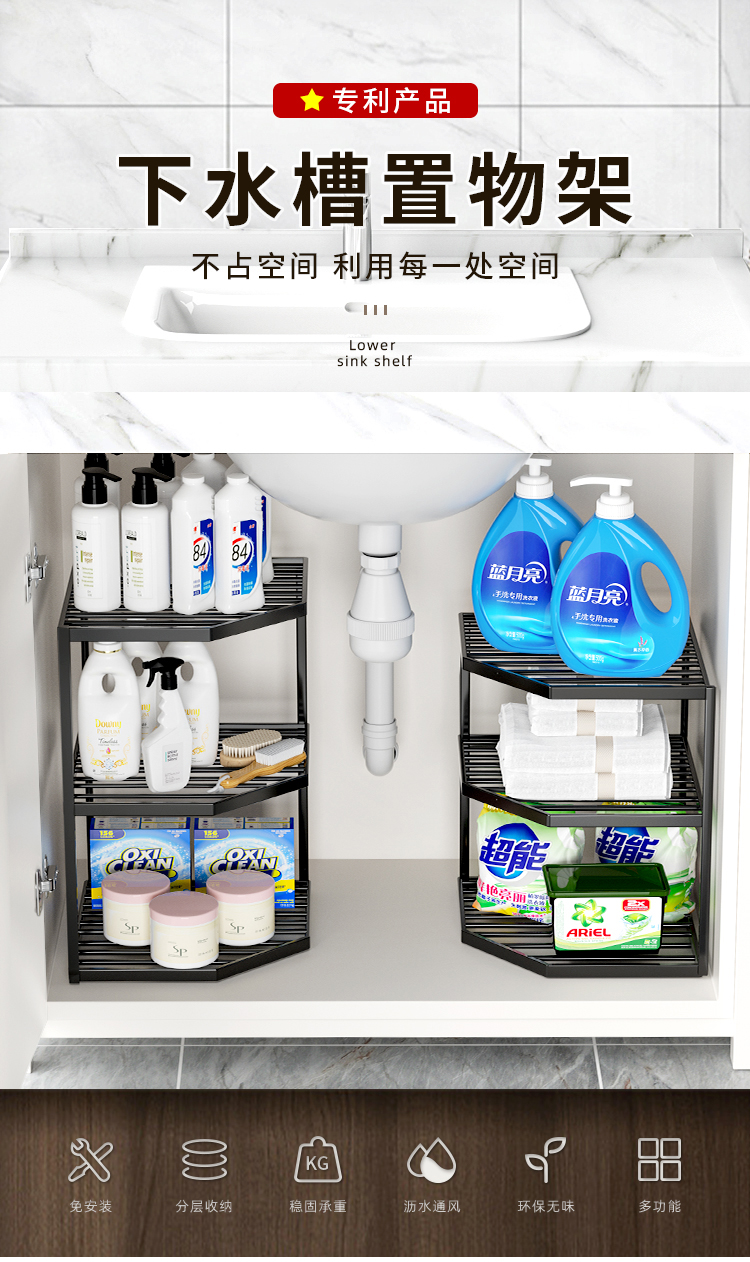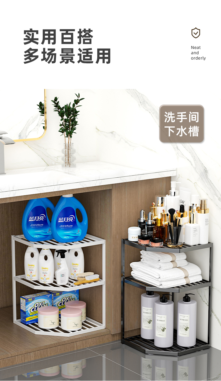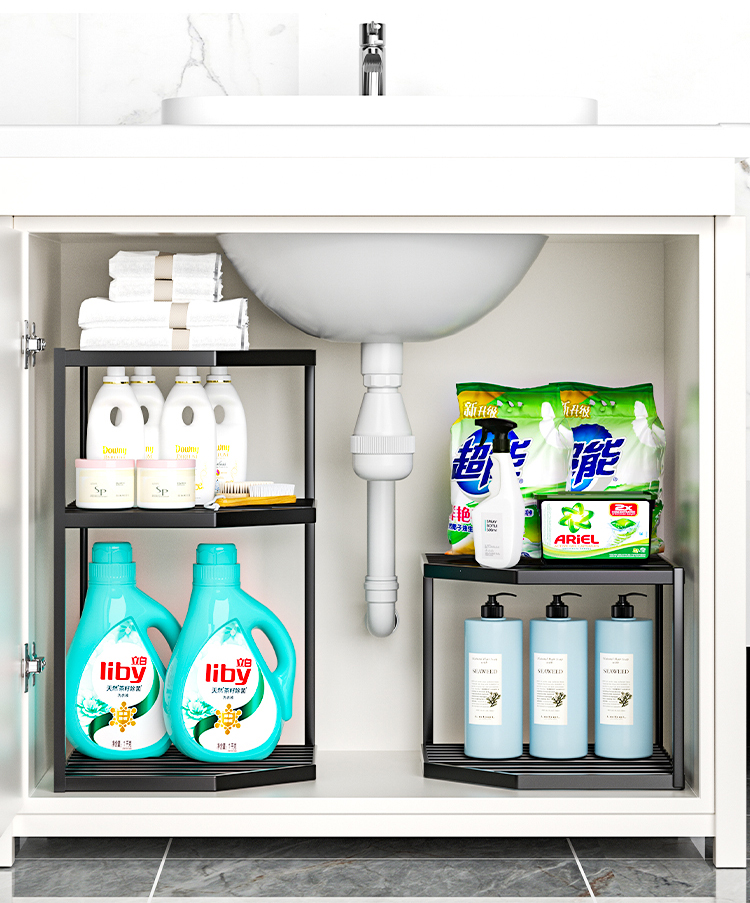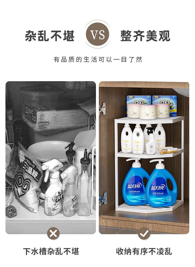 橱柜浴室伸缩洗手台子收纳洗漱整理架分层下内卫生间下水槽置物架