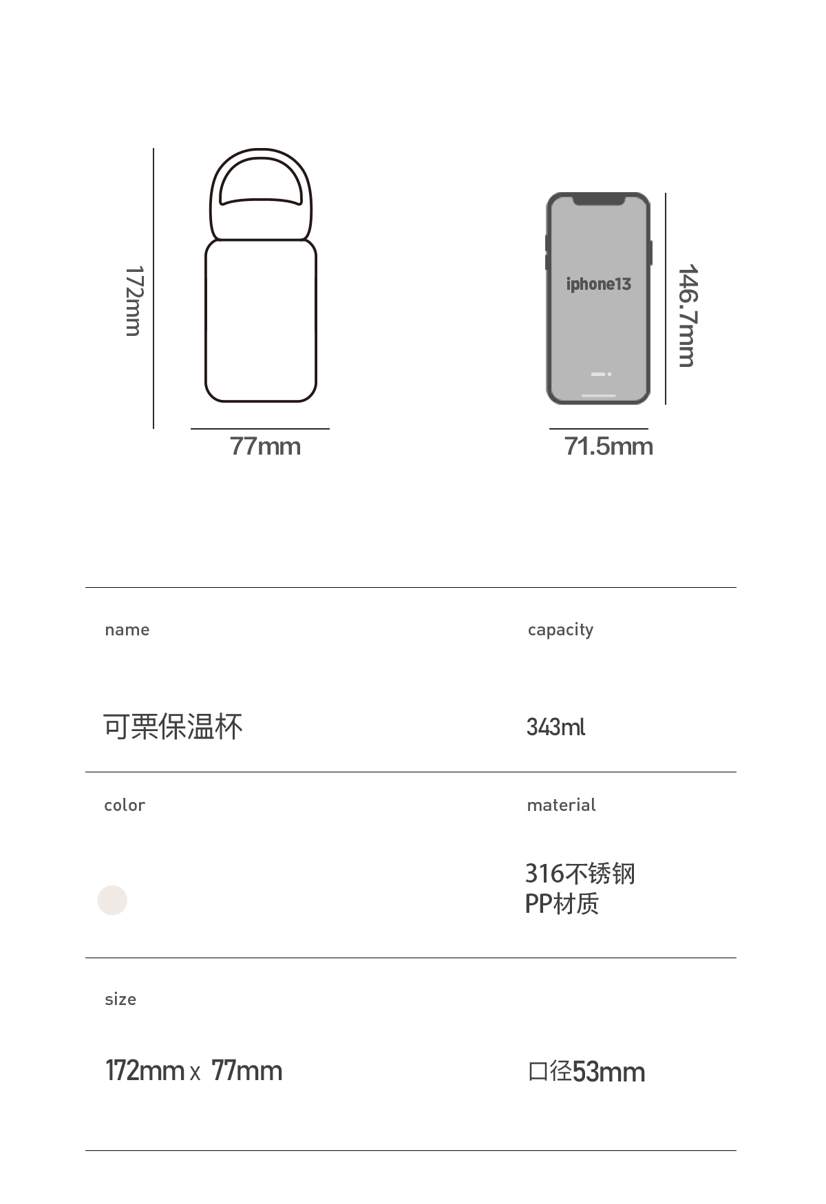 造物集316不锈钢保温杯女生高颜值水杯儿童学生上学礼物随手杯子