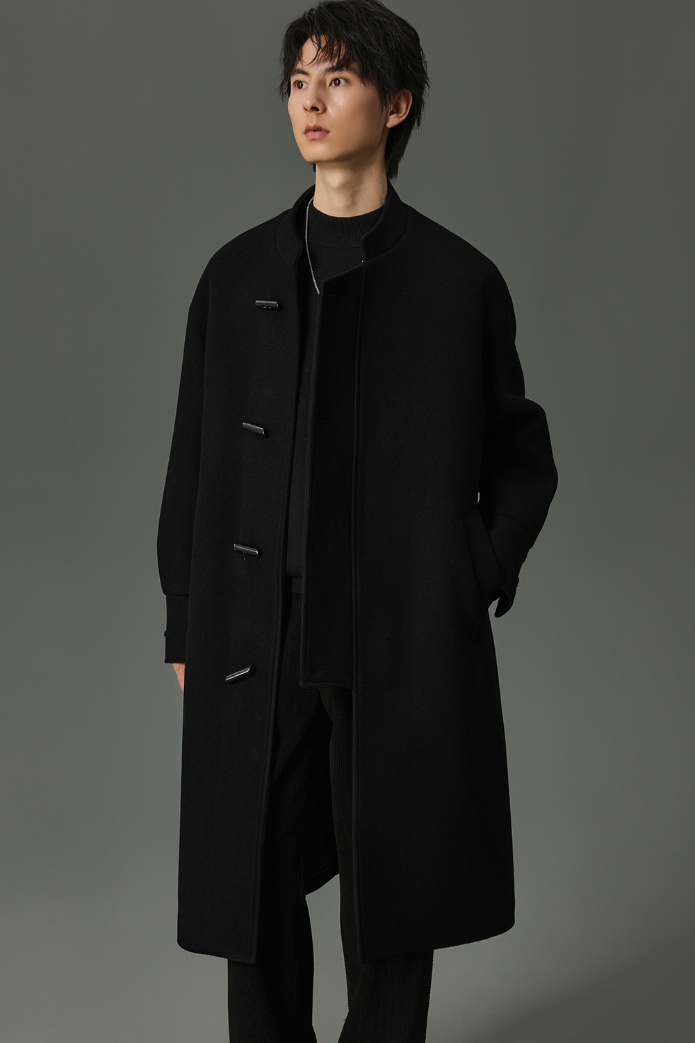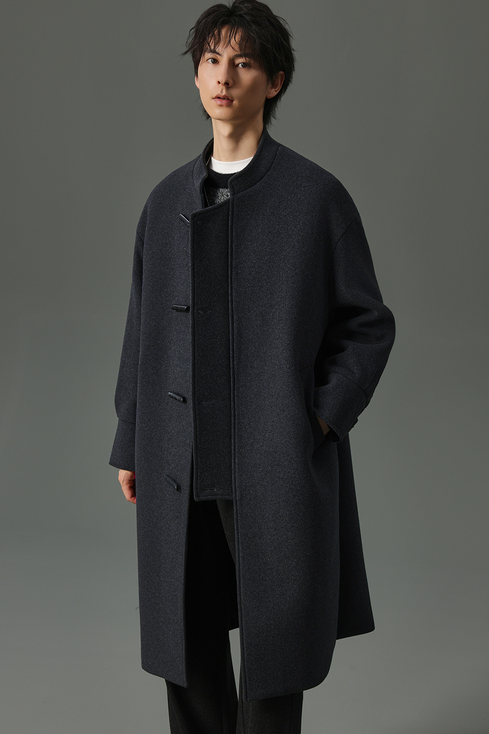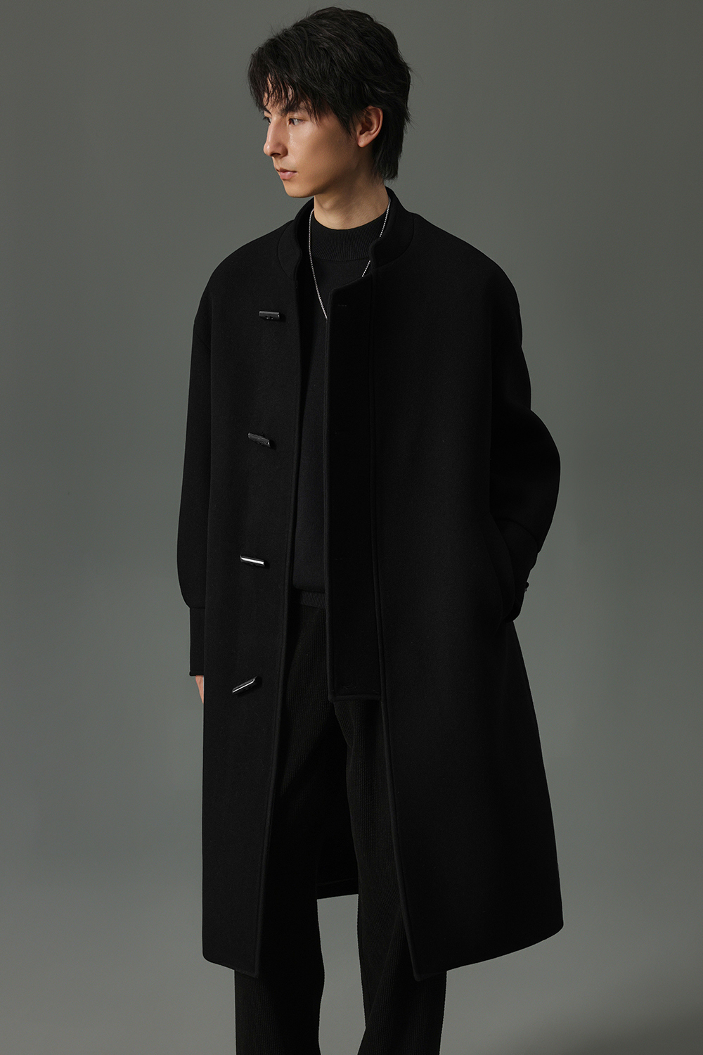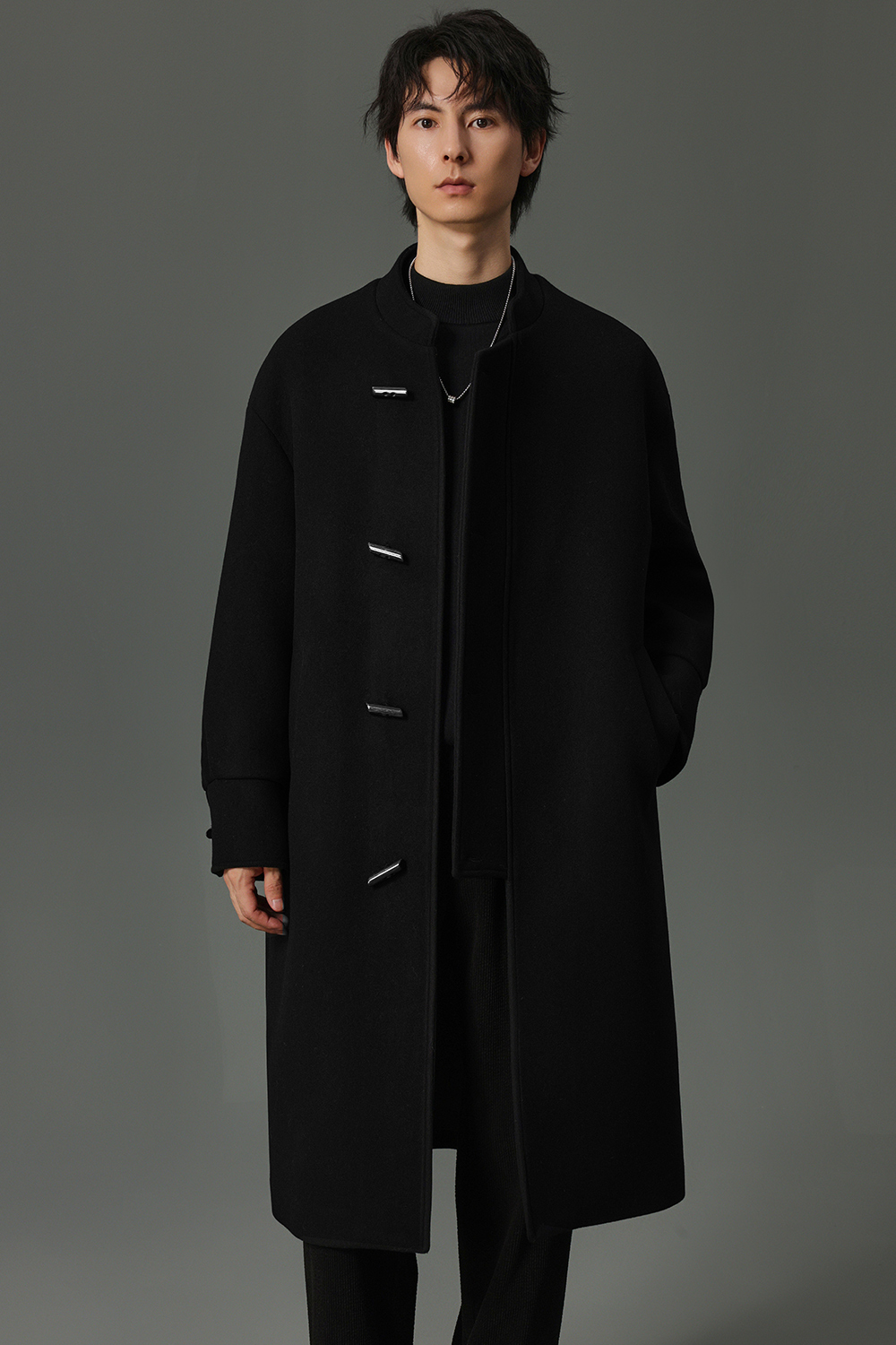 中式小立领羊毛呢子大衣男士中长款休闲宽松冬季加厚风衣外套男