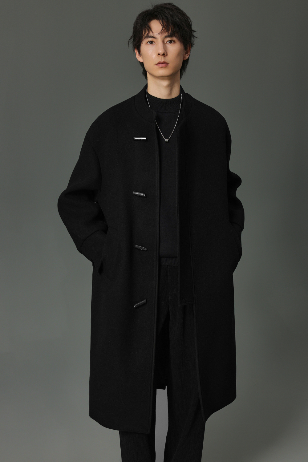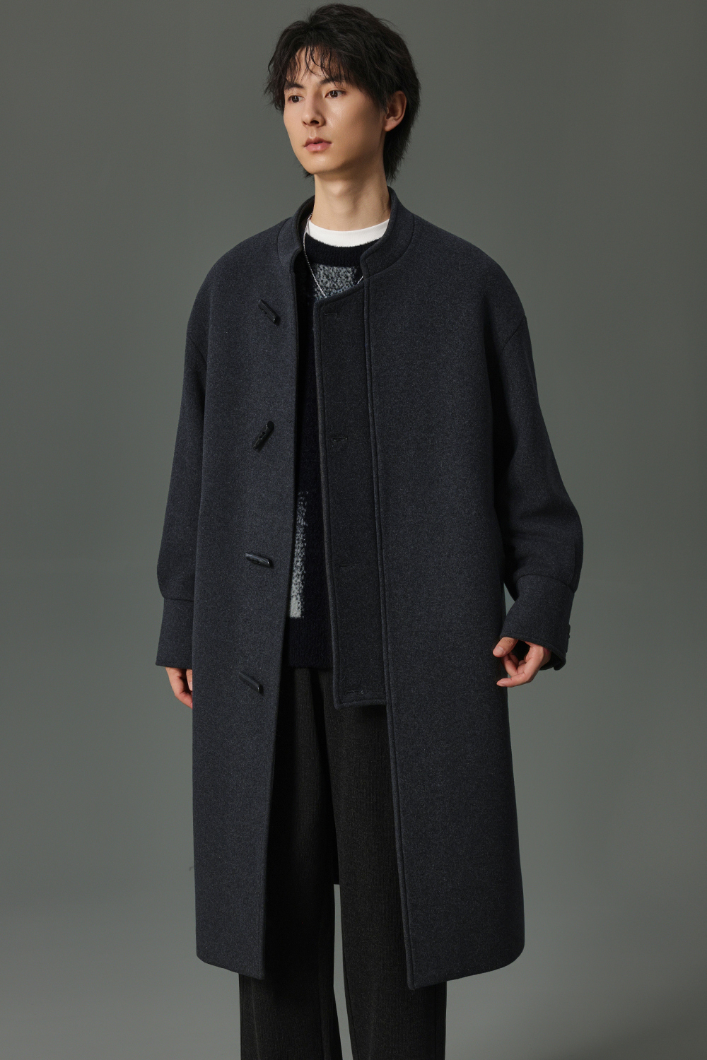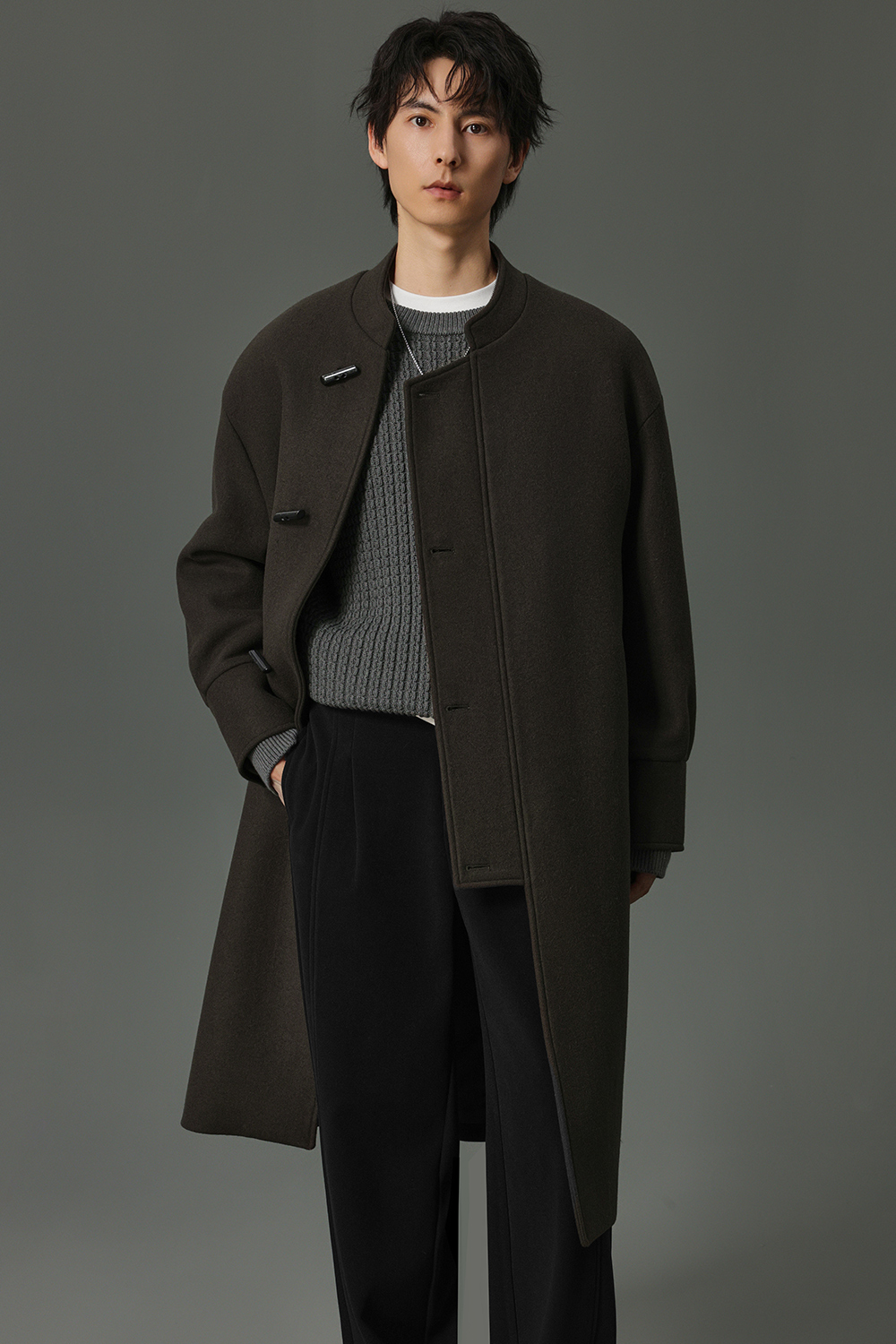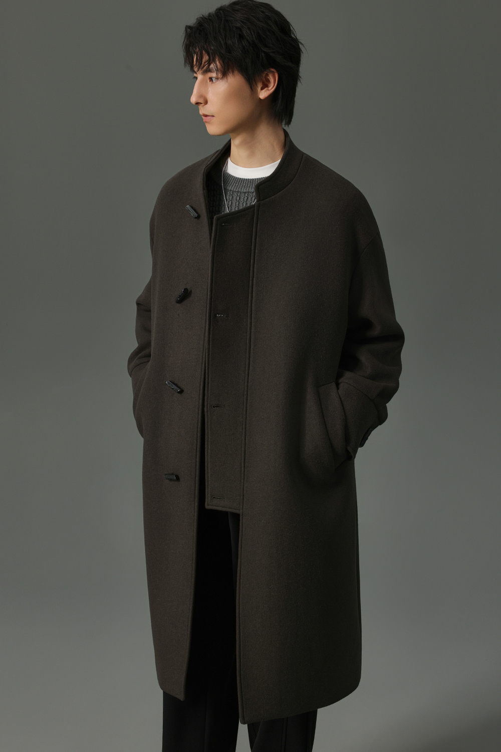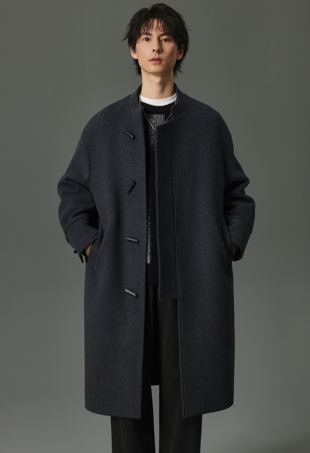 中式小立领羊毛呢子大衣男士中长款休闲宽松冬季加厚风衣外套男