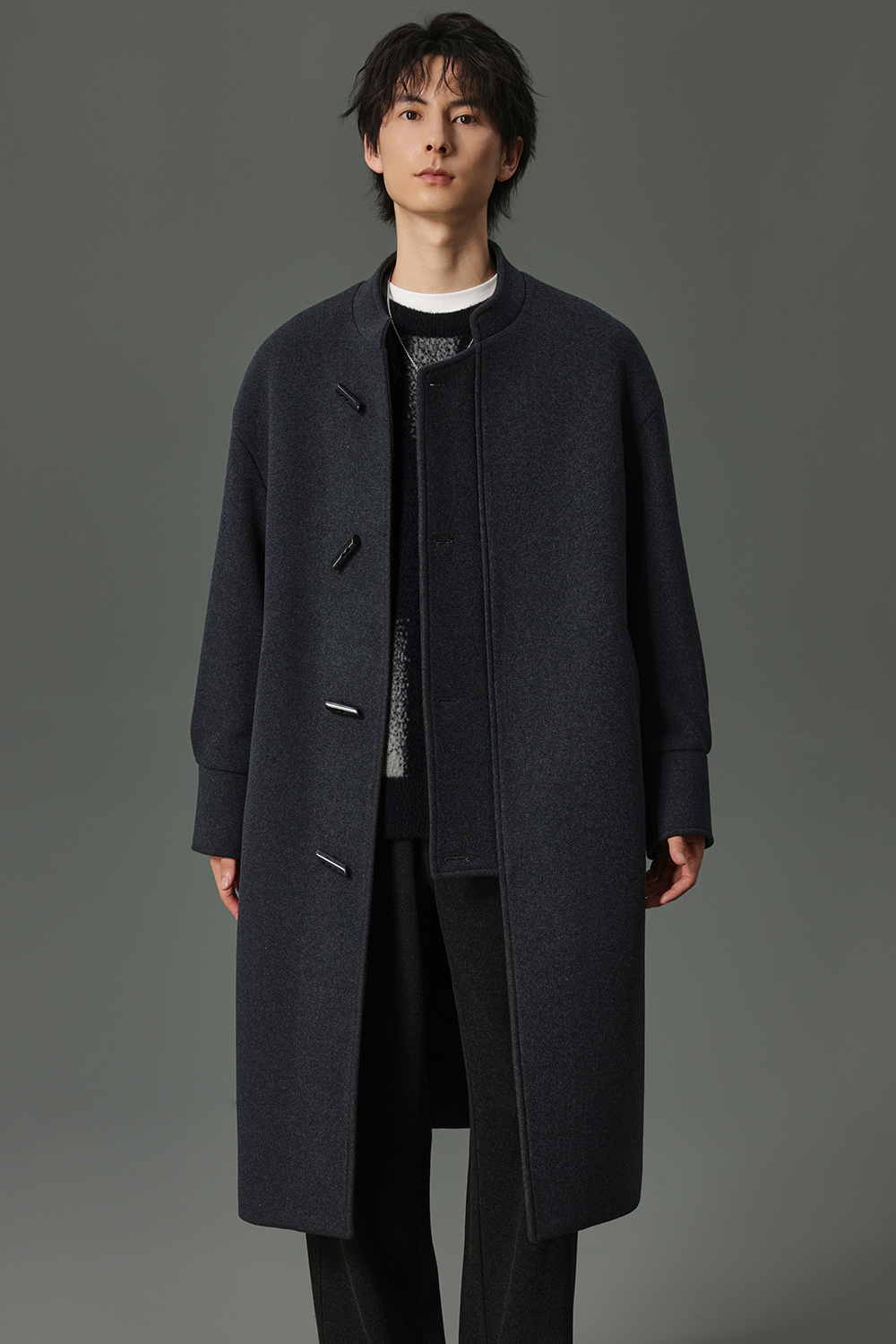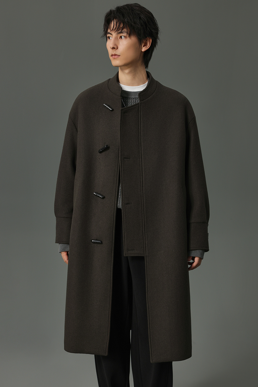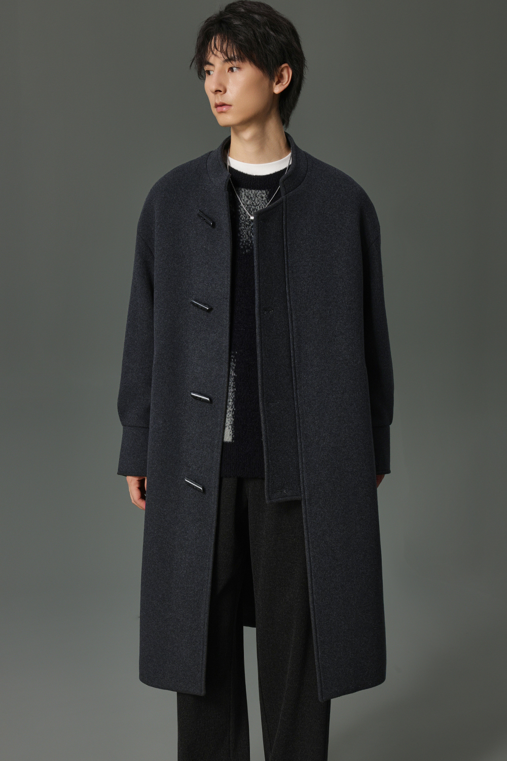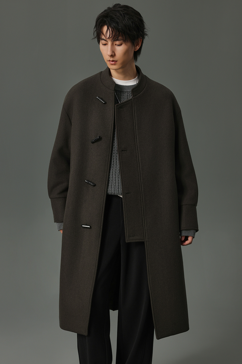 中式小立领羊毛呢子大衣男士中长款休闲宽松冬季加厚风衣外套男