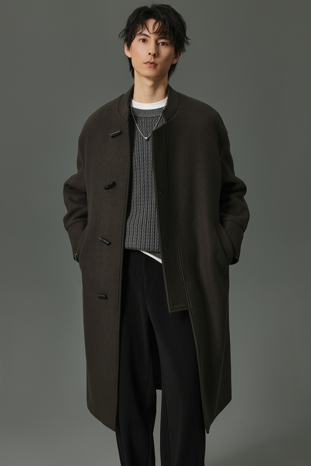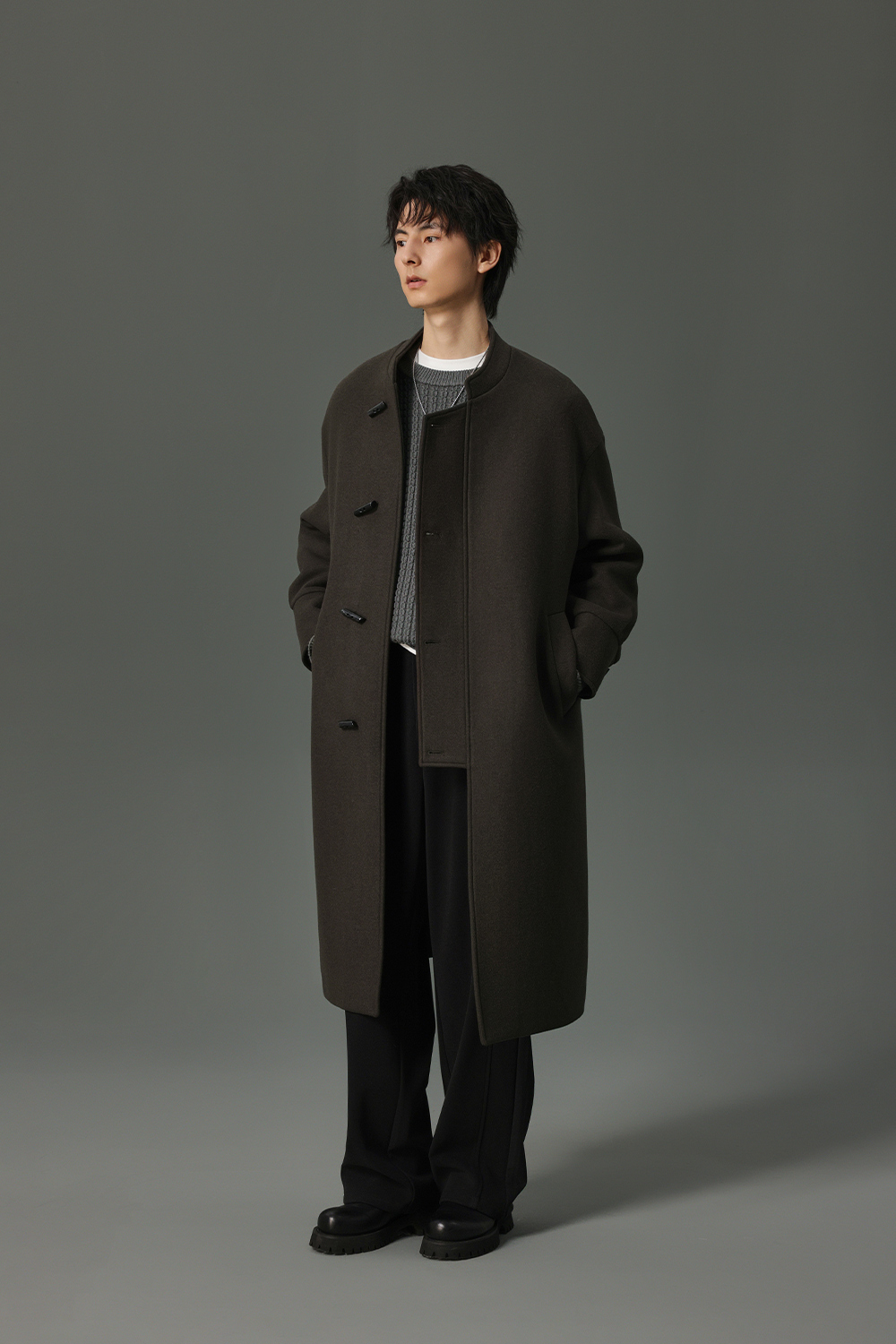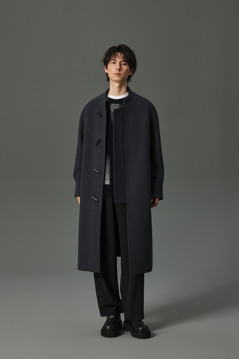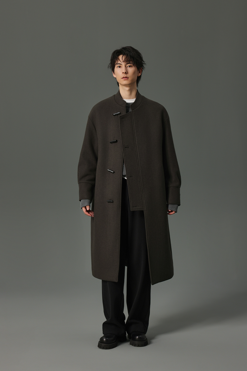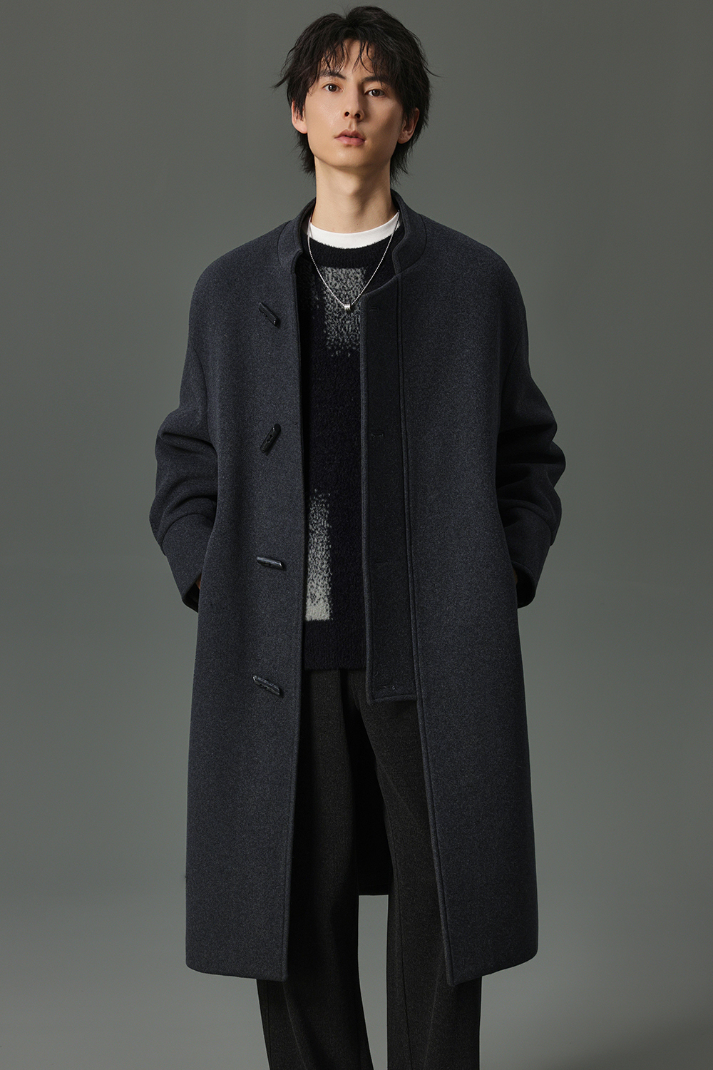 中式小立领羊毛呢子大衣男士中长款休闲宽松冬季加厚风衣外套男