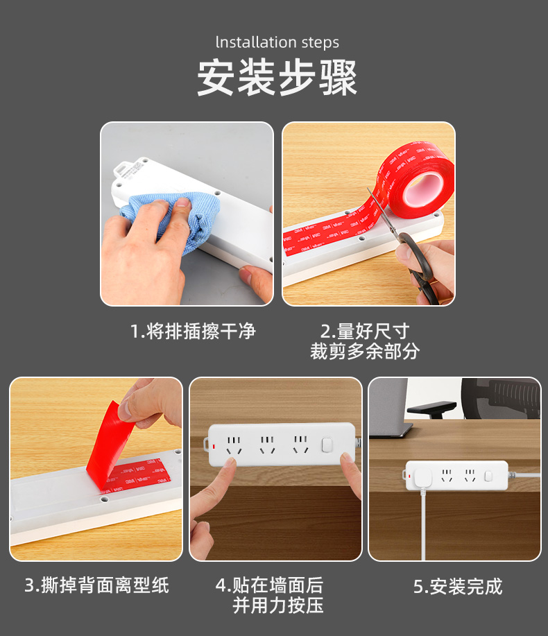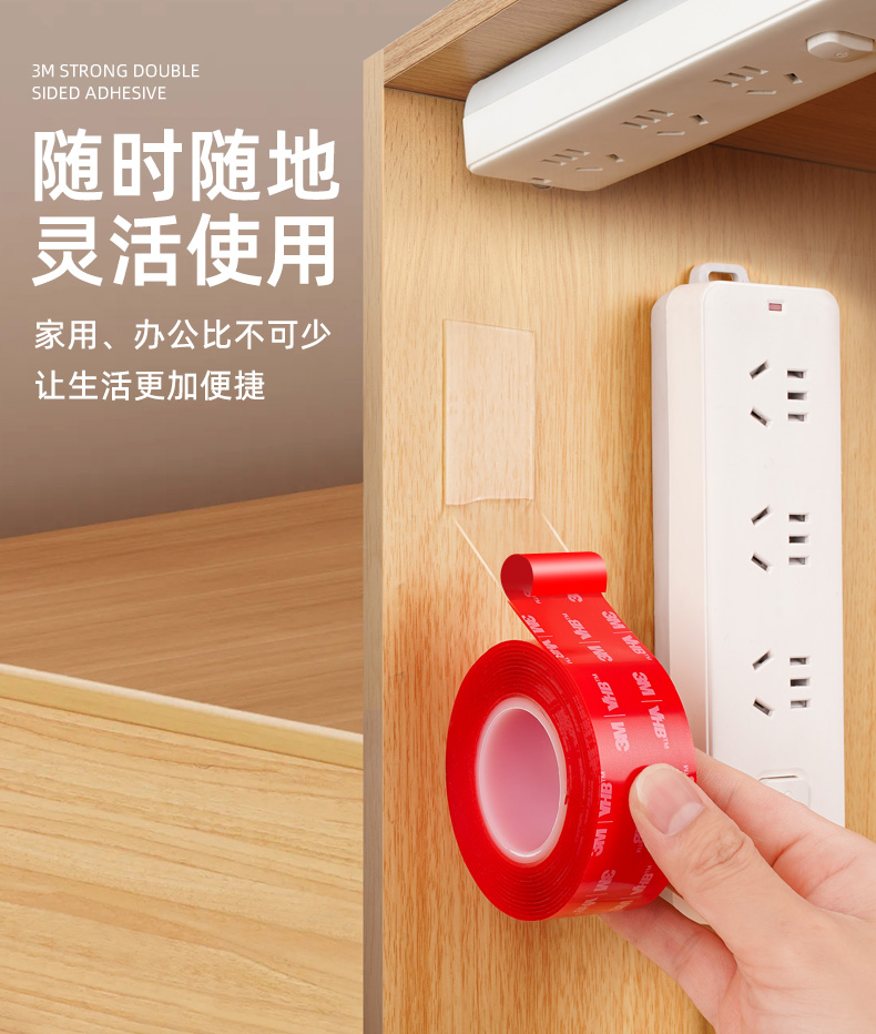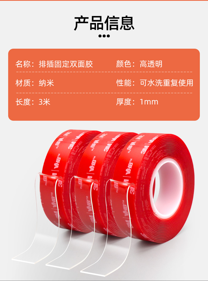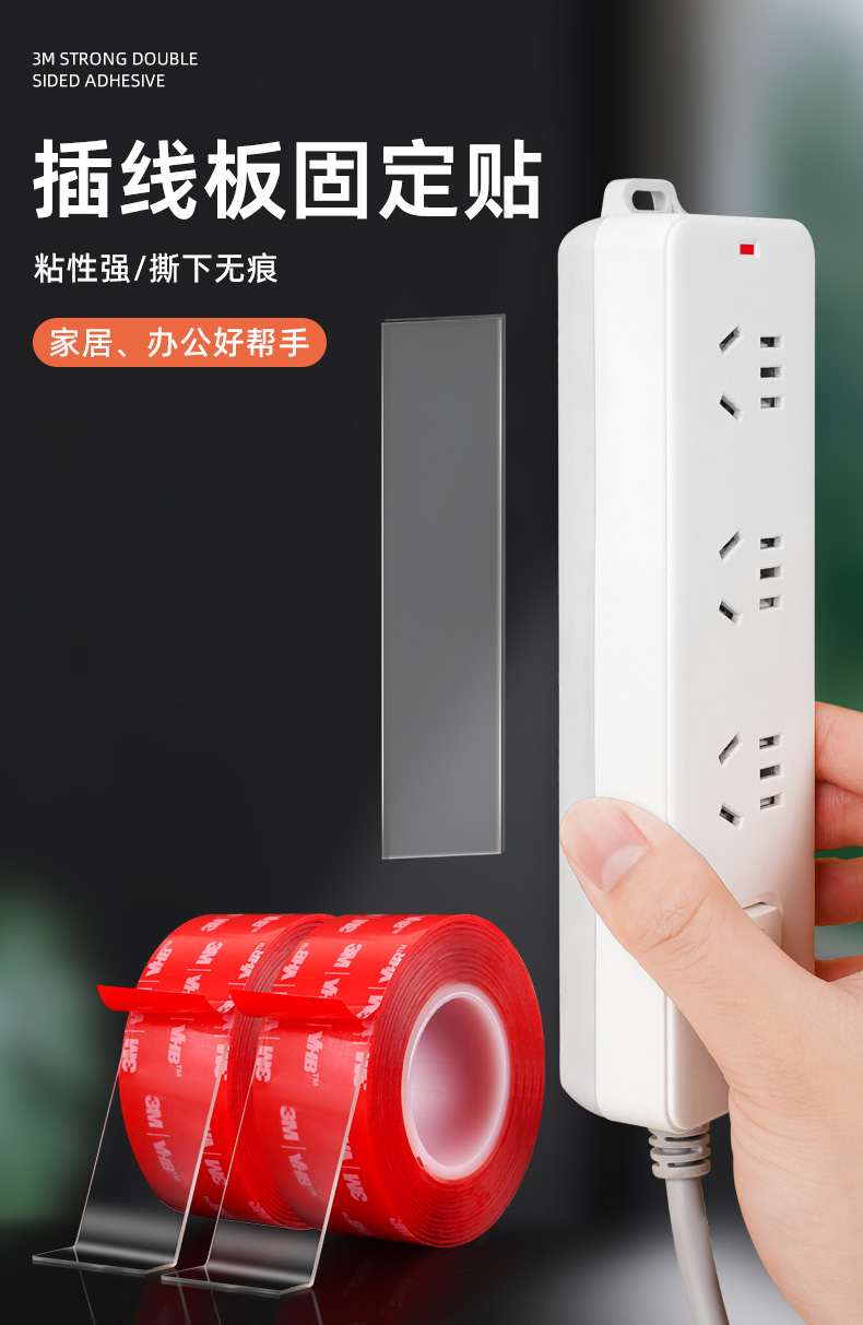 3M强力无痕双面胶高粘度汽车车载行车记录仪固定贴不留痕墙面镜子自粘胶粘贴排插插相框对联专用纳米胶带