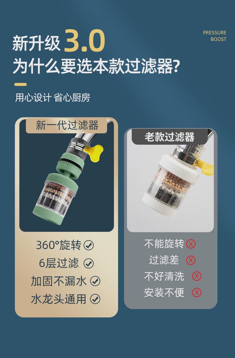 德国水龙头过滤器家用自来水净化器厨房通用万向旋转延伸长防溅水