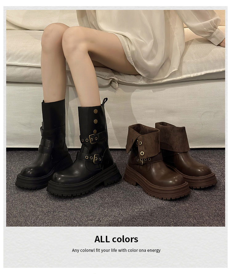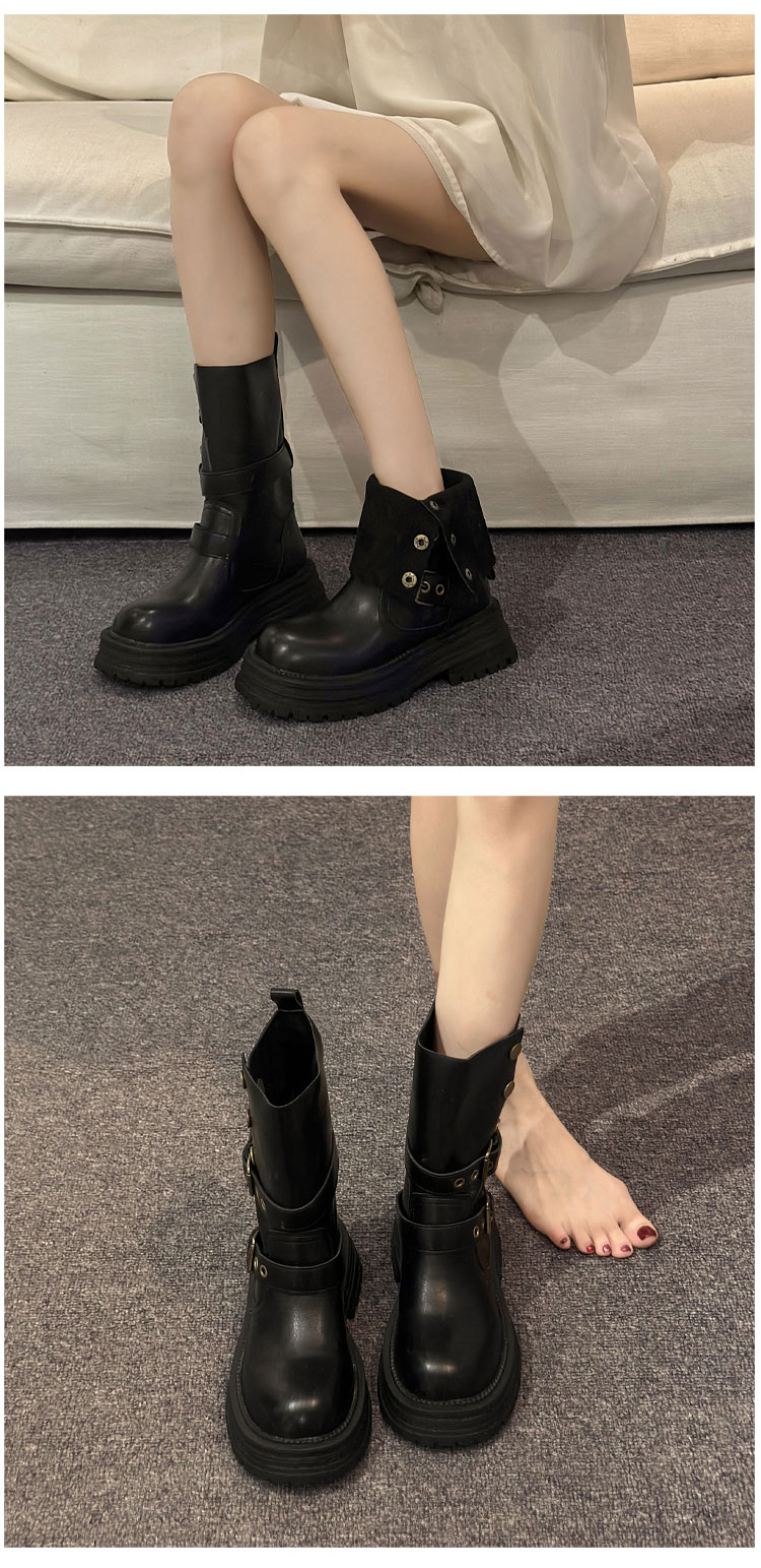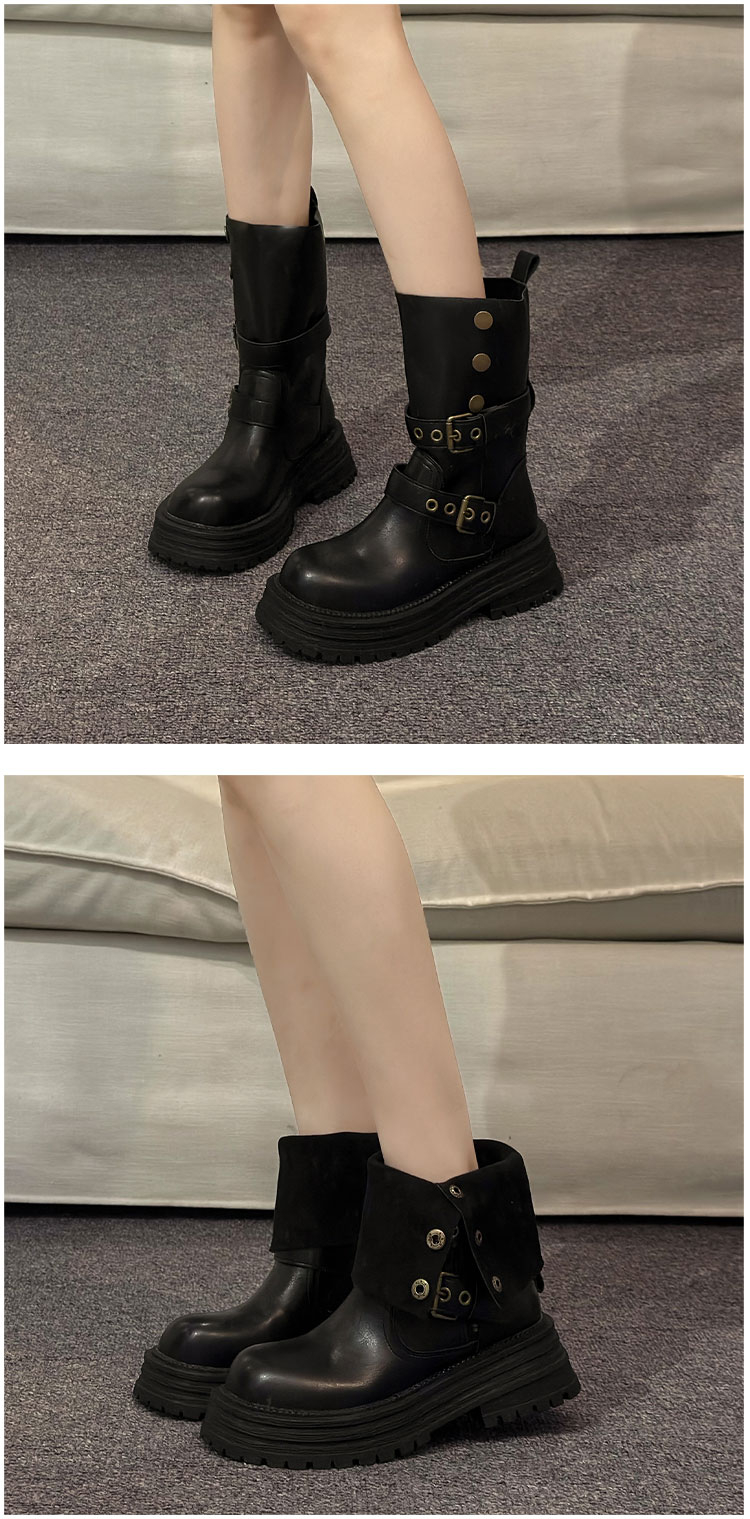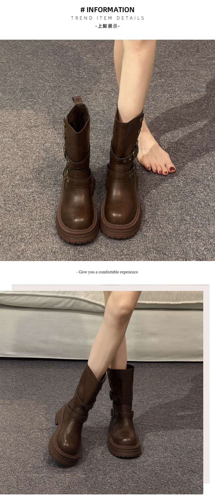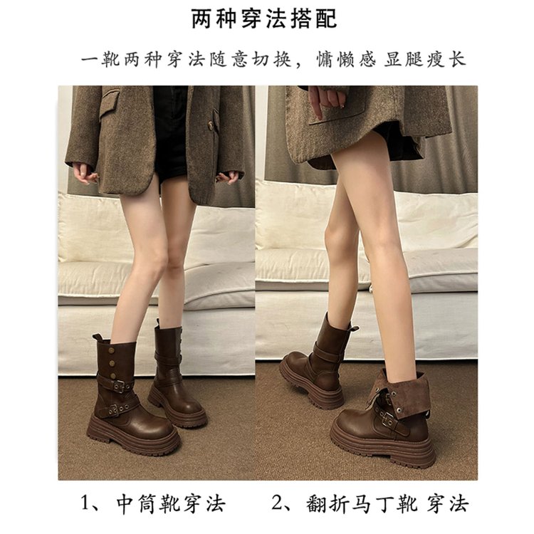 英伦风马丁靴女款2025新款春秋单靴复古女鞋中筒靴子厚底黑色短靴