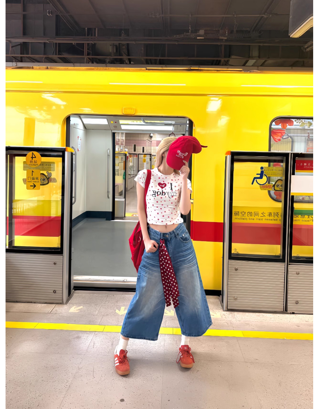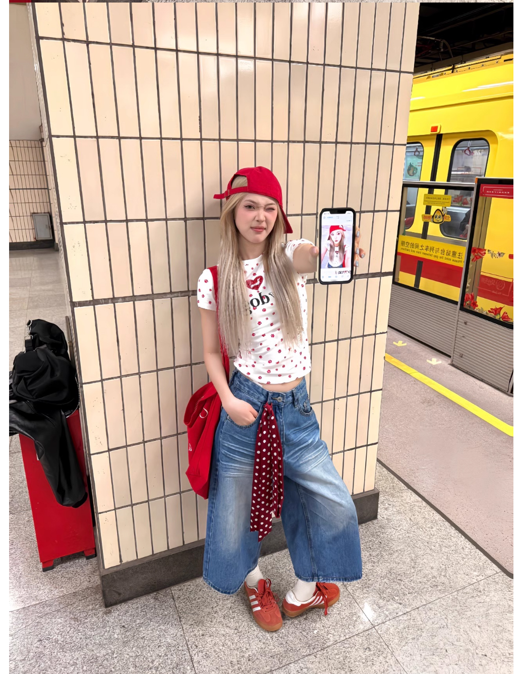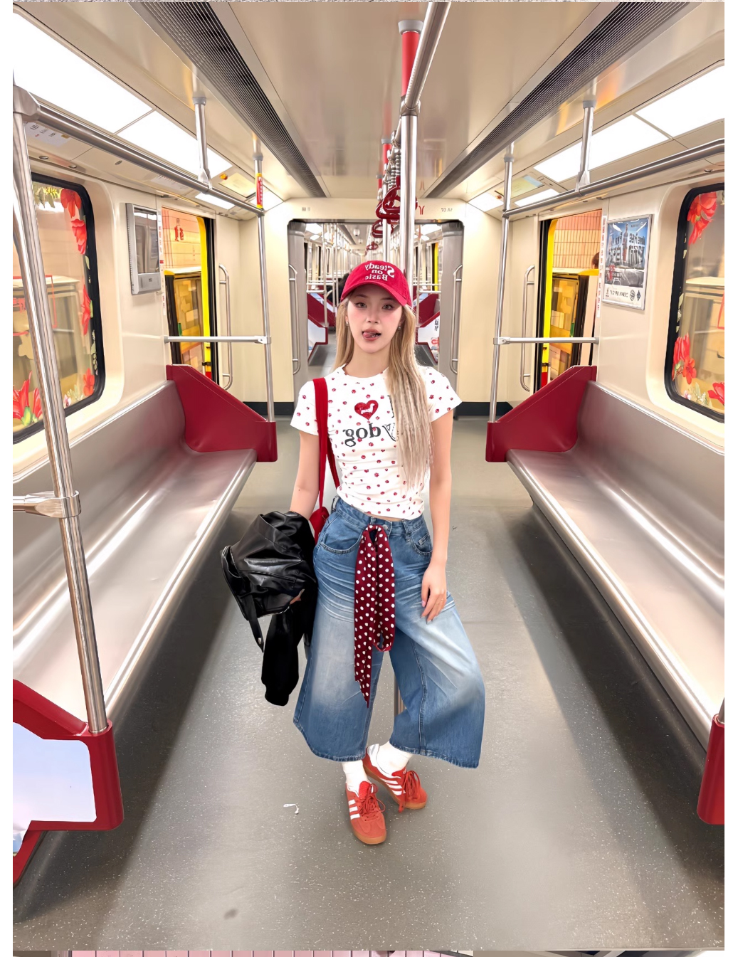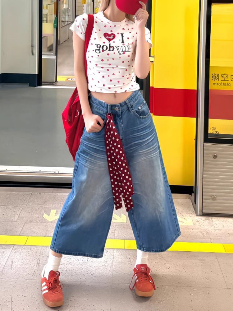 复古水洗宽松百搭阔腿牛仔短裤女2025夏季新款高腰直筒显瘦七分裤