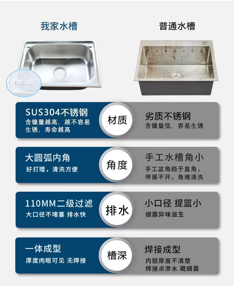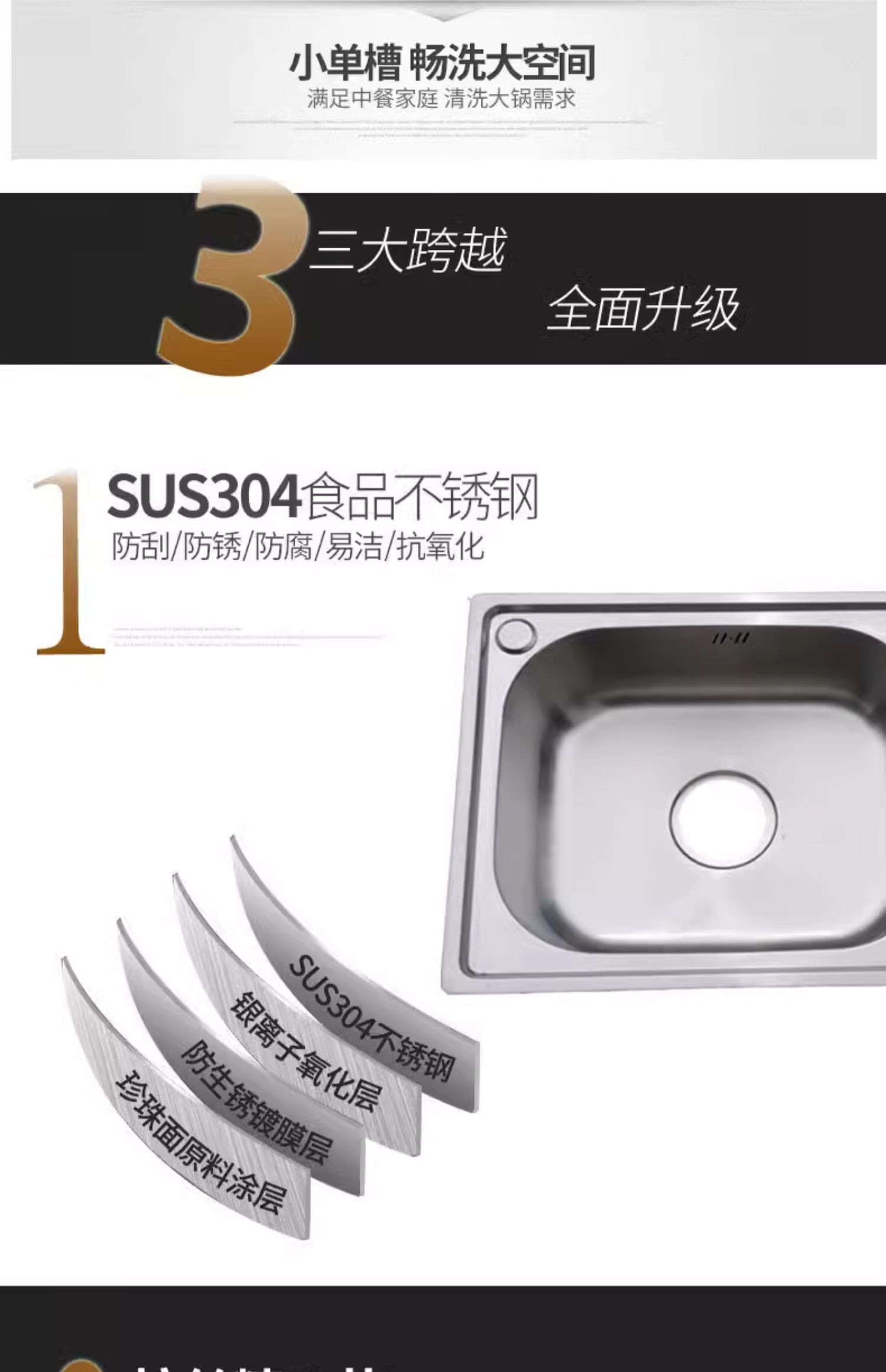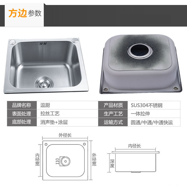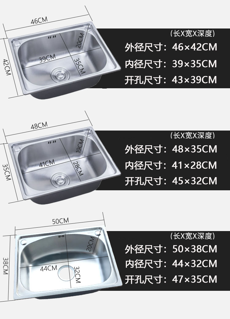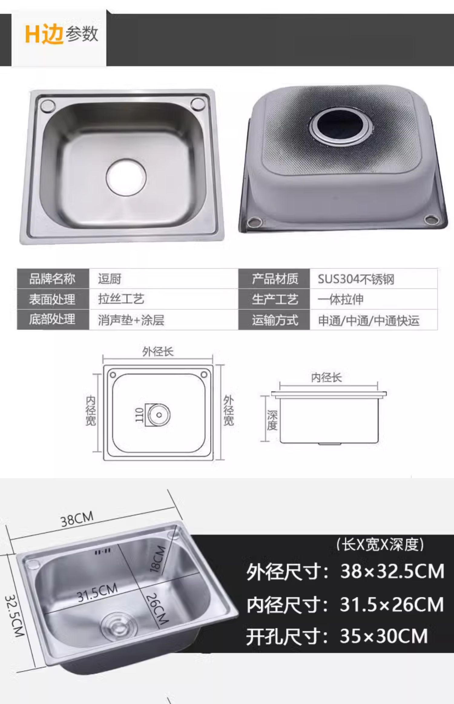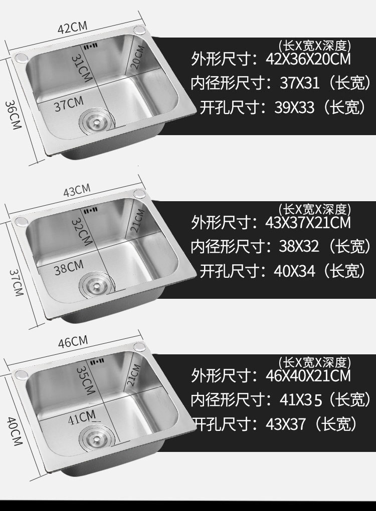 304不锈钢水槽单槽小尺寸厨房水槽洗碗槽吧台洗手盆边你小水槽