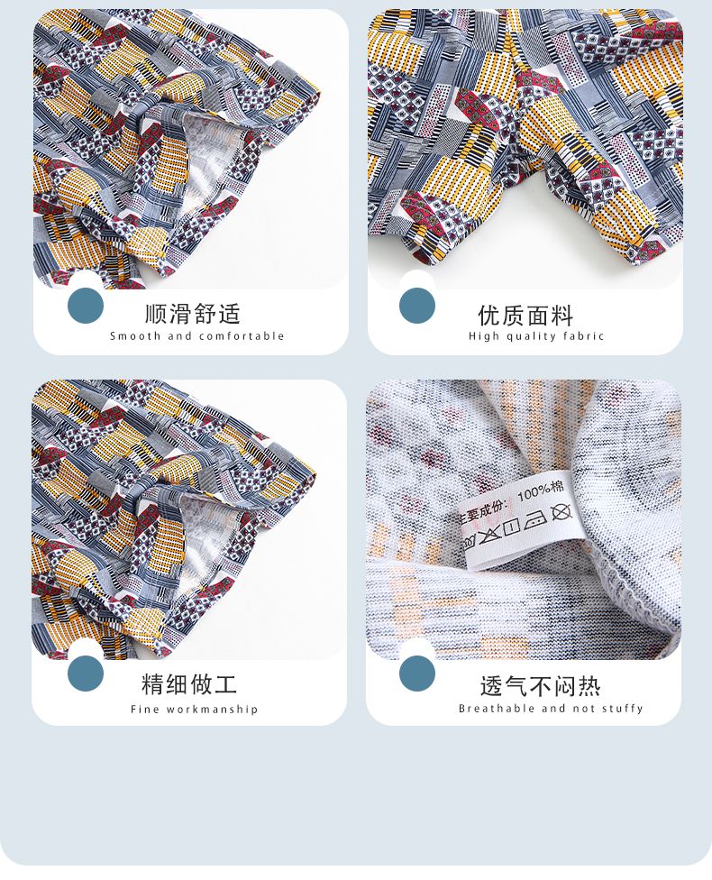 AB阿罗裤男士纯棉四角裤夏季薄款透气运动短裤宽松大码印花平角裤
